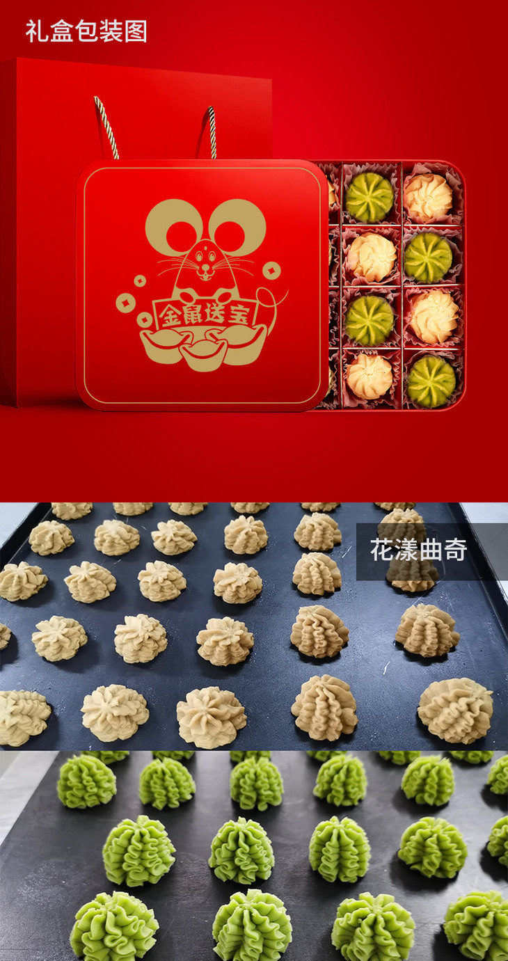 口味:原味曲奇3列(36块)+抹茶曲奇一列(12块)