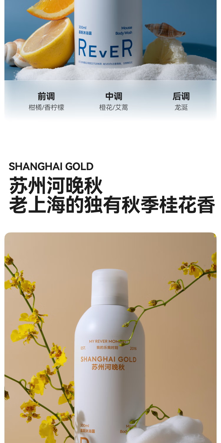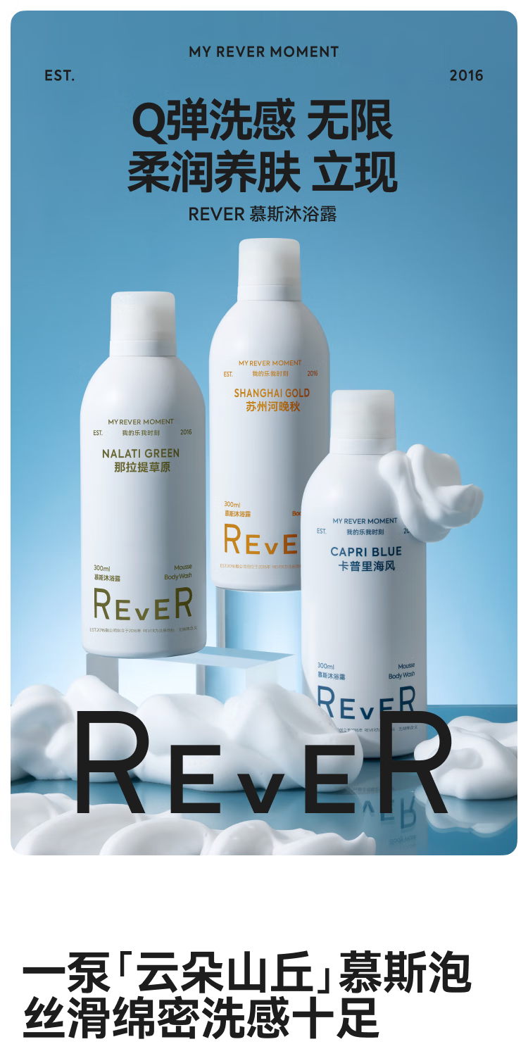 【新品上新】REVER精油沐浴露奶油慕斯 泡泡浴沐浴液泡沫补水保湿沐浴乳