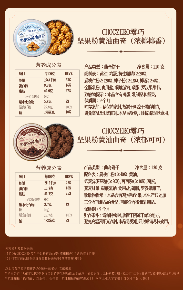 【瘦龙】Choczero坚果粉黄油曲奇浓椰椰香110g/浓郁可可130g 无麸质 0面粉
