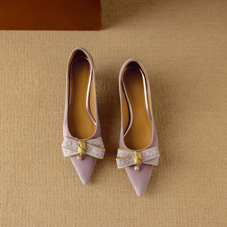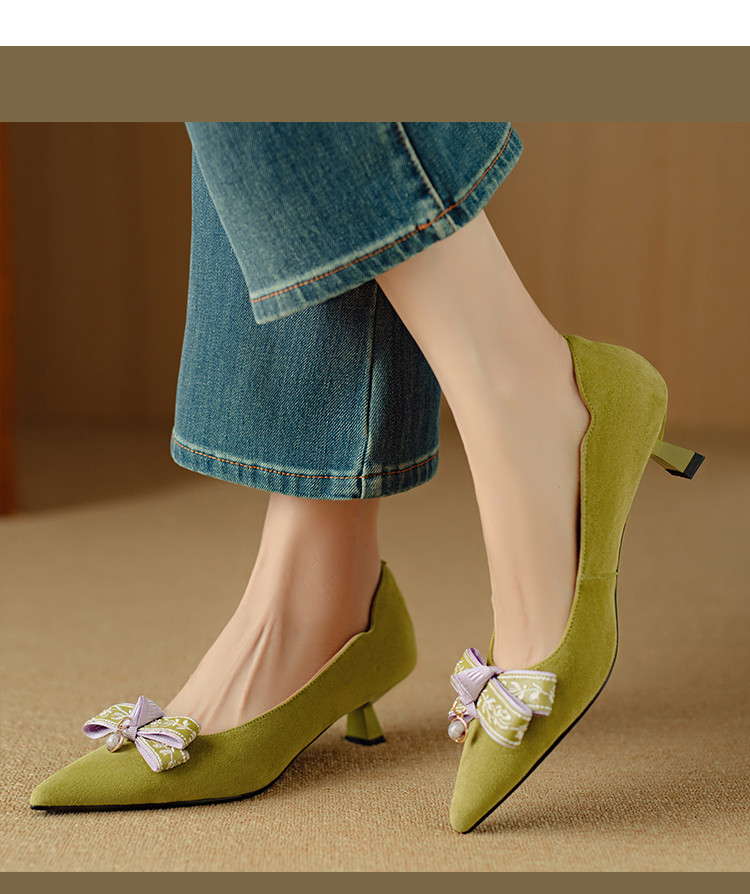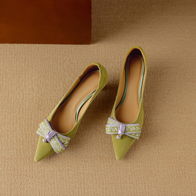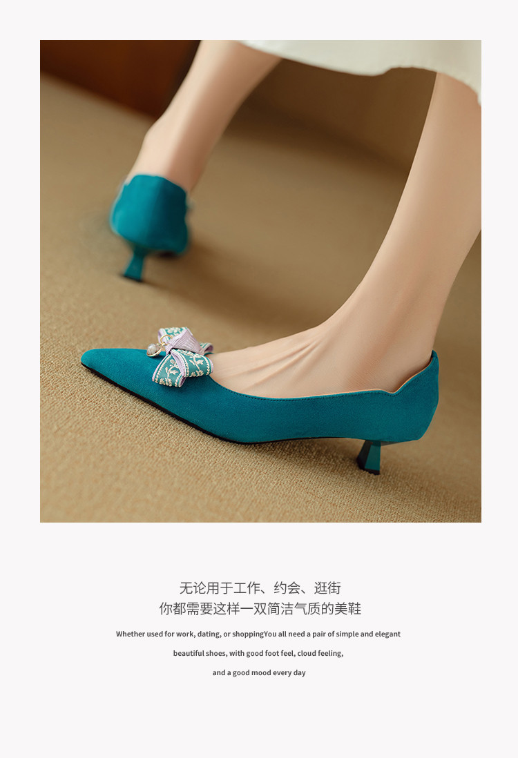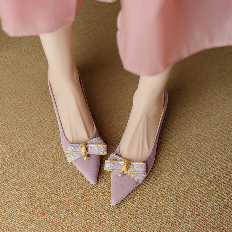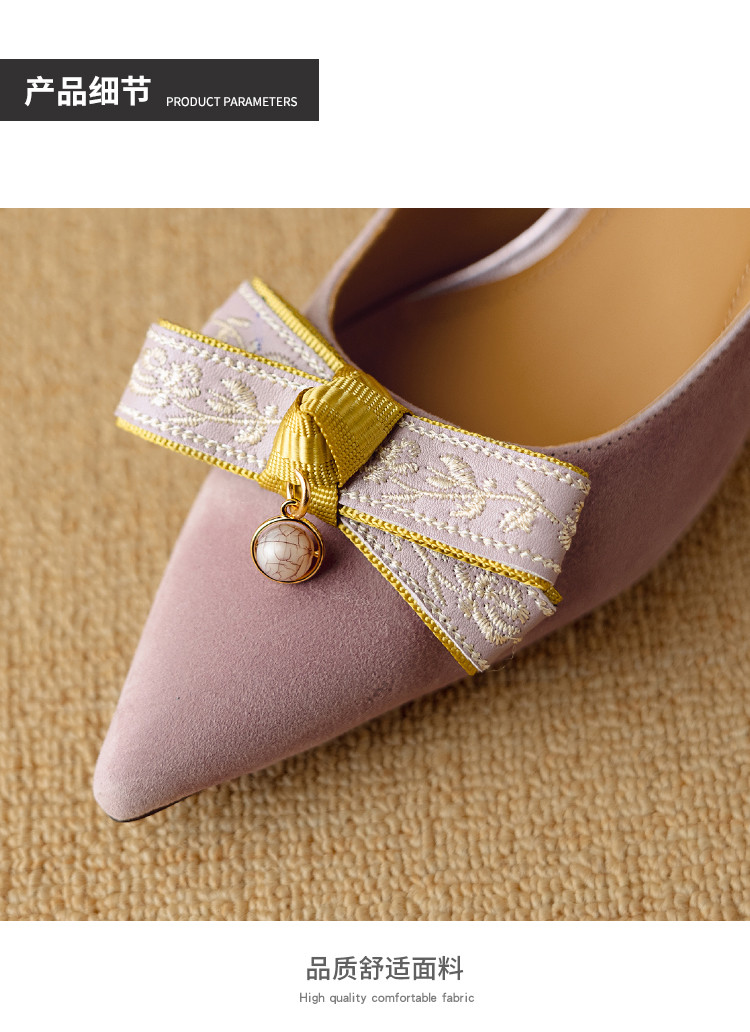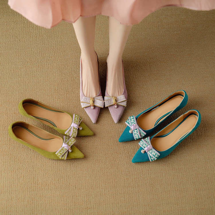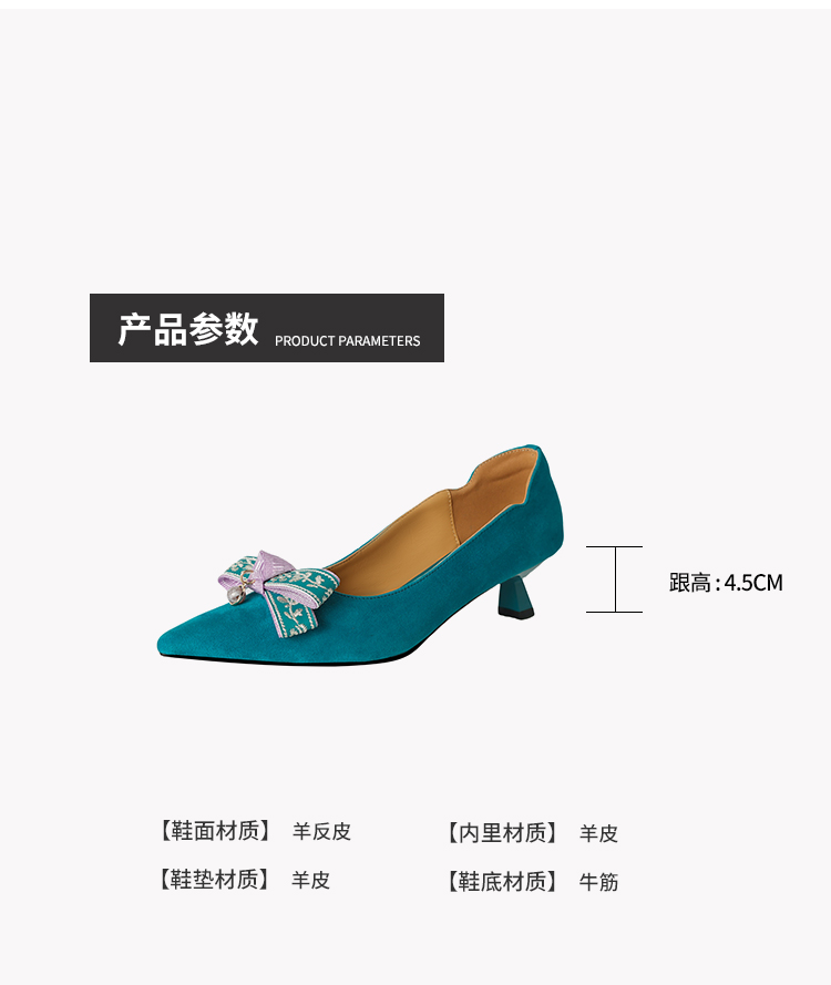 【预售5天】里外全皮气质高跟鞋仙女风甜美猫跟蝴蝶结珍珠浅口高跟鞋DB&M6205