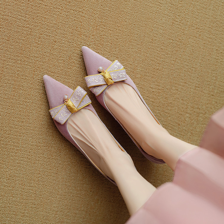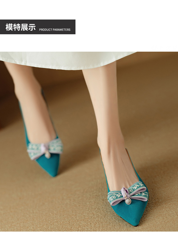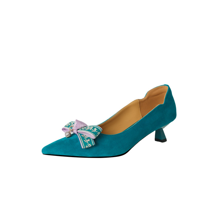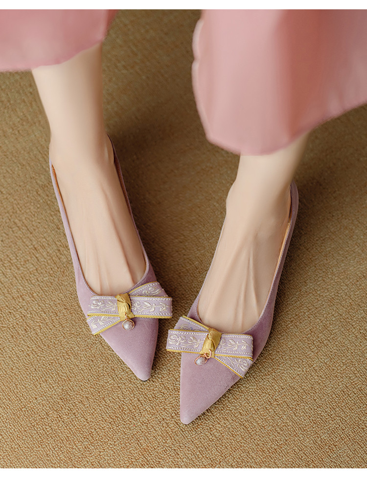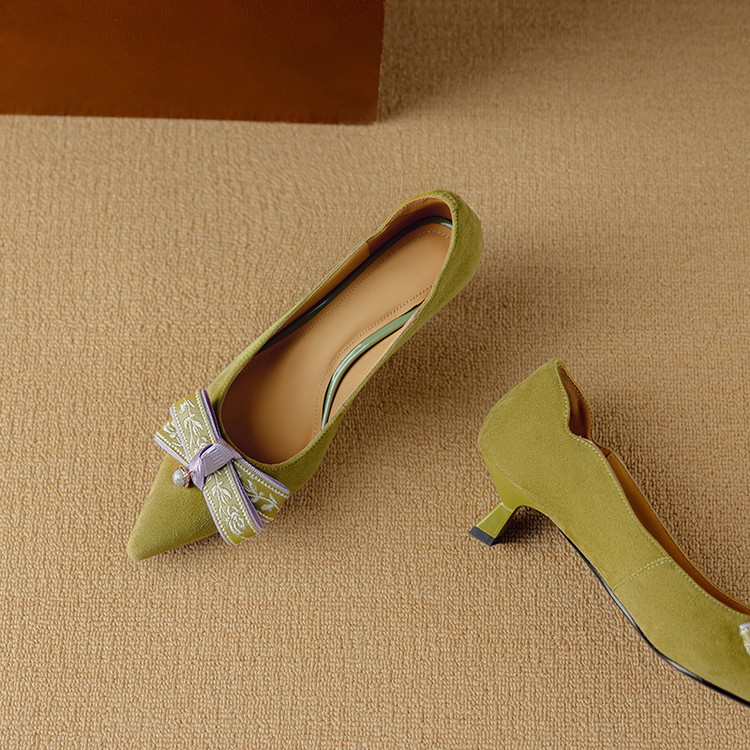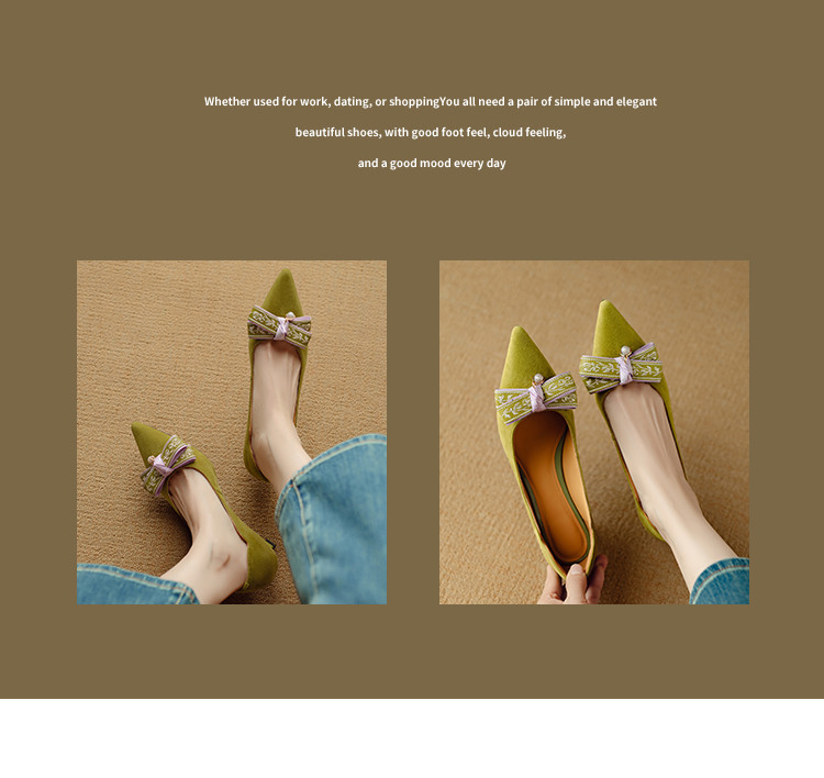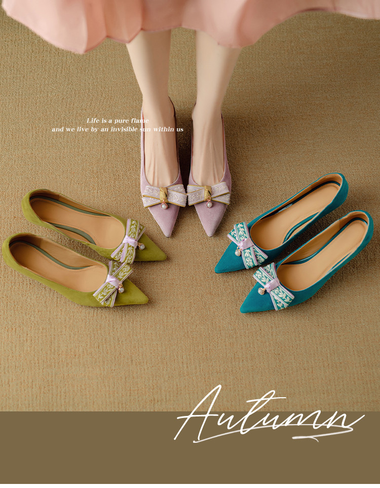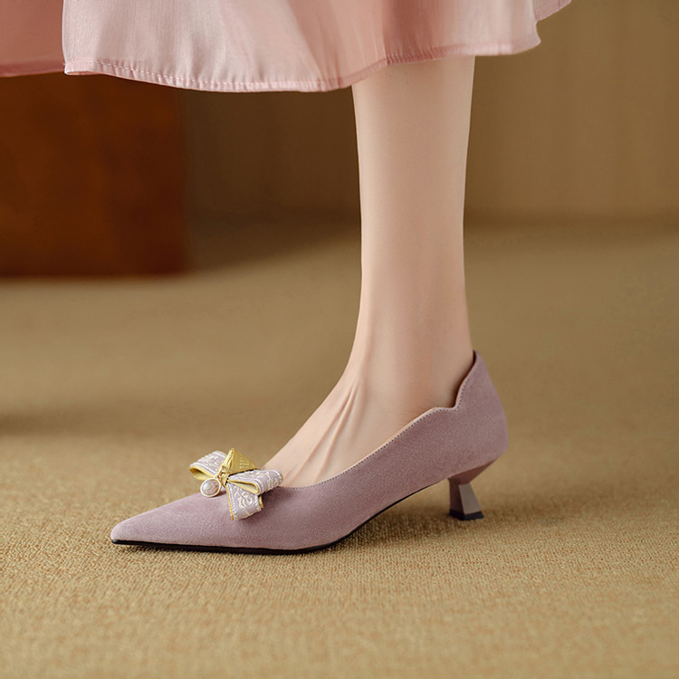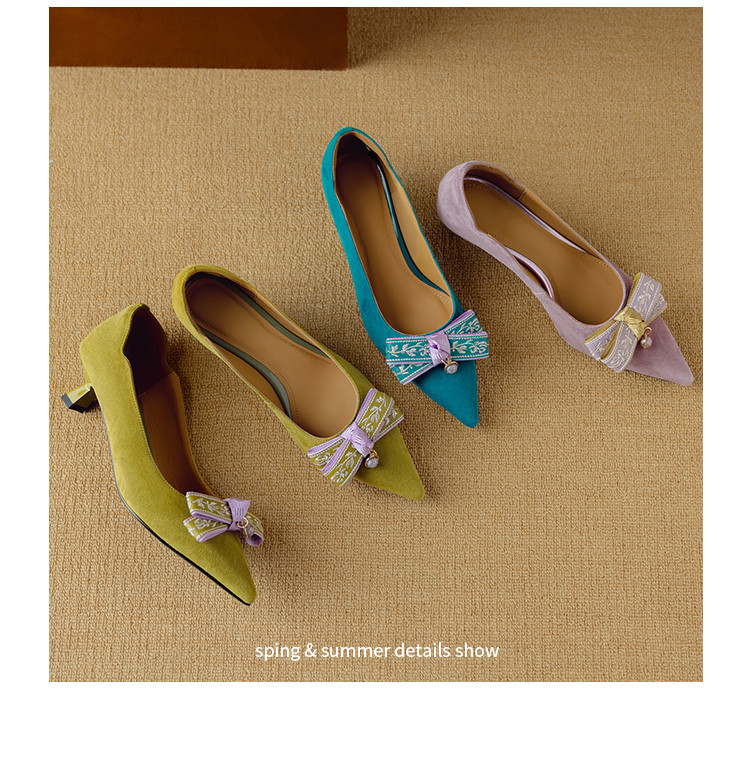 【预售5天】里外全皮气质高跟鞋仙女风甜美猫跟蝴蝶结珍珠浅口高跟鞋DB&M6205