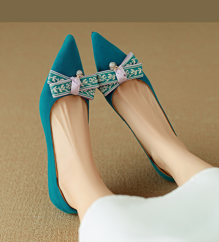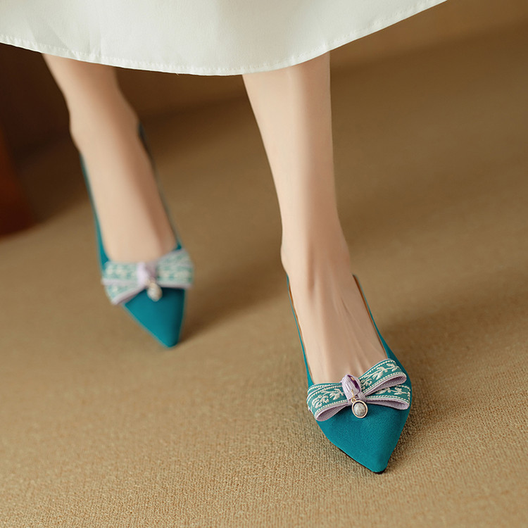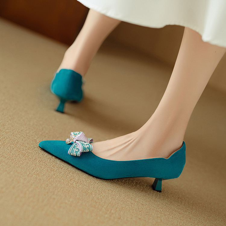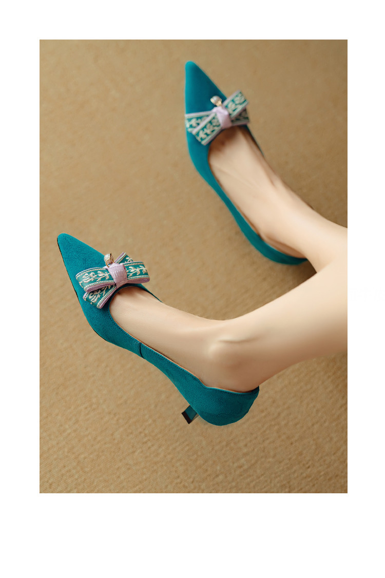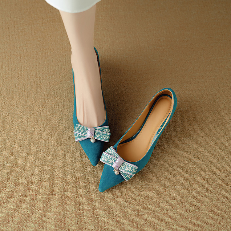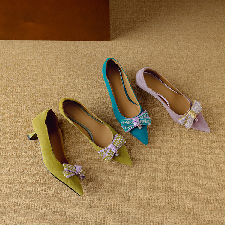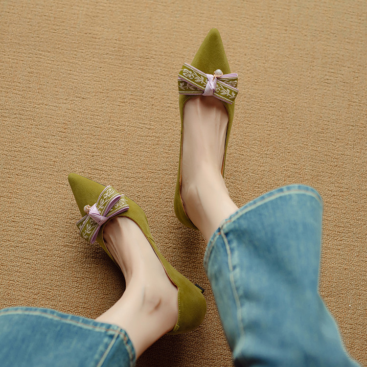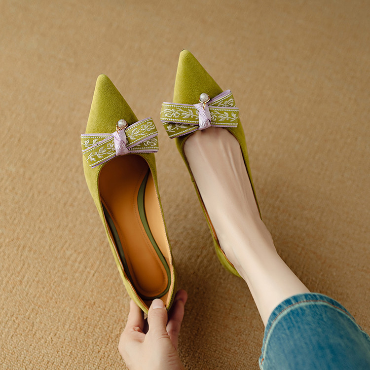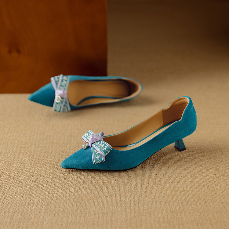 【预售5天】里外全皮气质高跟鞋仙女风甜美猫跟蝴蝶结珍珠浅口高跟鞋DB&M6205