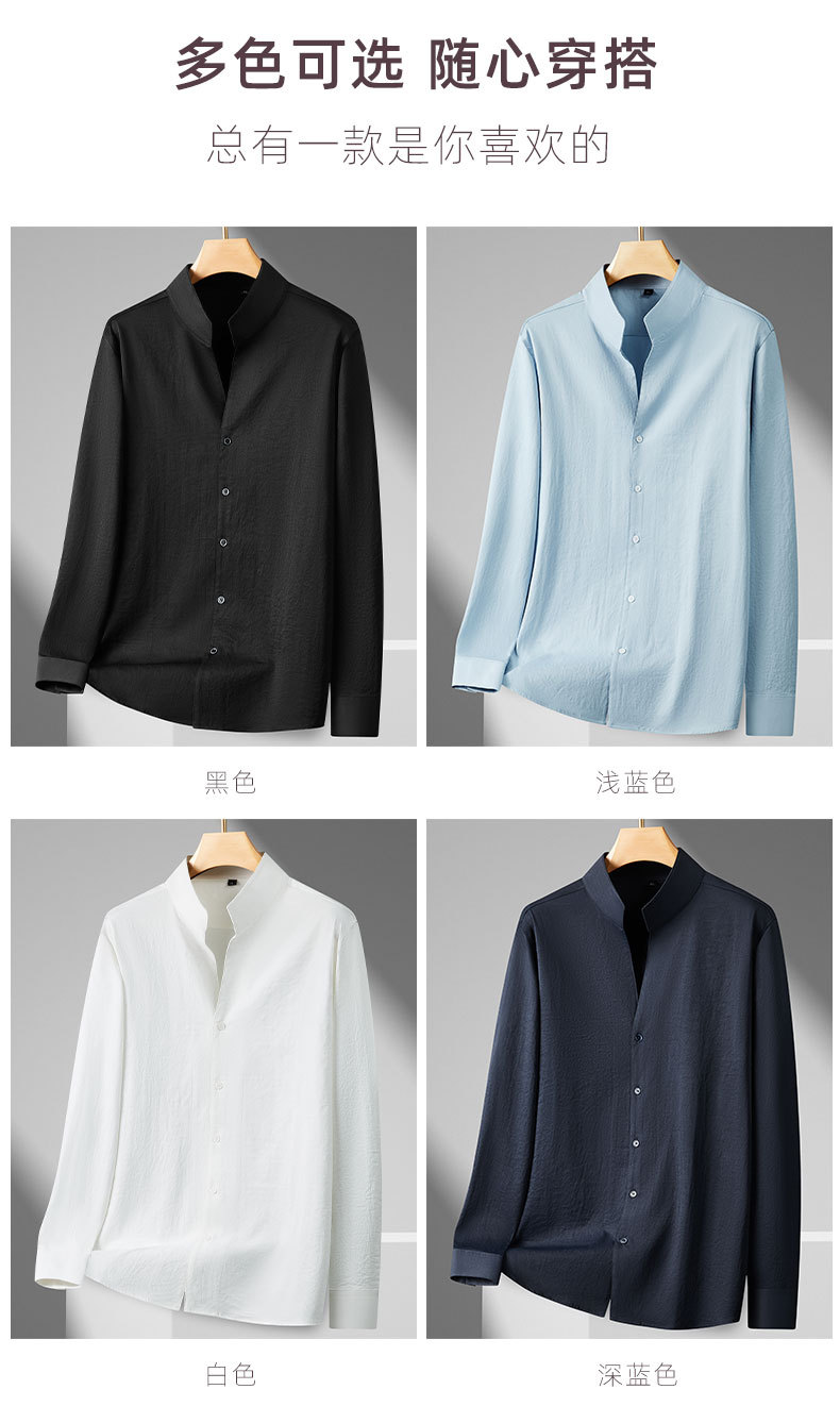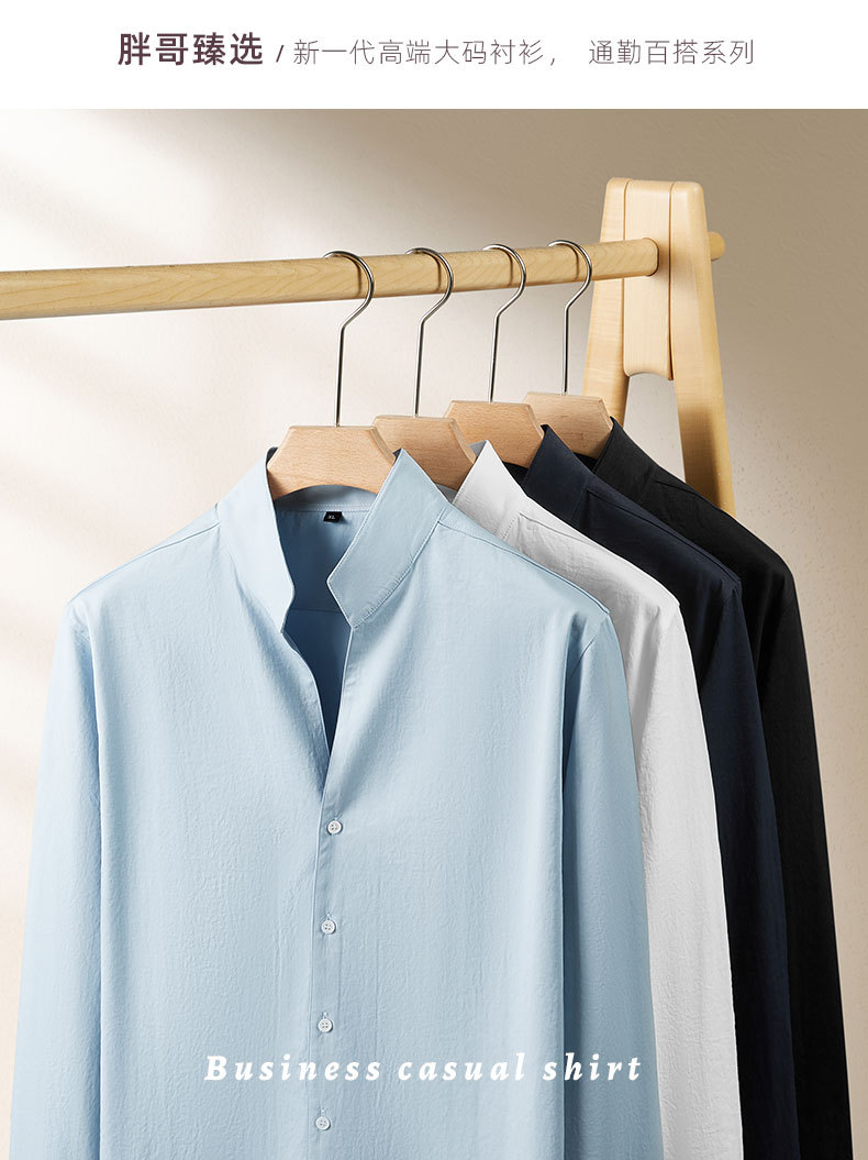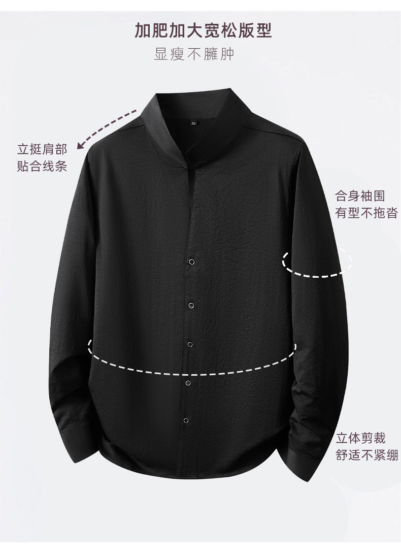 【DDS】大依优型大码衬衫男士长袖衬衣立领纯色秋季新款简约高级加肥加大码休闲立领长袖衬衫宽松300斤