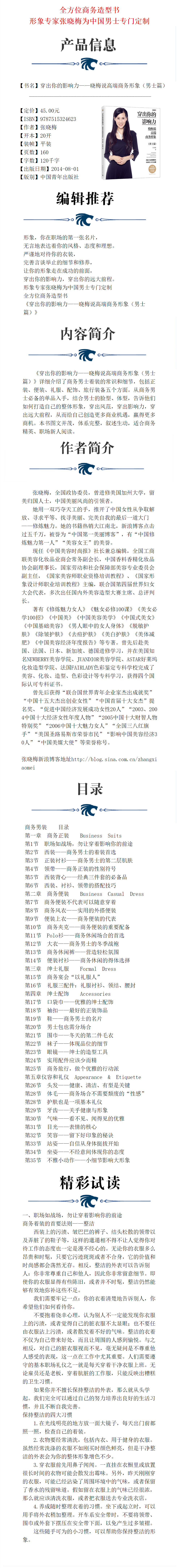 穿出你的影响力——晓梅说高端商务形象(男士篇)张晓梅美育系列 张晓梅著 中国青年出版社