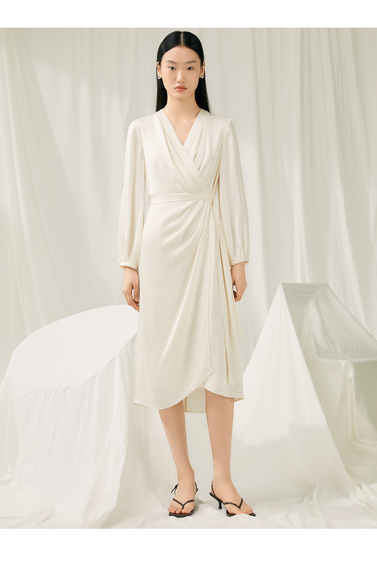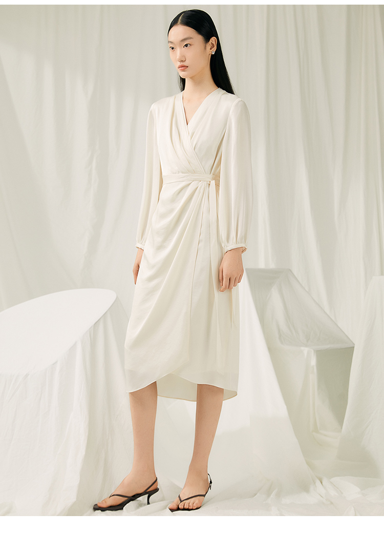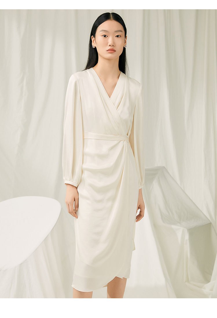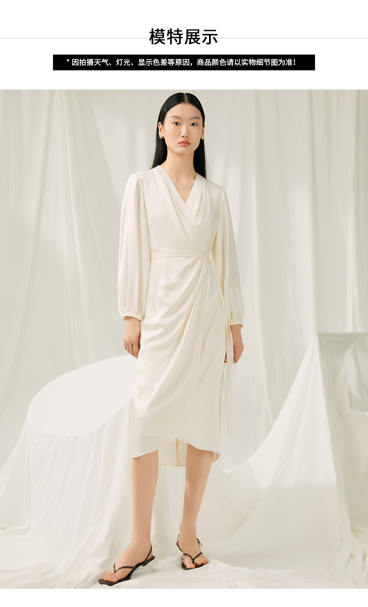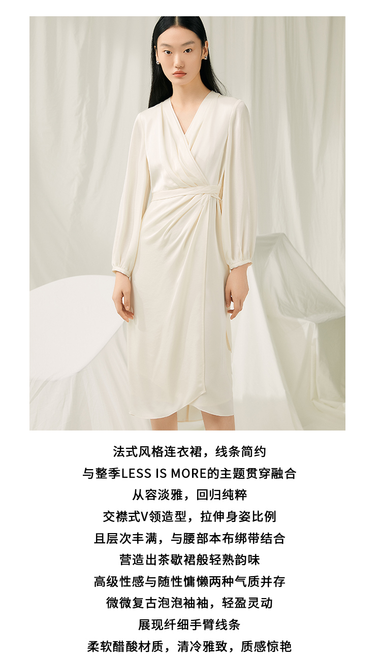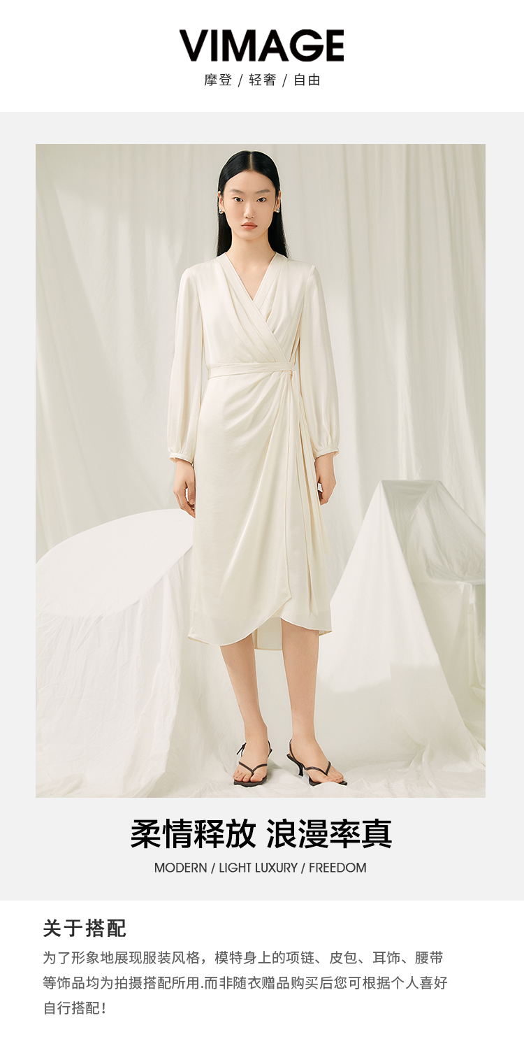 VIMAGE纬漫纪春季新款纯色垂感优雅连衣裙V1907503