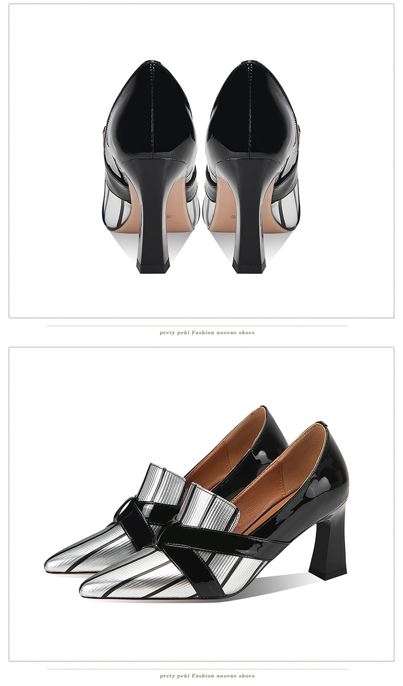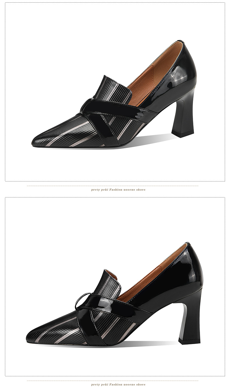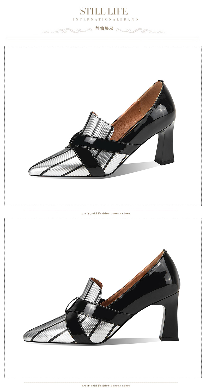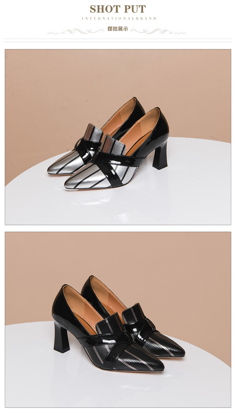 【预售5天】尖头条纹拼色,时尚浅口粗跟高跟单鞋SY-B102