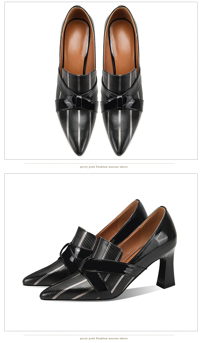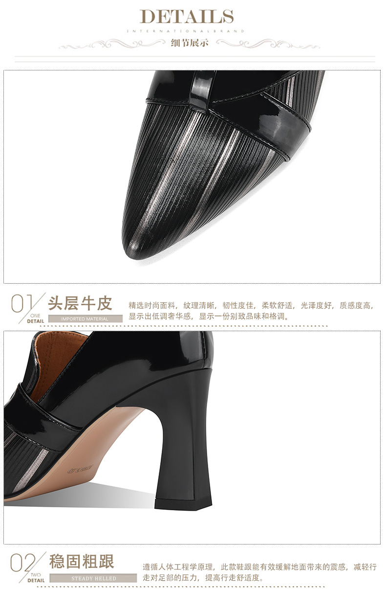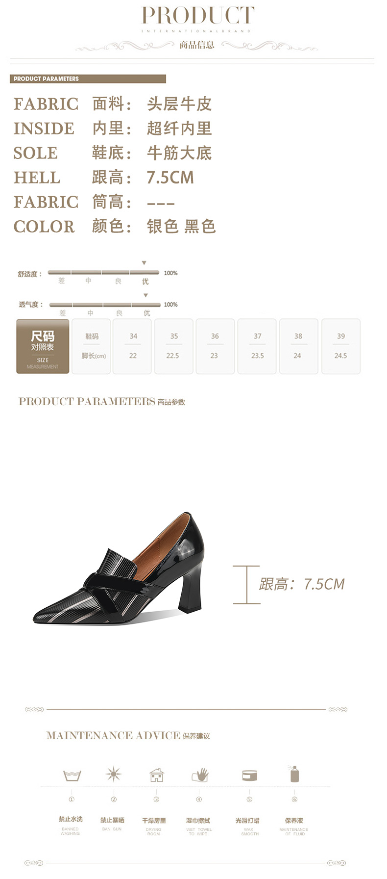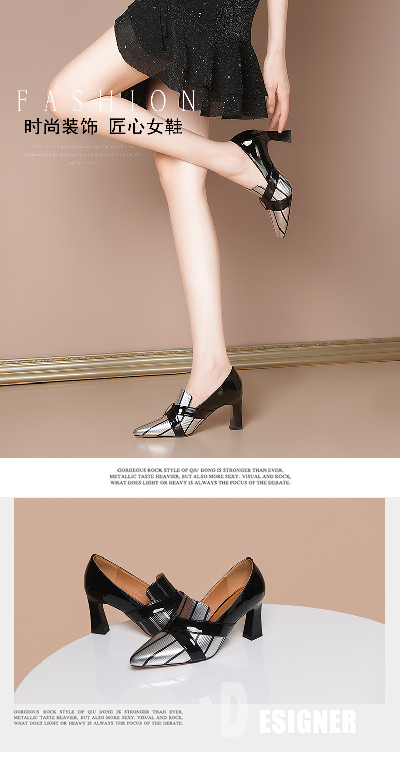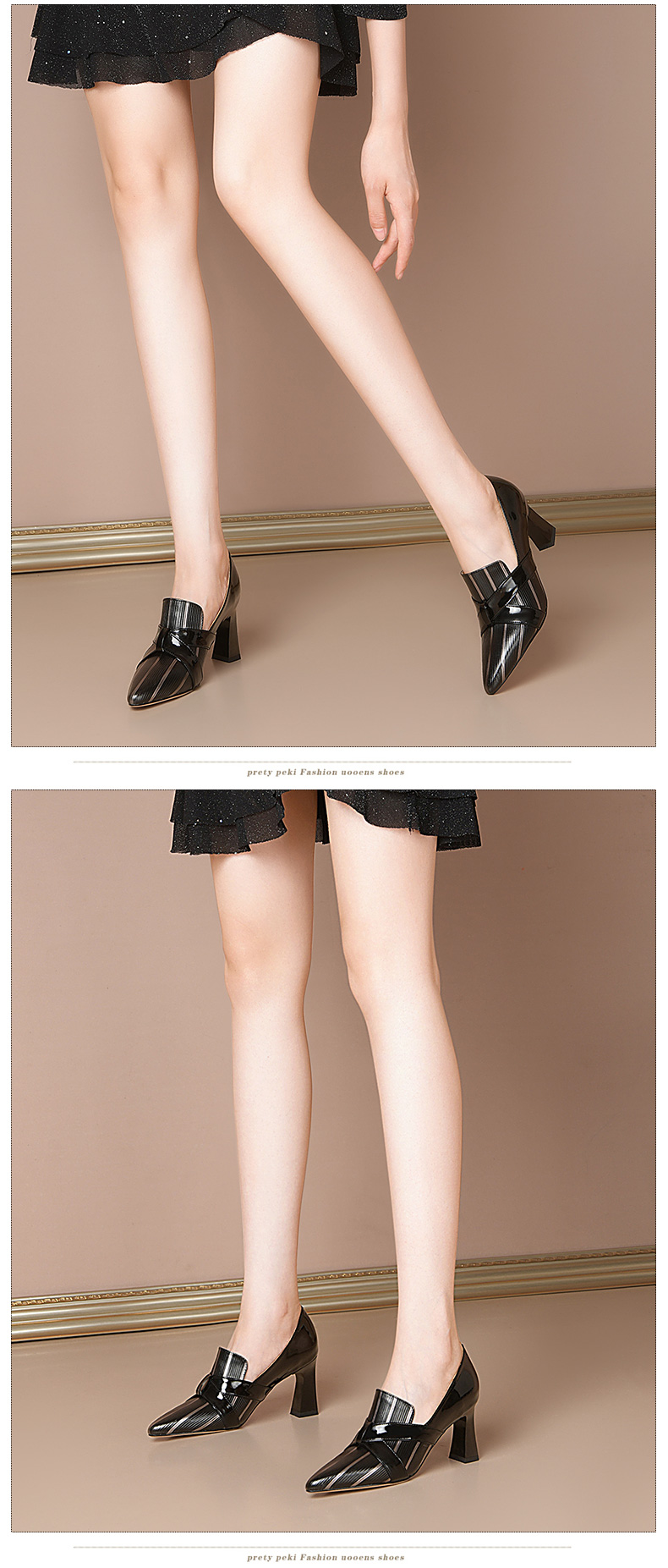 【预售5天】尖头条纹拼色,时尚浅口粗跟高跟单鞋SY-B102