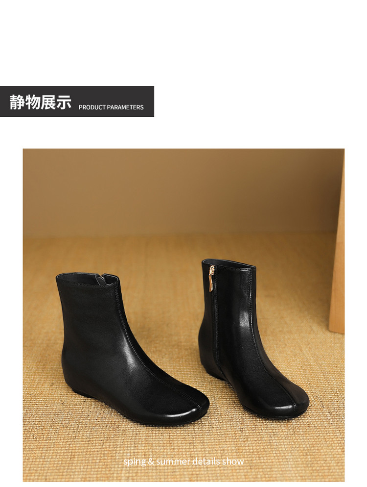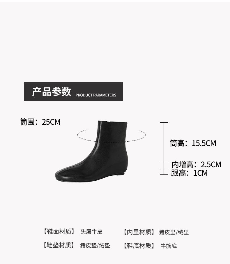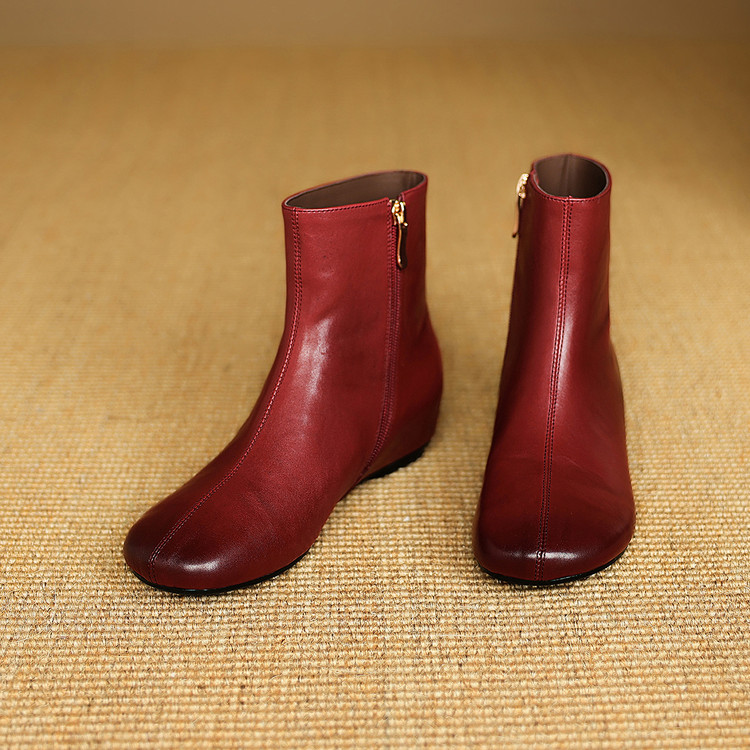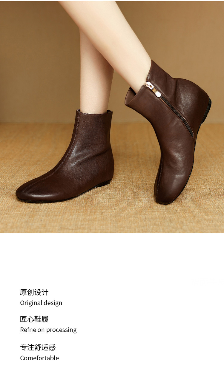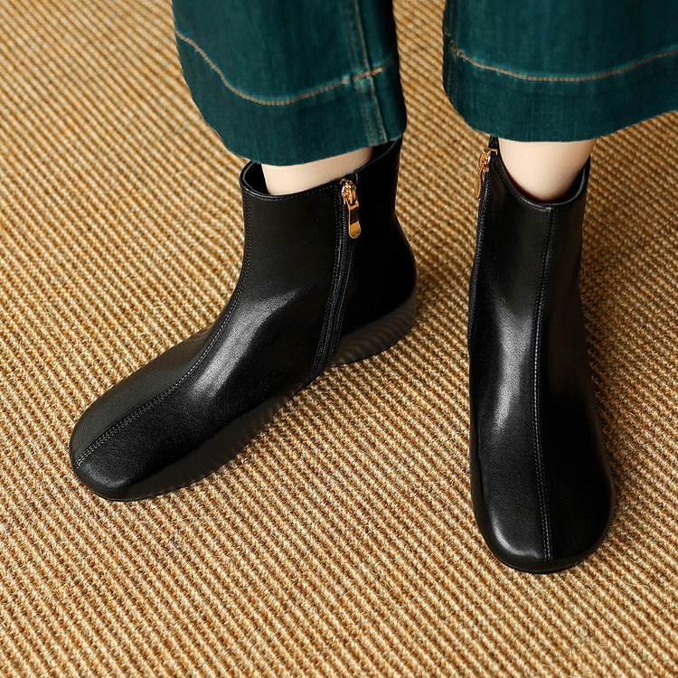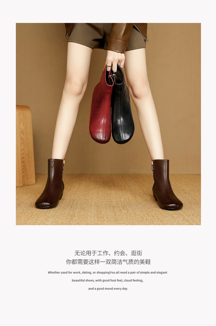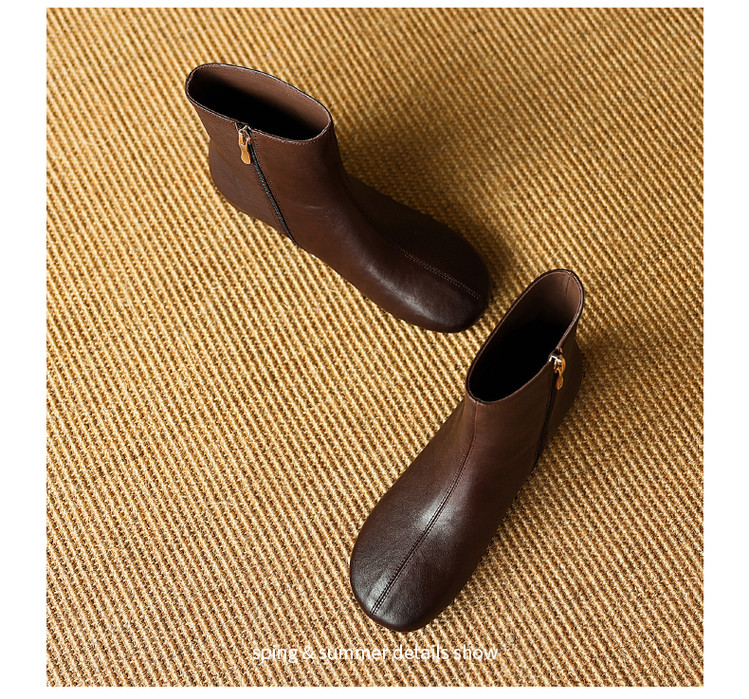【预售5天】冬新款牛皮法式复古圆头瘦瘦靴女低跟及裸靴马丁靴粗跟短靴NJMK&K1796