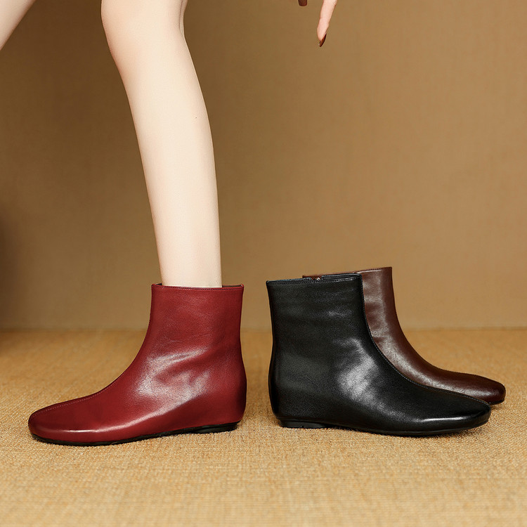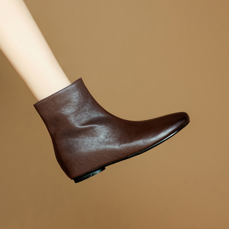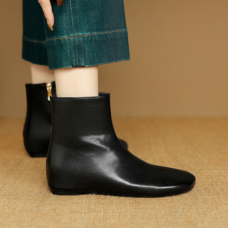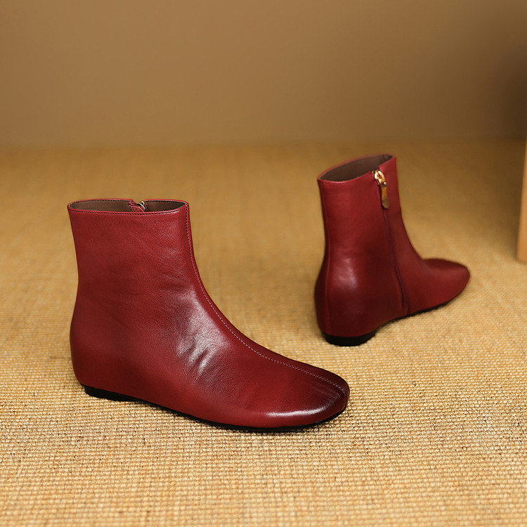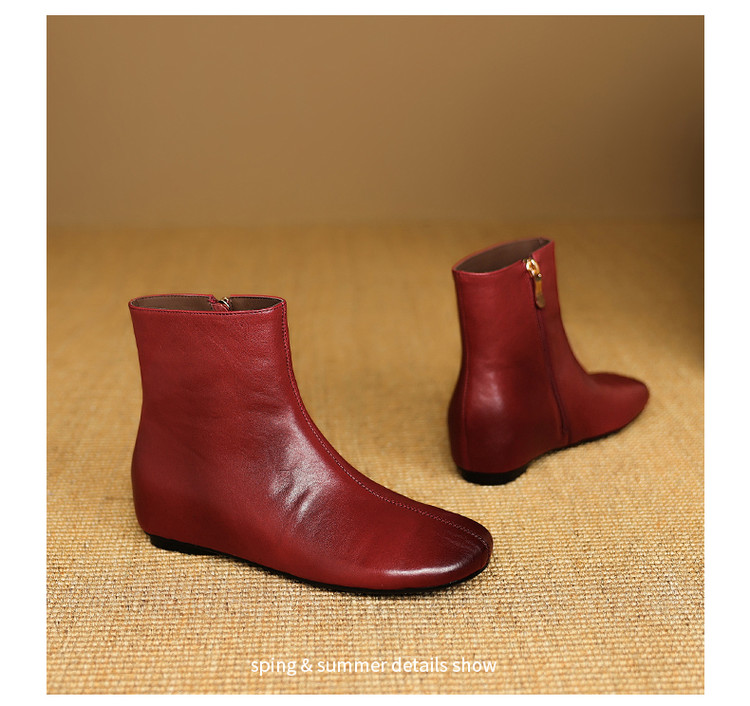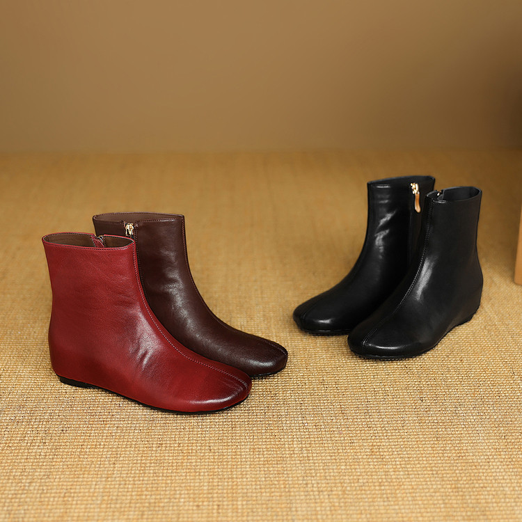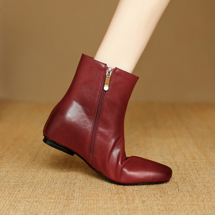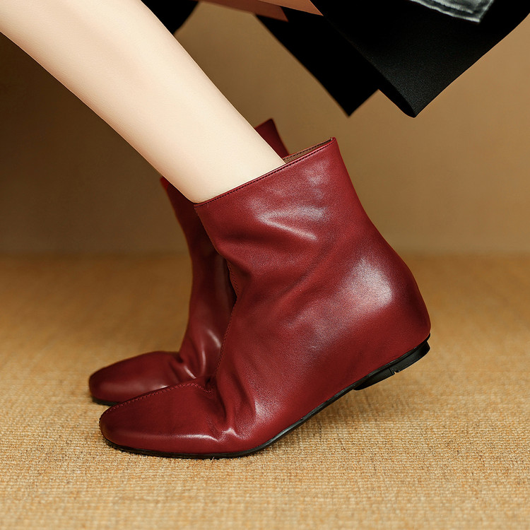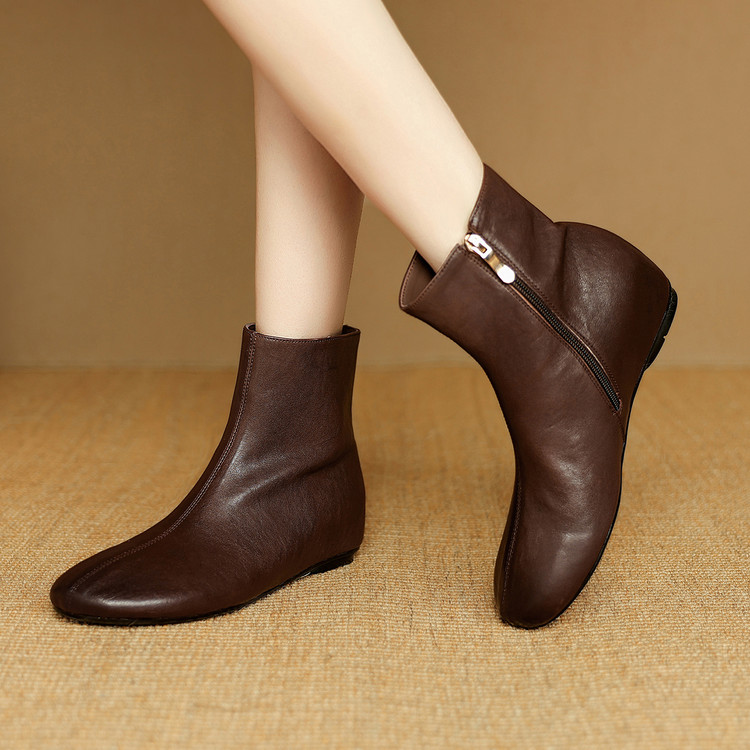 【预售5天】冬新款牛皮法式复古圆头瘦瘦靴女低跟及裸靴马丁靴粗跟短靴NJMK&K1796