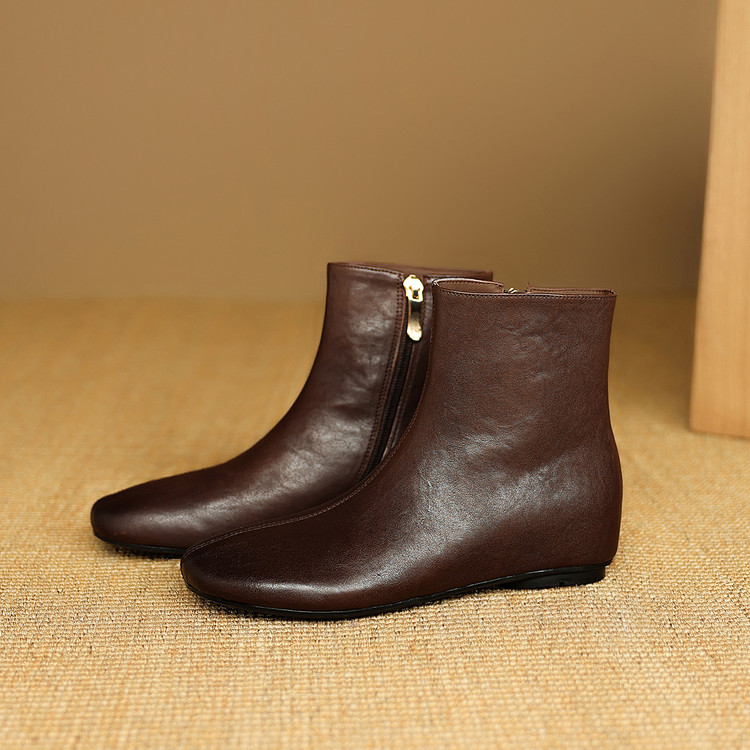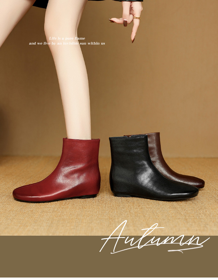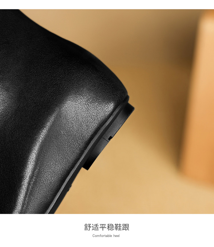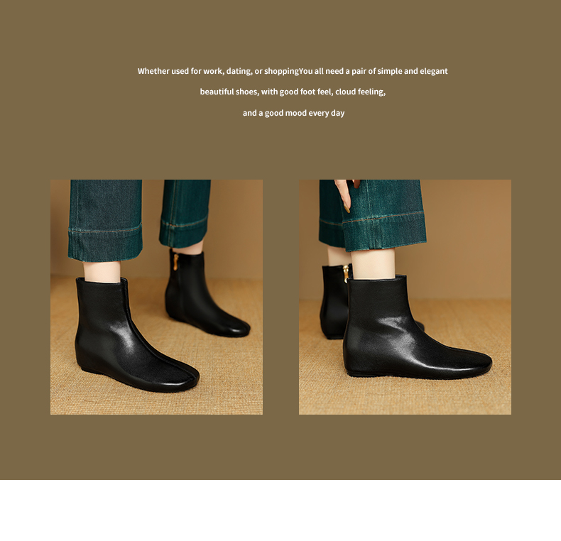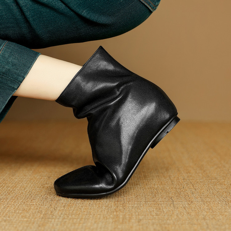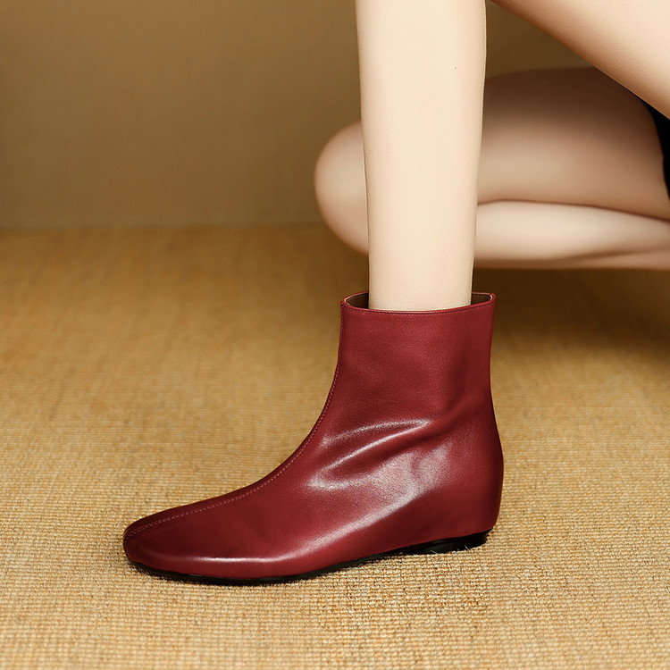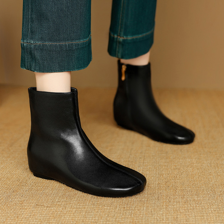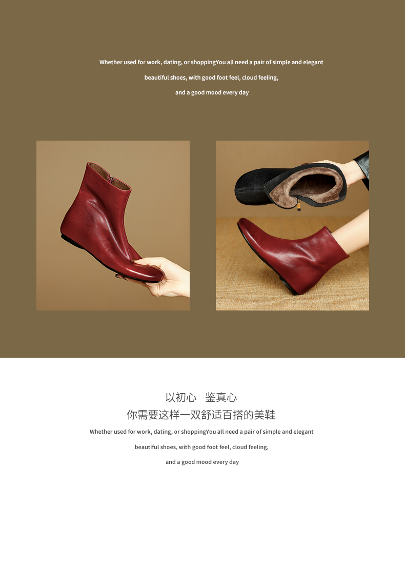 【预售5天】冬新款牛皮法式复古圆头瘦瘦靴女低跟及裸靴马丁靴粗跟短靴NJMK&K1796