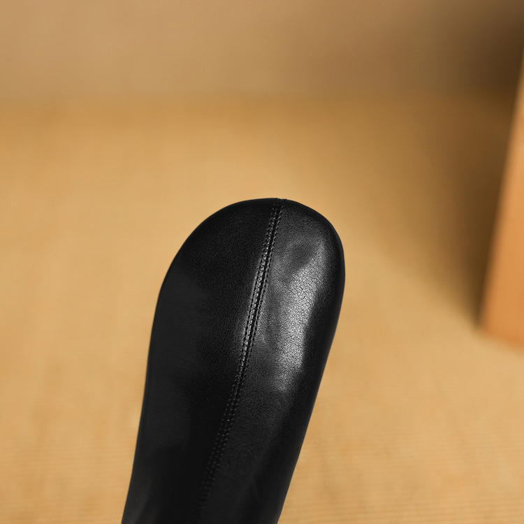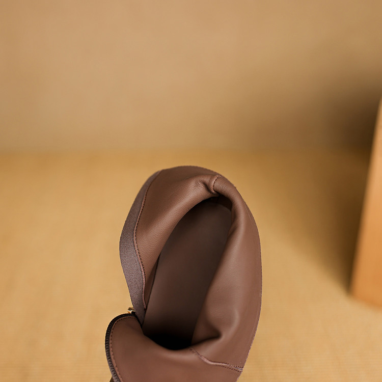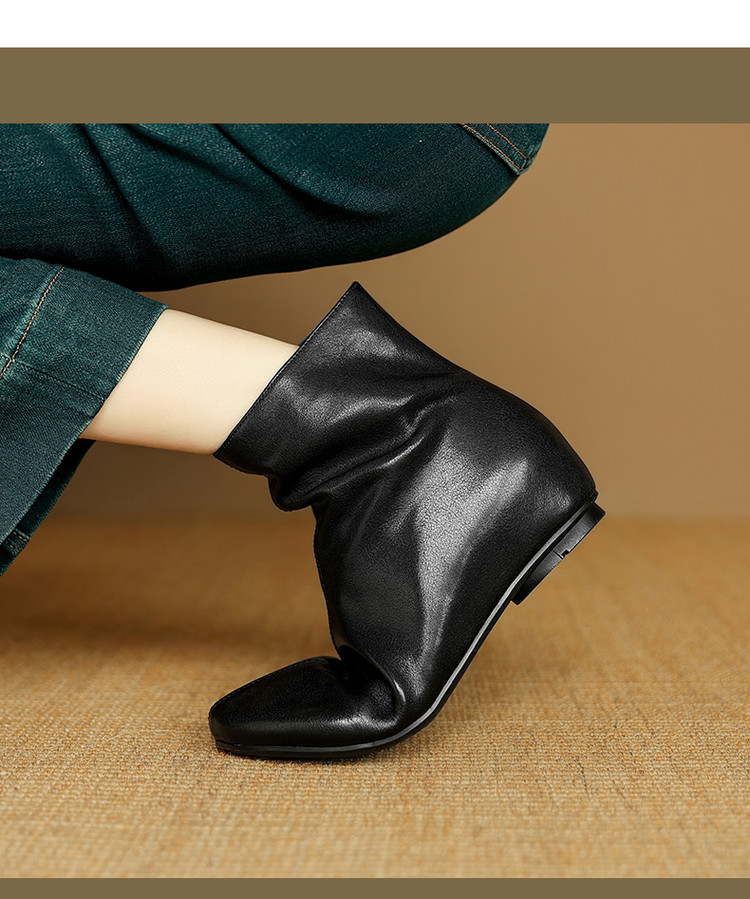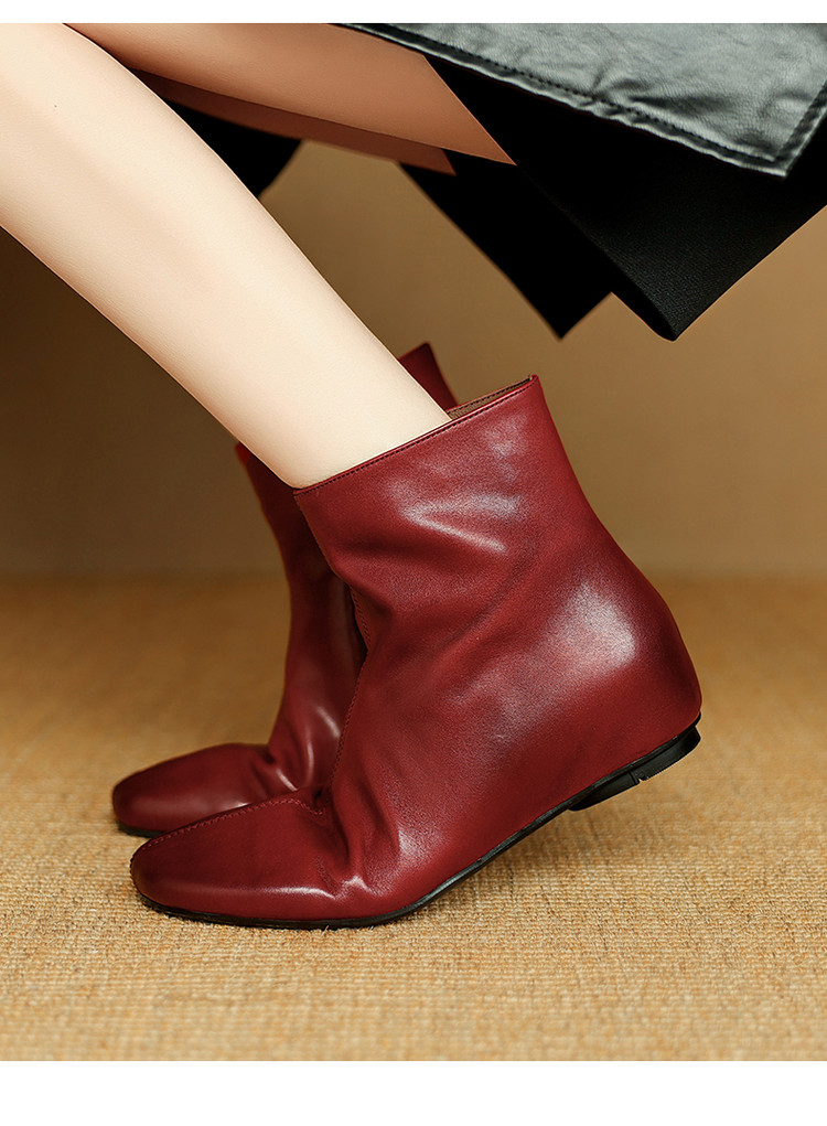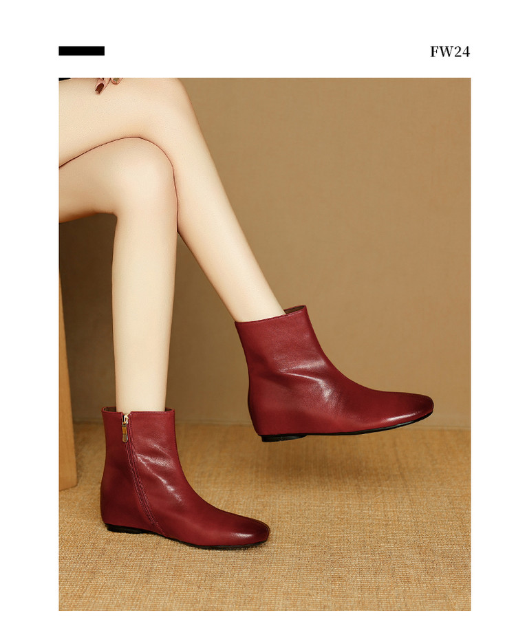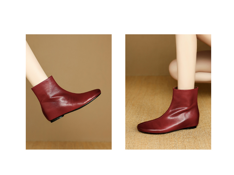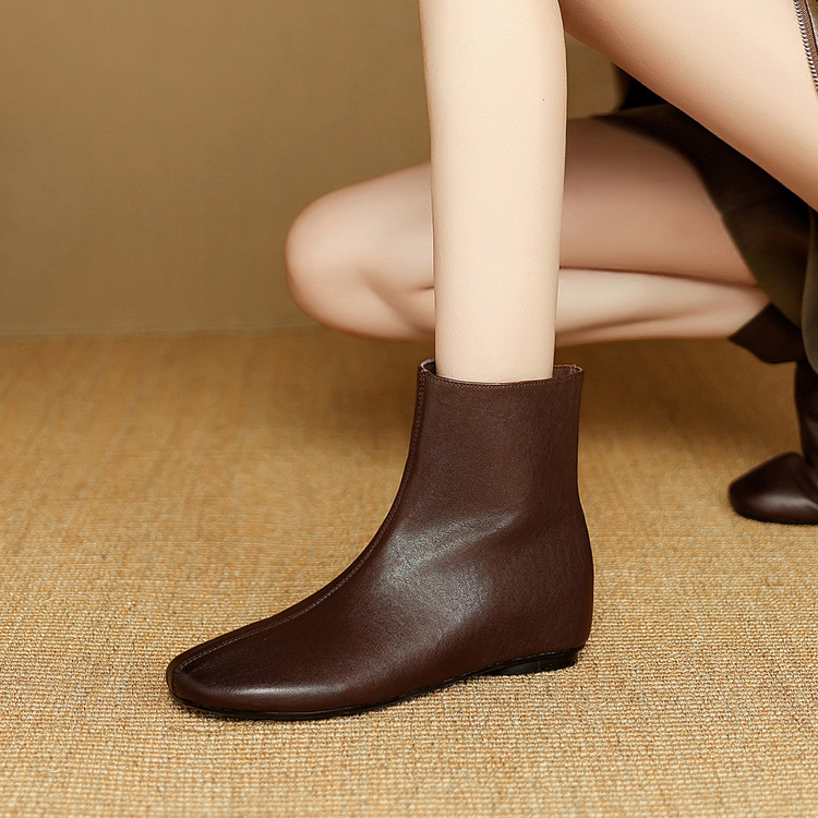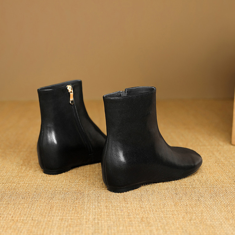 【预售5天】冬新款牛皮法式复古圆头瘦瘦靴女低跟及裸靴马丁靴粗跟短靴NJMK&K1796
