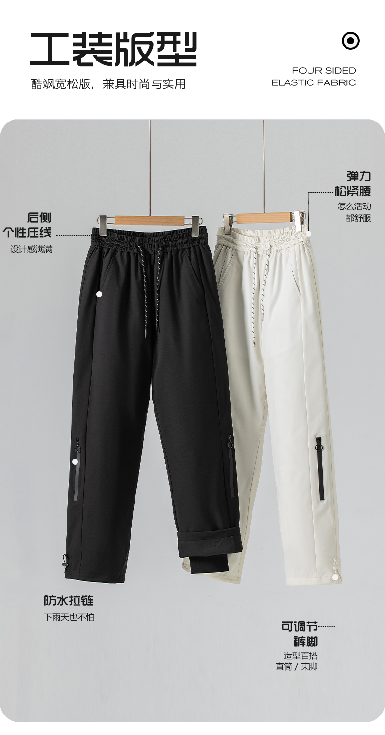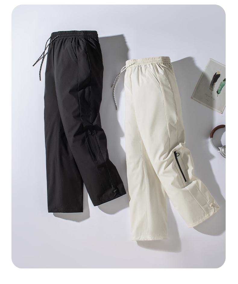 罗蒙冬季保暖羽绒裤男女同款情侣加厚舒适直筒个性拉链设计百搭长裤子