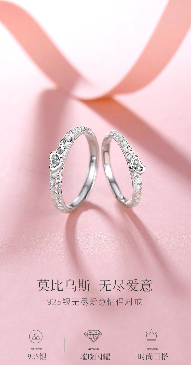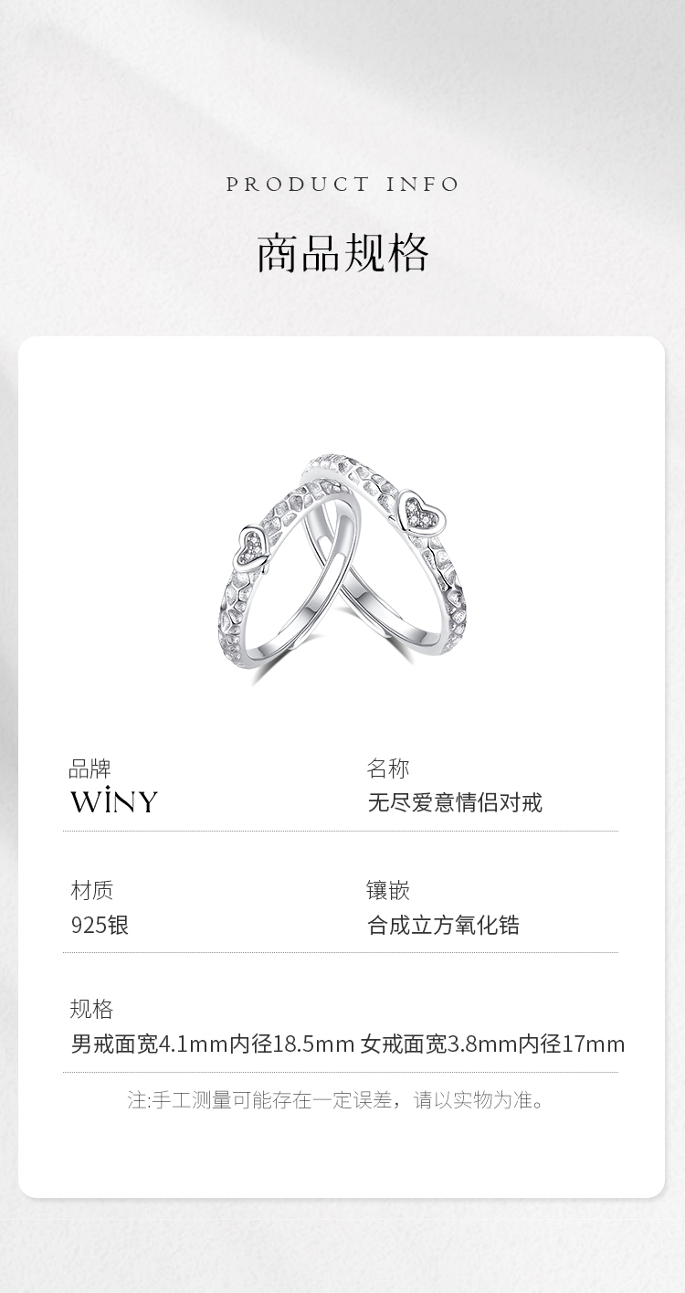 Winy925纯银无尽爱意情侣对戒送女友闺蜜节日生日礼物