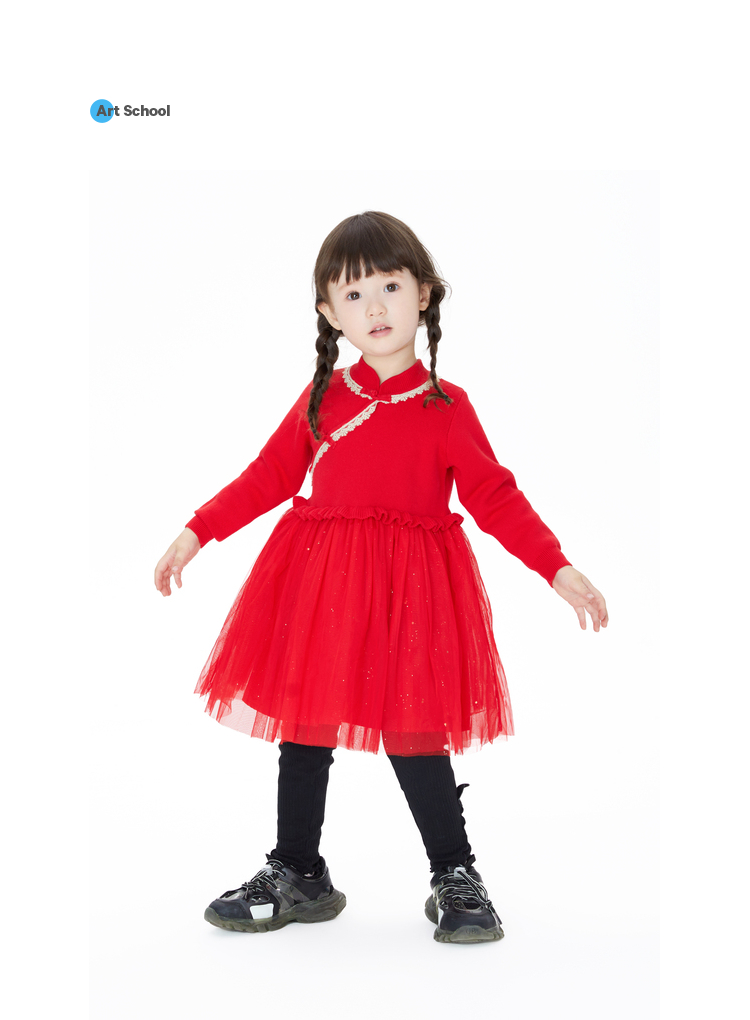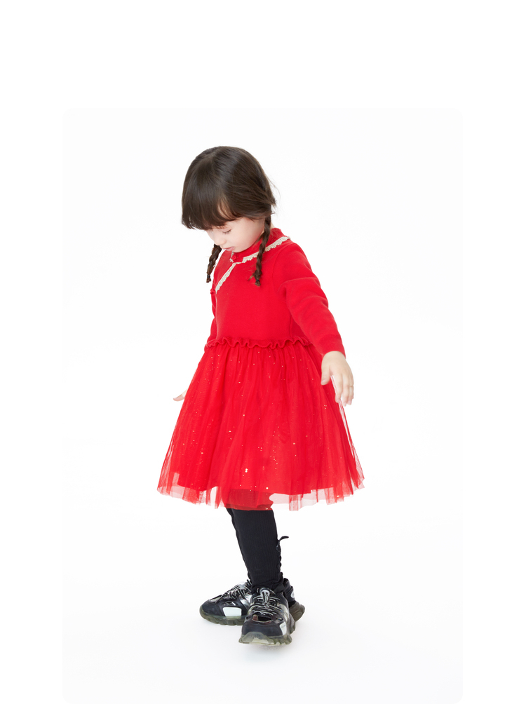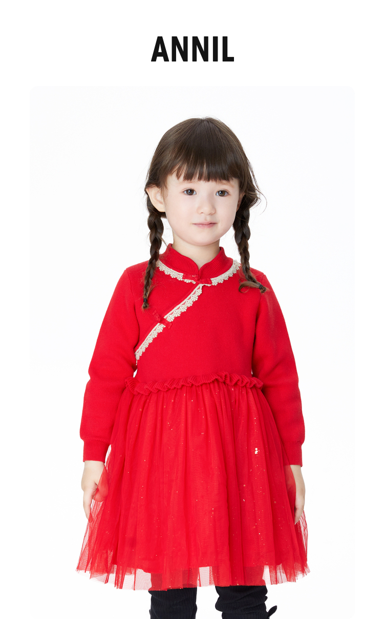 【实体店同款】【新年红】女童连衣裙秋新款宝宝长袖中国风安奈儿童装XG313502