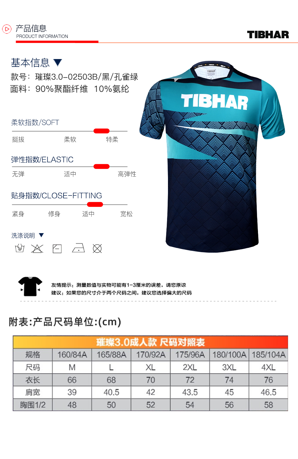 TIBHAR挺拔儿童乒乓球服 璀璨3.0 02503儿童乒乓球服夏季透气T恤短袖乒乓球运动服训练服