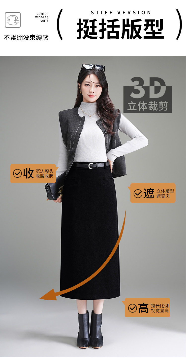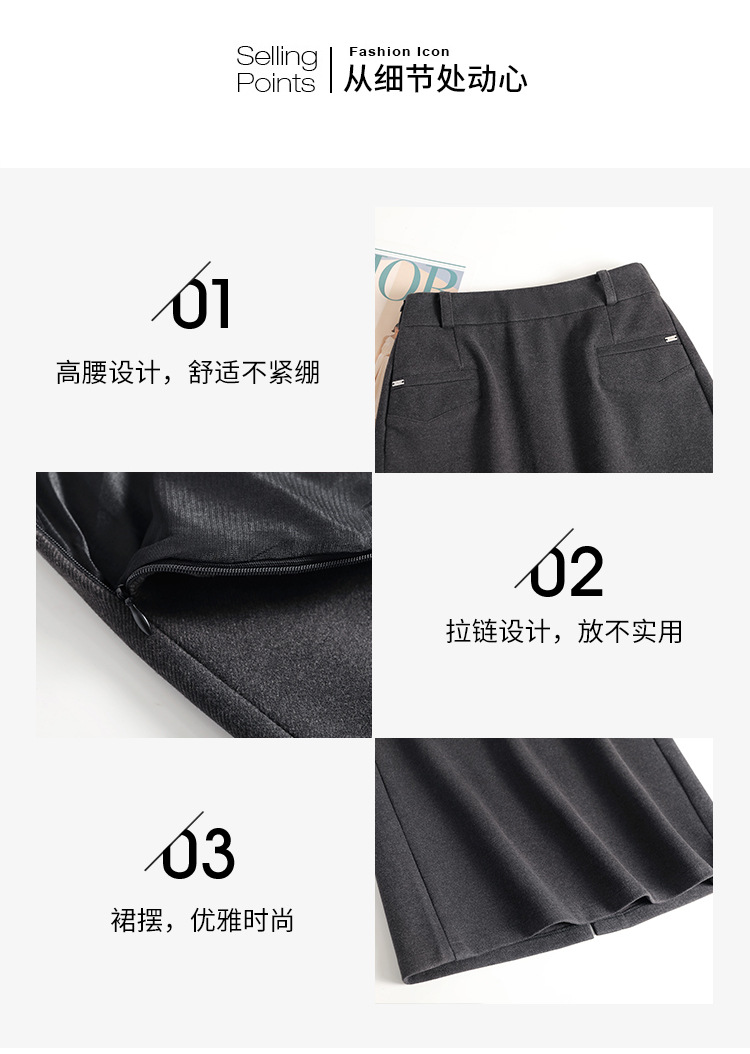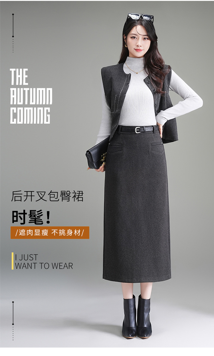 QYM 6326 -Y毛呢半身裙中长款包臀裙一步裙时尚 商品图3