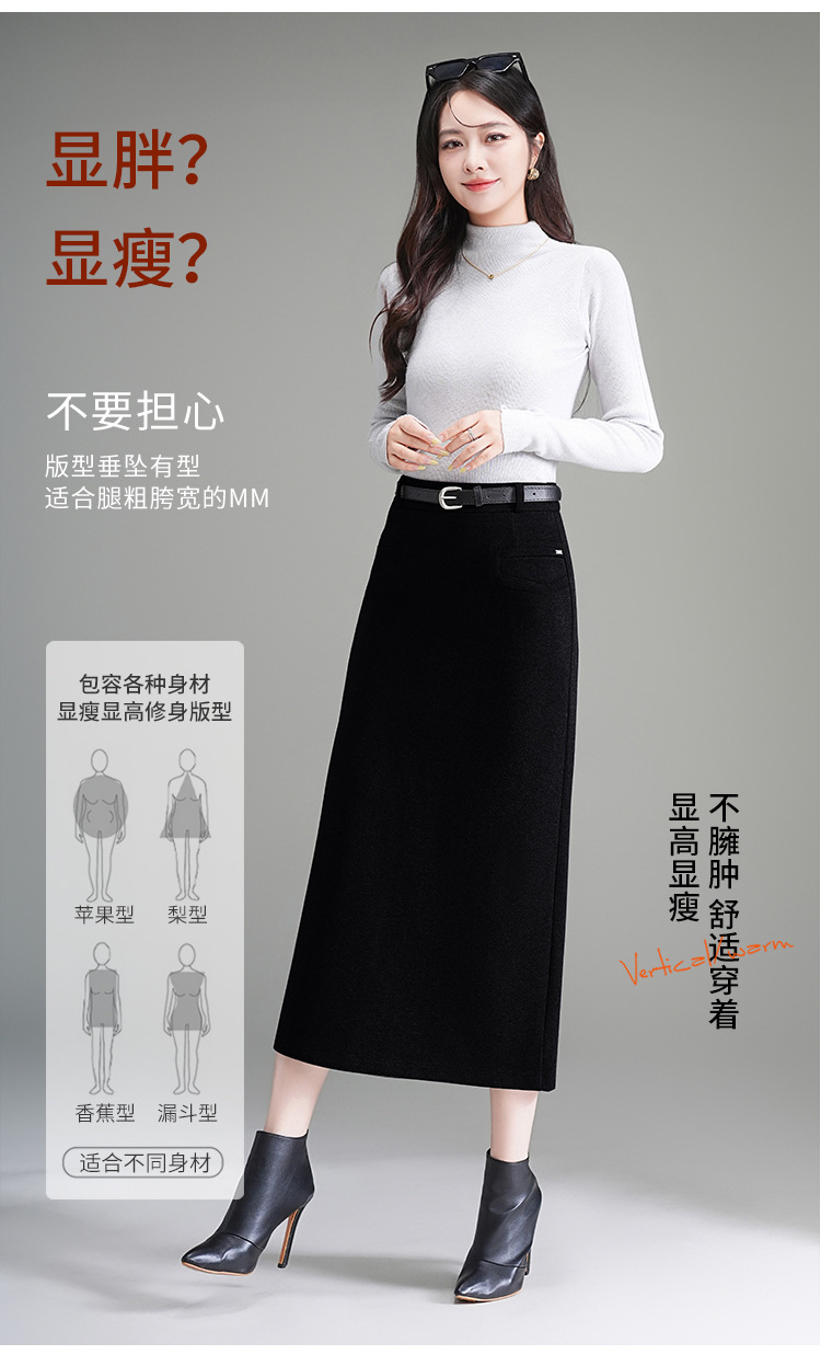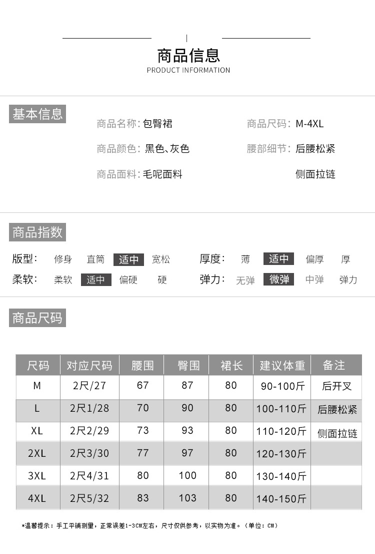 QYM 6326 -Y毛呢半身裙中长款包臀裙一步裙时尚 商品图4