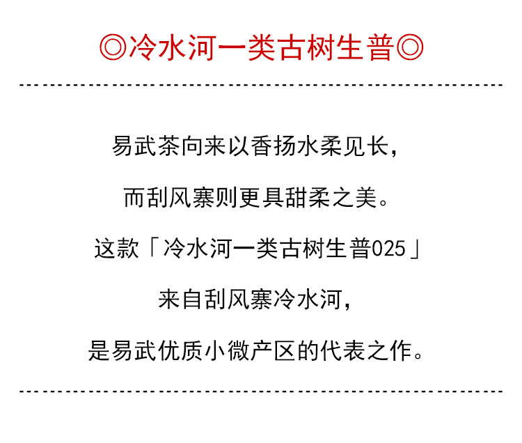 茶香记 冷水河一类古树生普025普洱茶易武刮风寨国有林核心产区香扬水柔