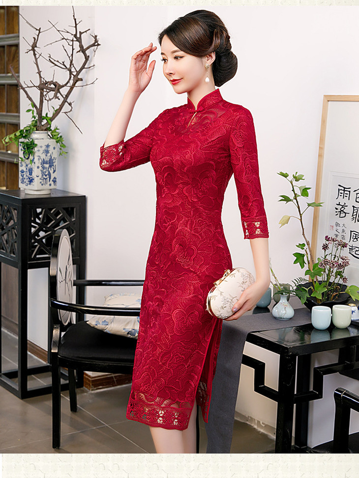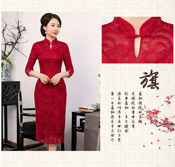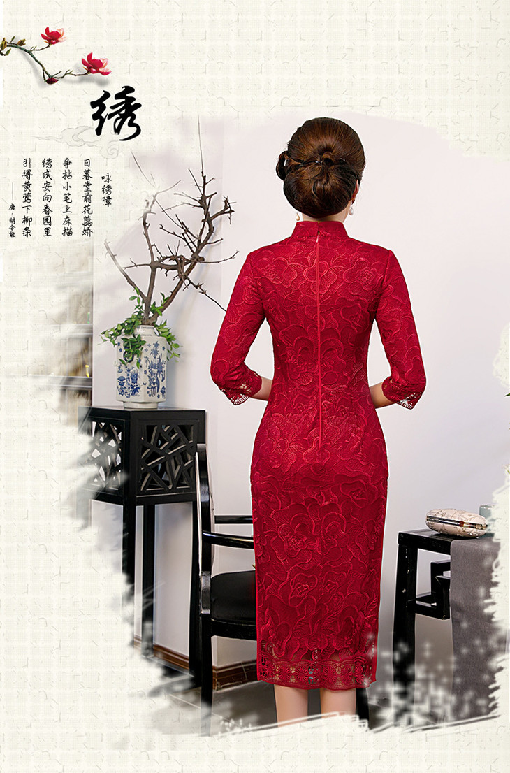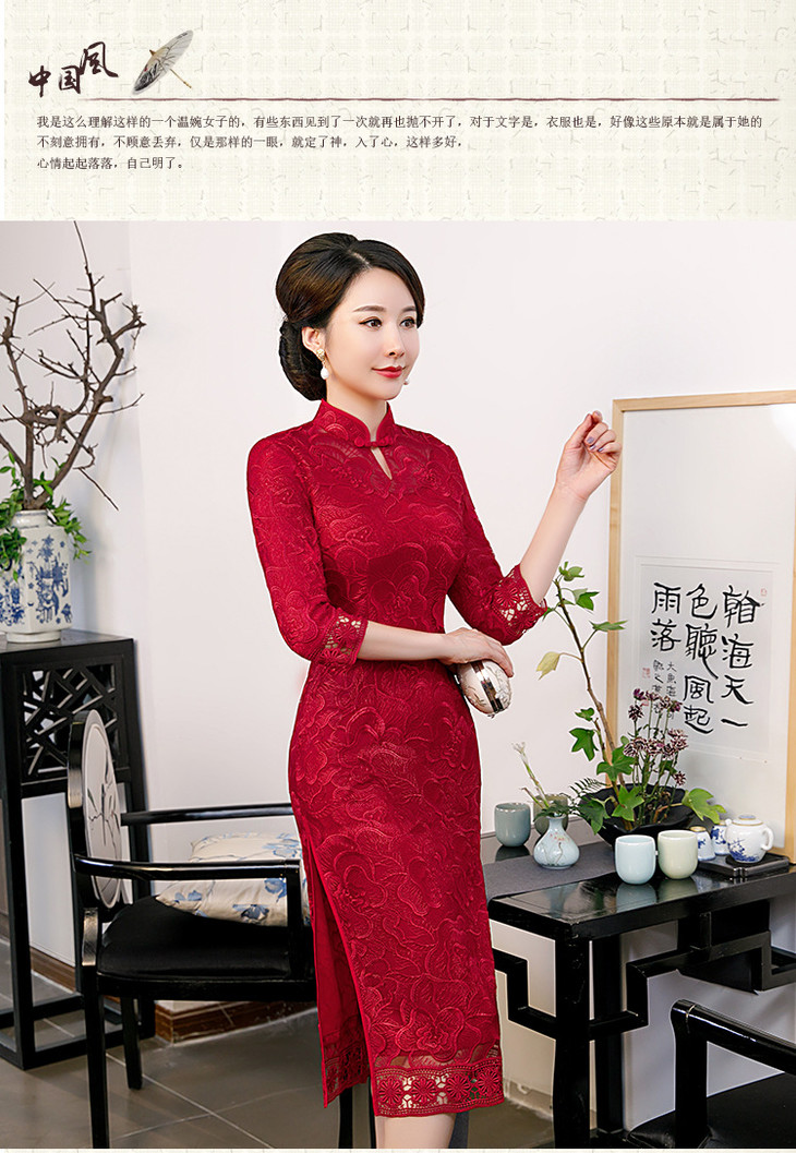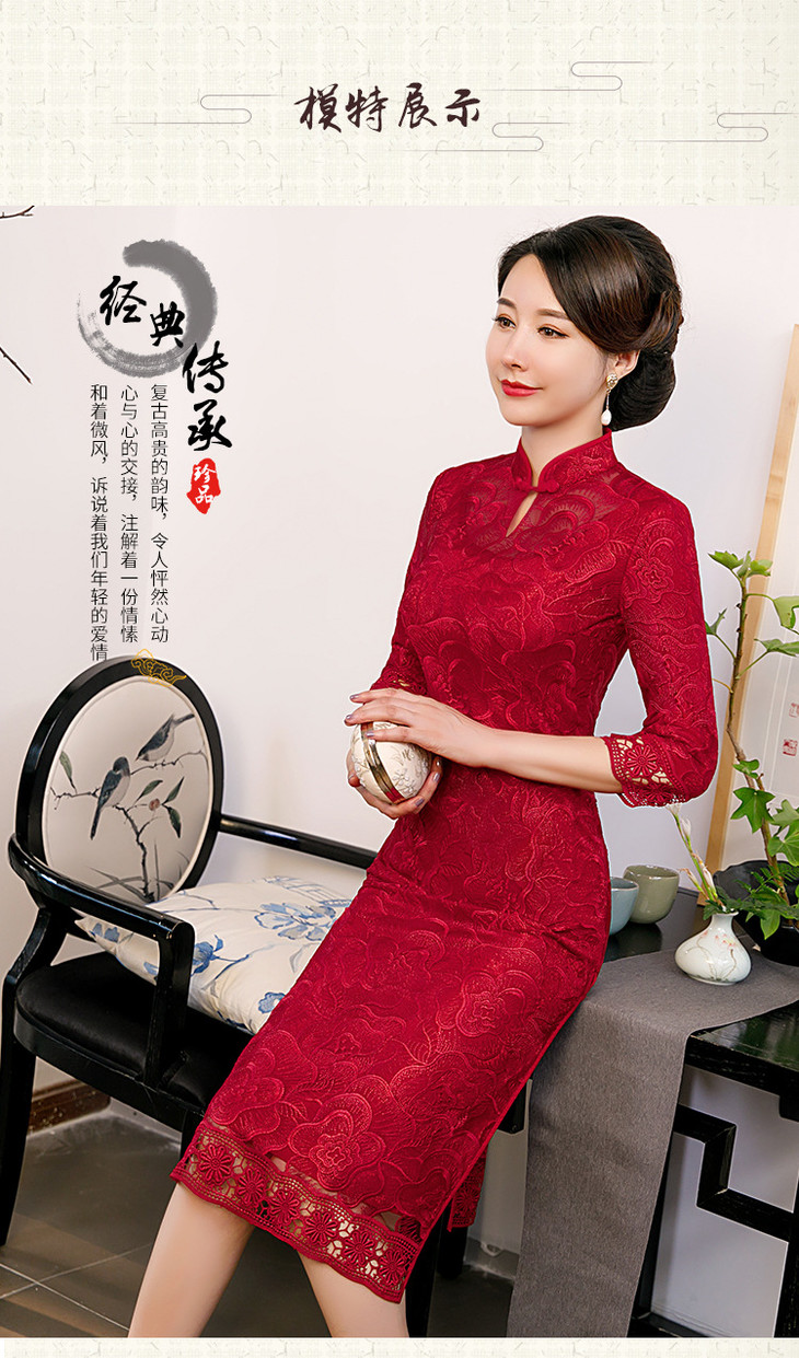 QQX-新款中袖妈妈宴会礼服中长款婚宴喜婆婆旗袍连衣裙