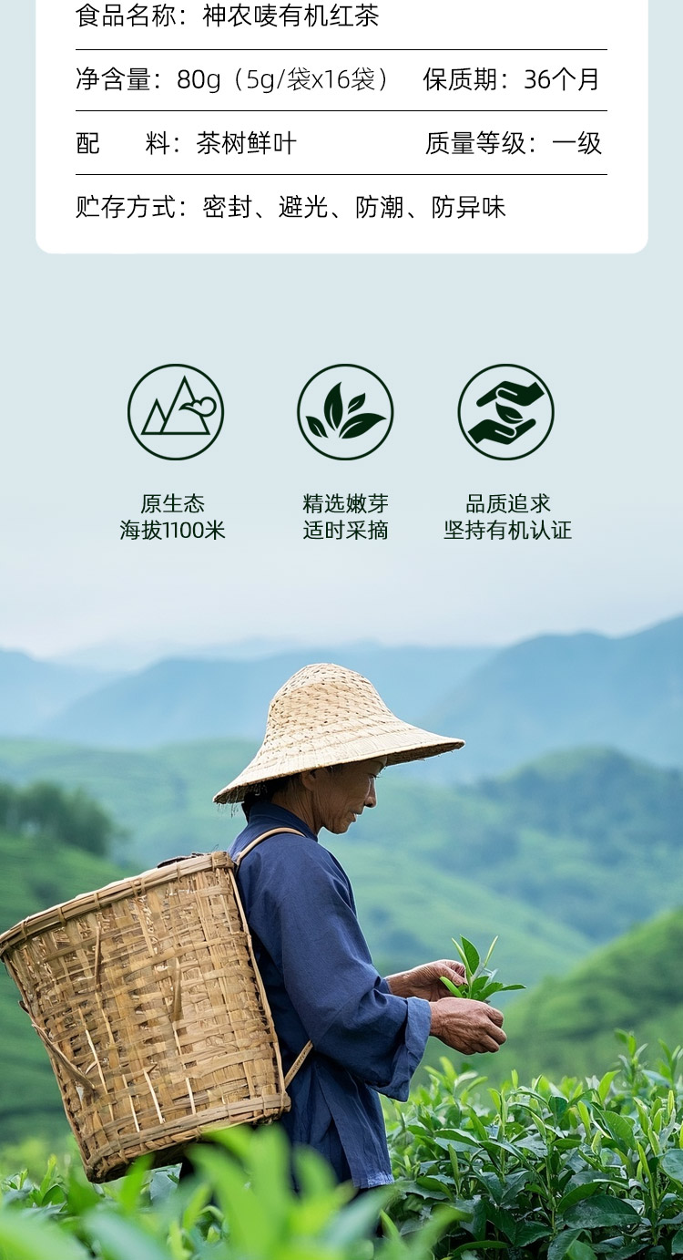 高定有机红茶2025新茶贵州凤冈锌硒茶神农唛有机红茶 浓香型一级品质工夫茶80g/条