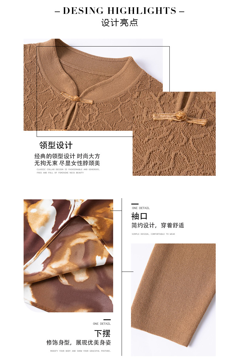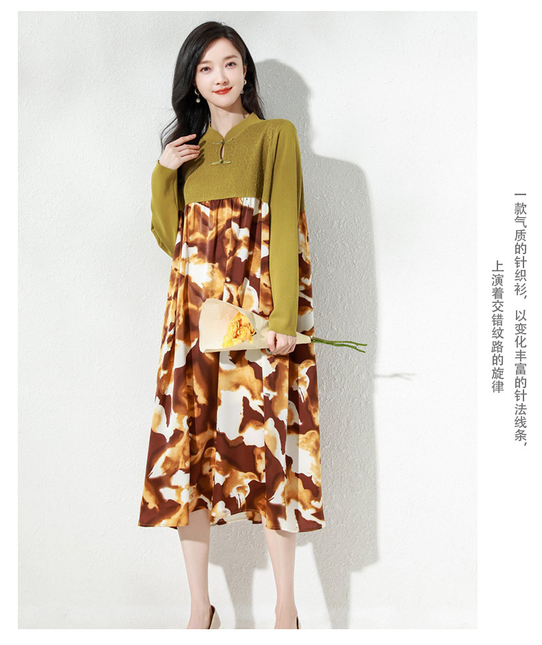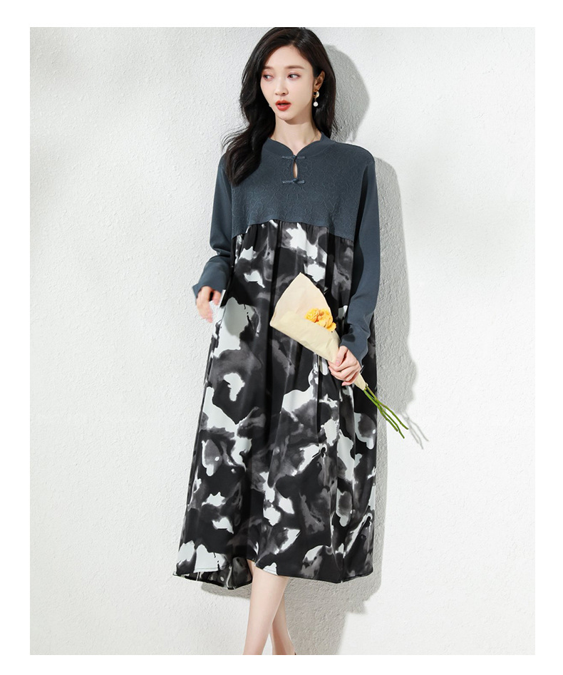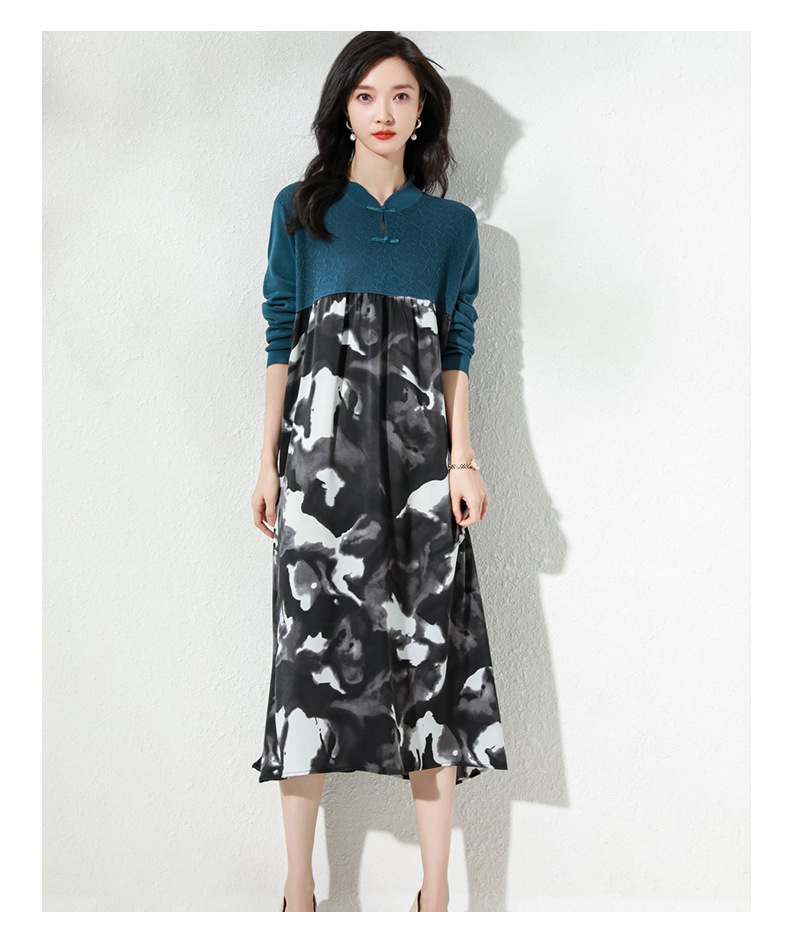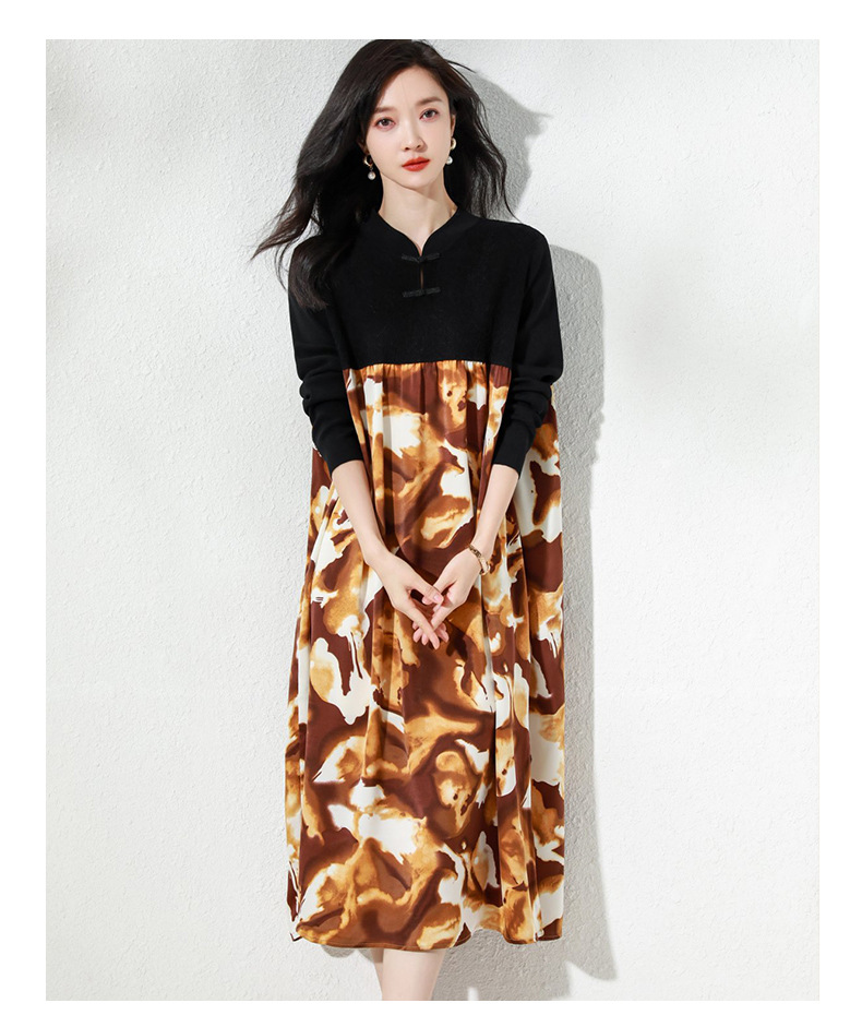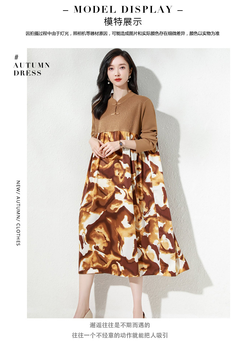 QYZLM58617 长裙子显瘦遮肉微胖针织连衣裙 超长款印花拼接修身显瘦裙子