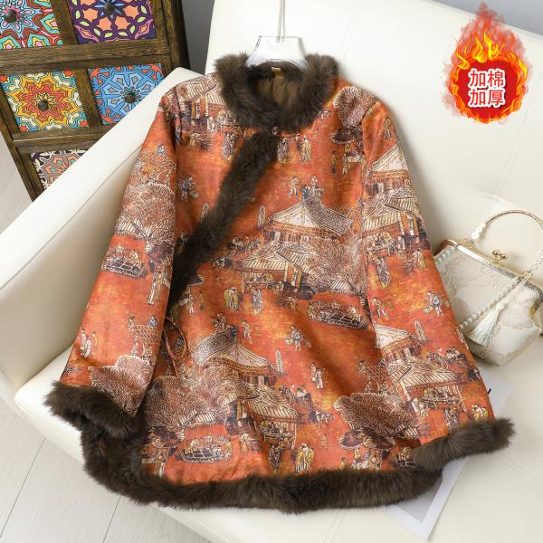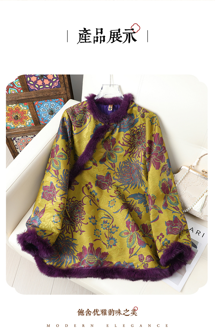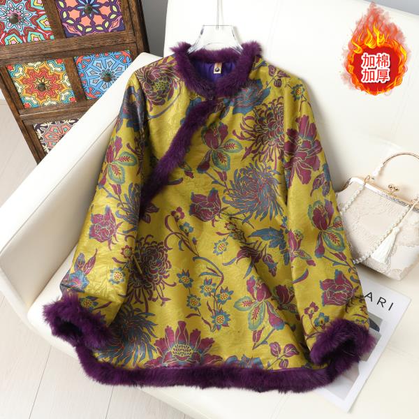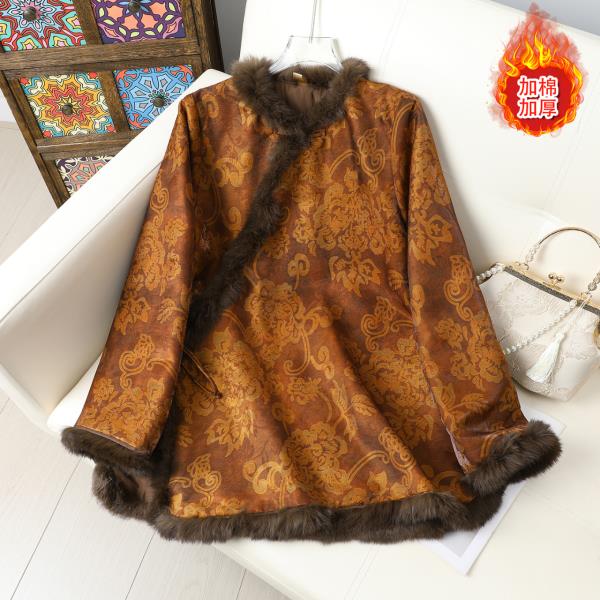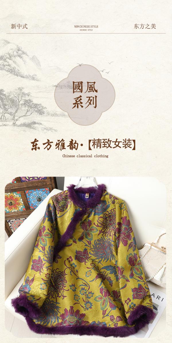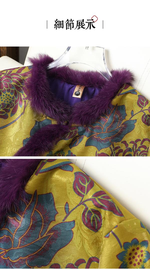 新中式国风毛领毛边斜襟棉服女保暖复古加棉加厚唐装外套棉衣冬
