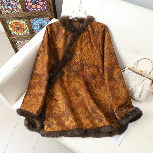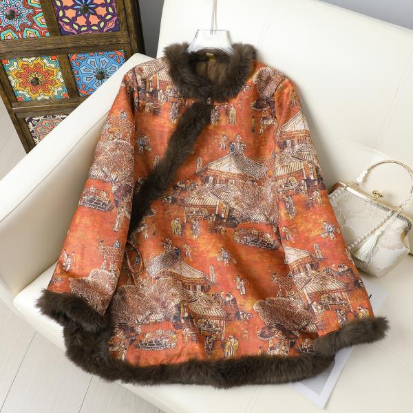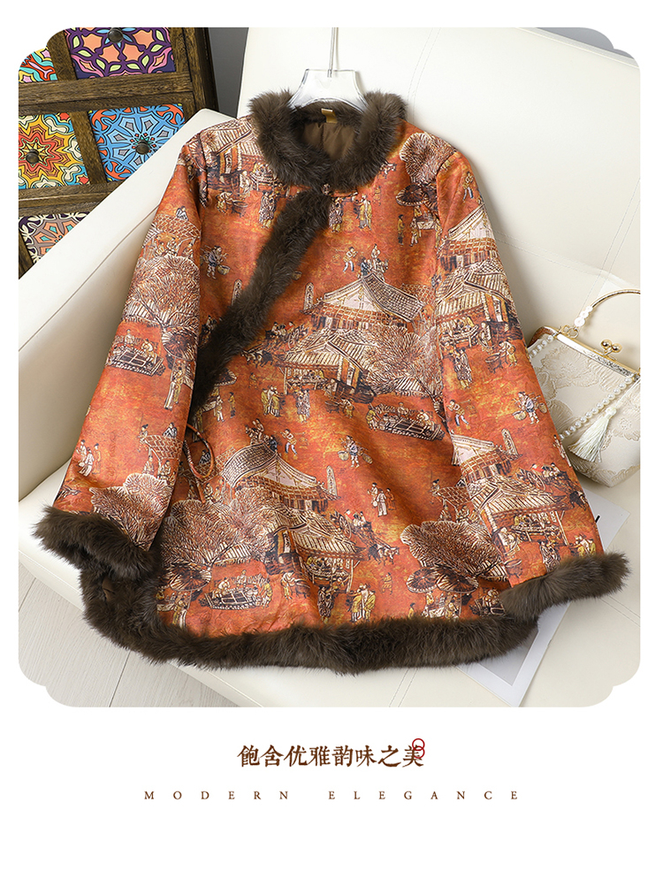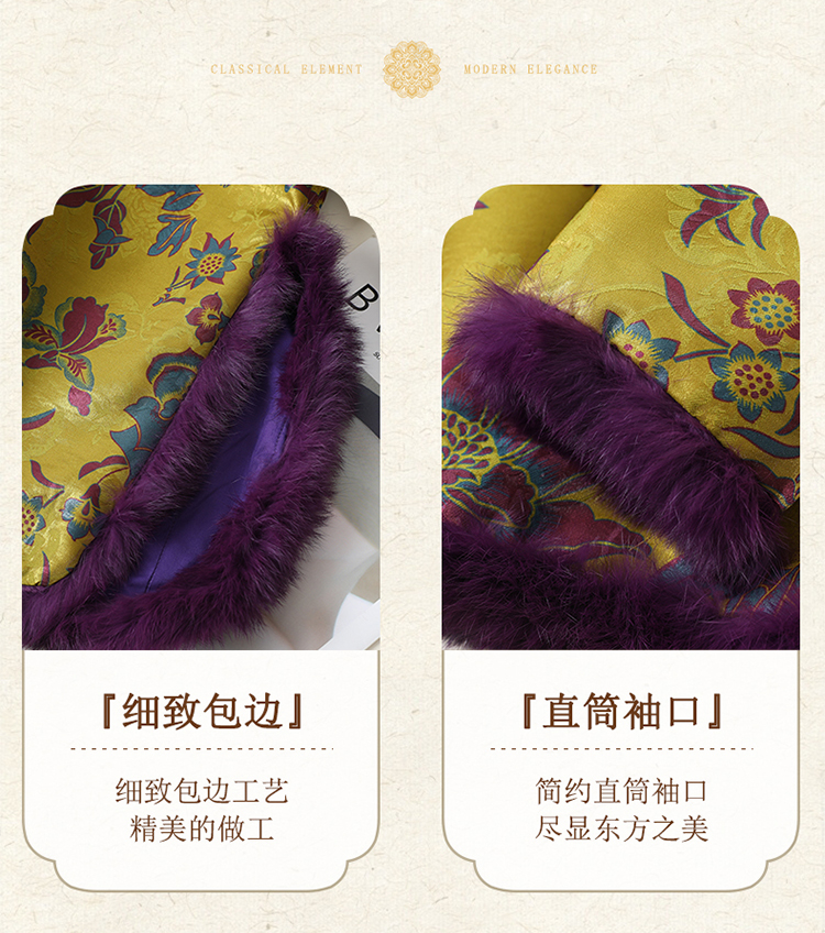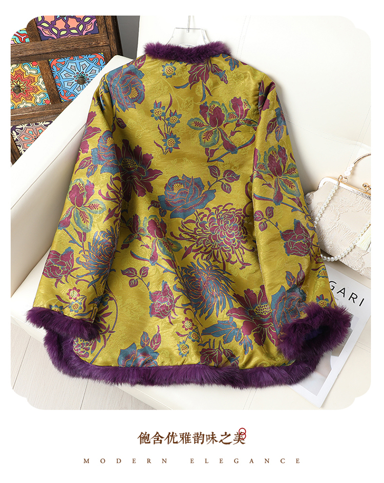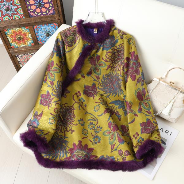 新中式国风毛领毛边斜襟棉服女保暖复古加棉加厚唐装外套棉衣冬