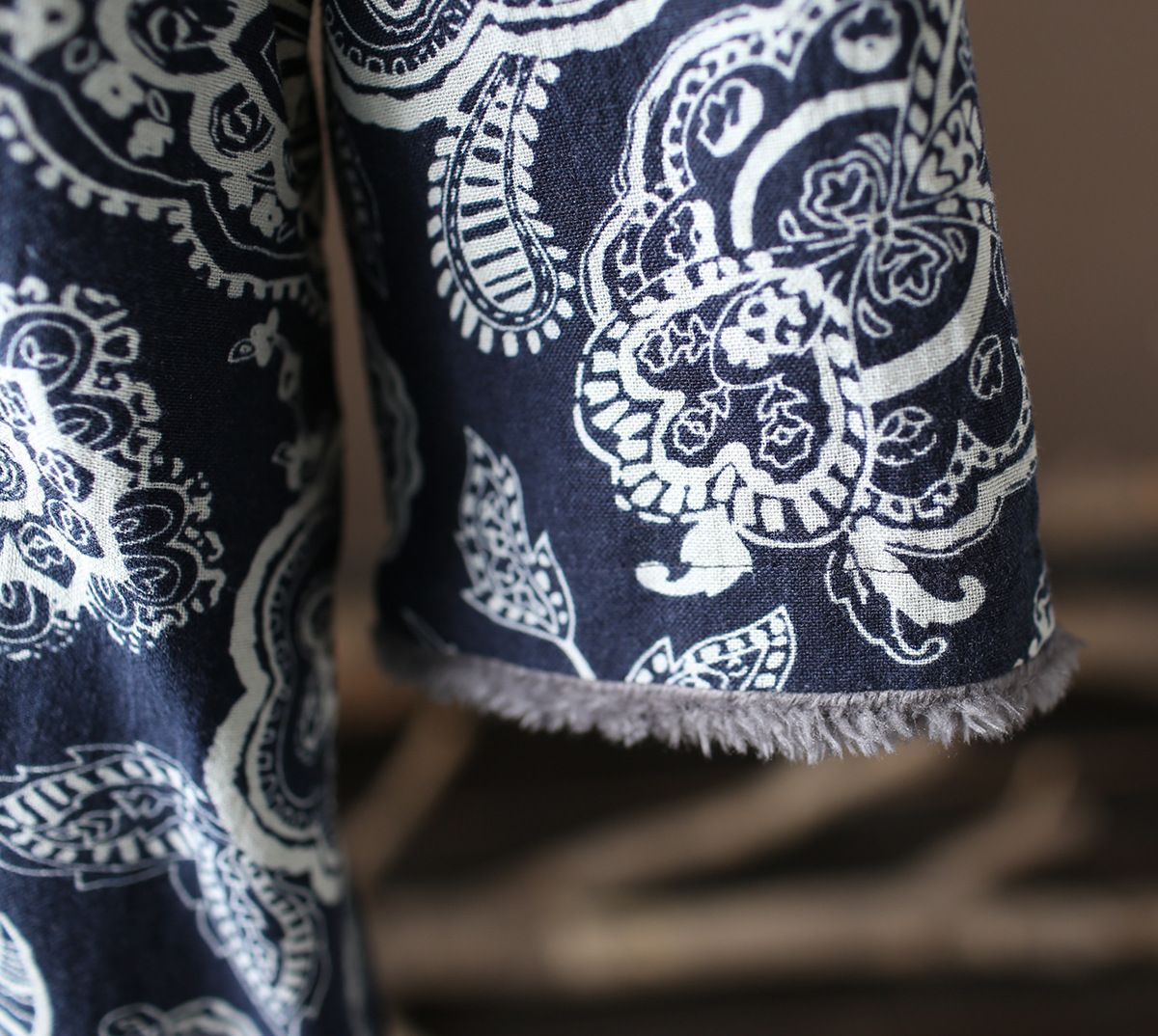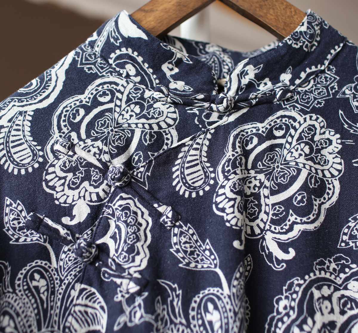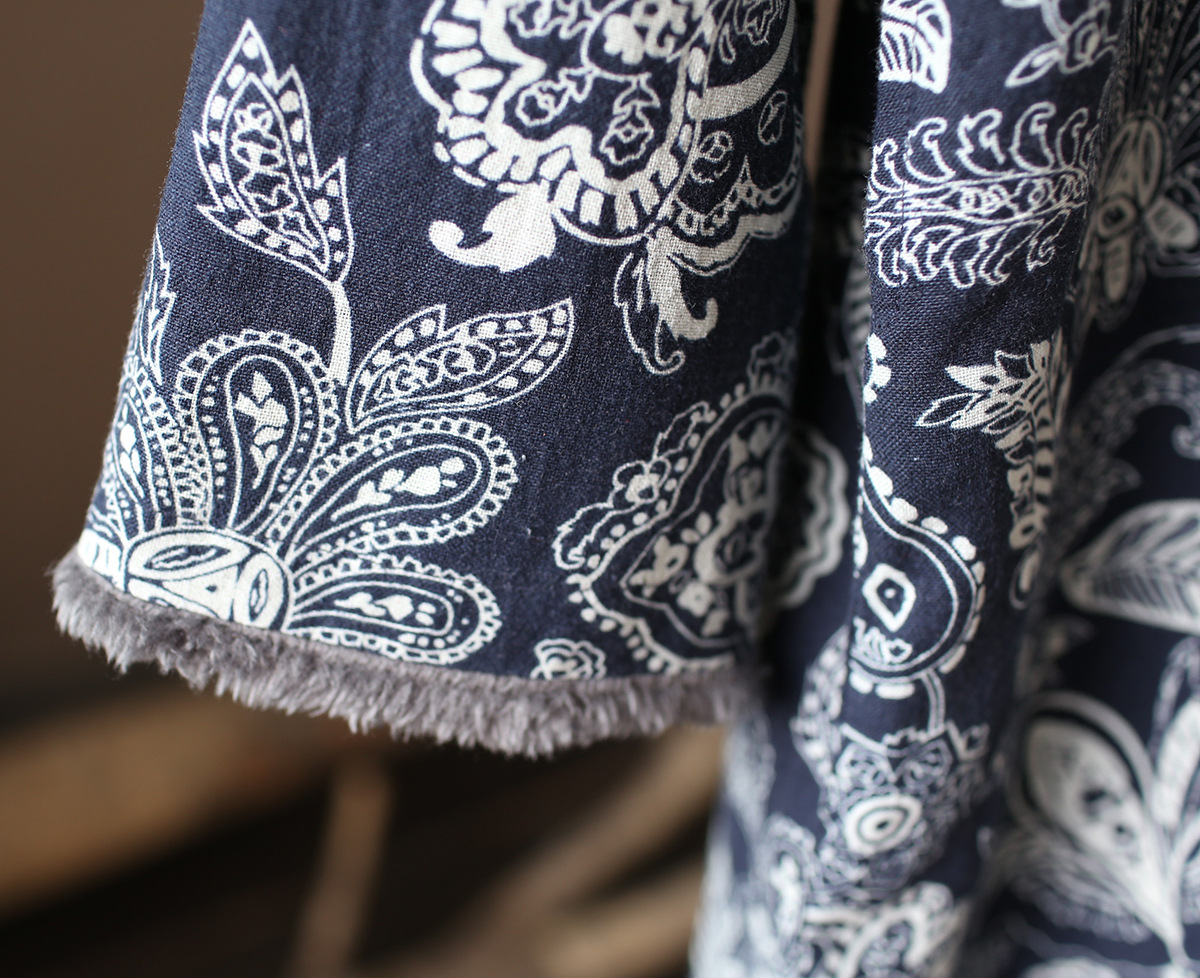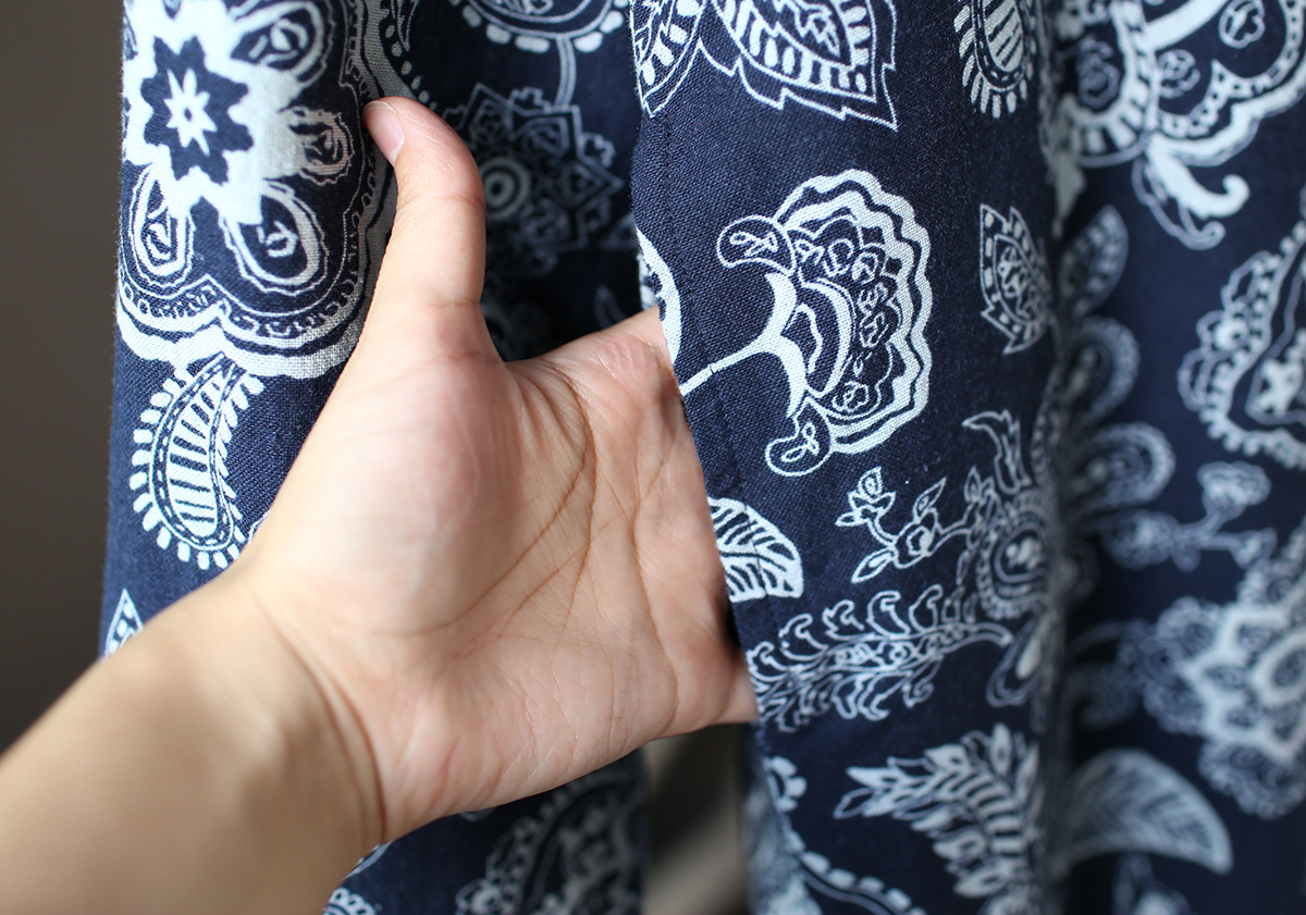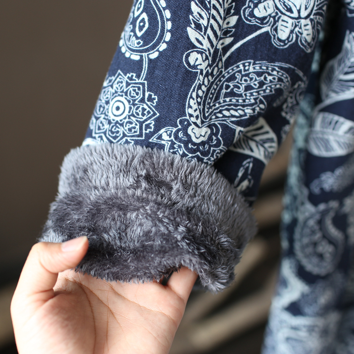 XM-连衣裙青花瓷国风复古秋冬连衣裙加绒加厚印花女装宽松长裙