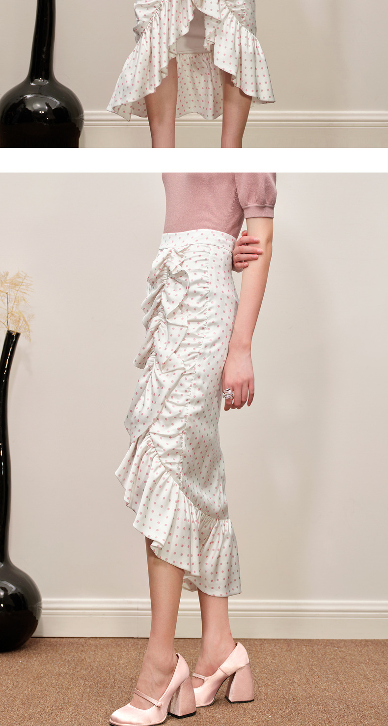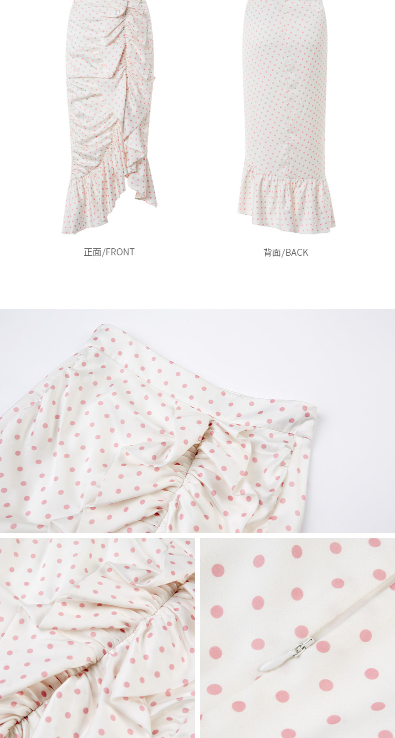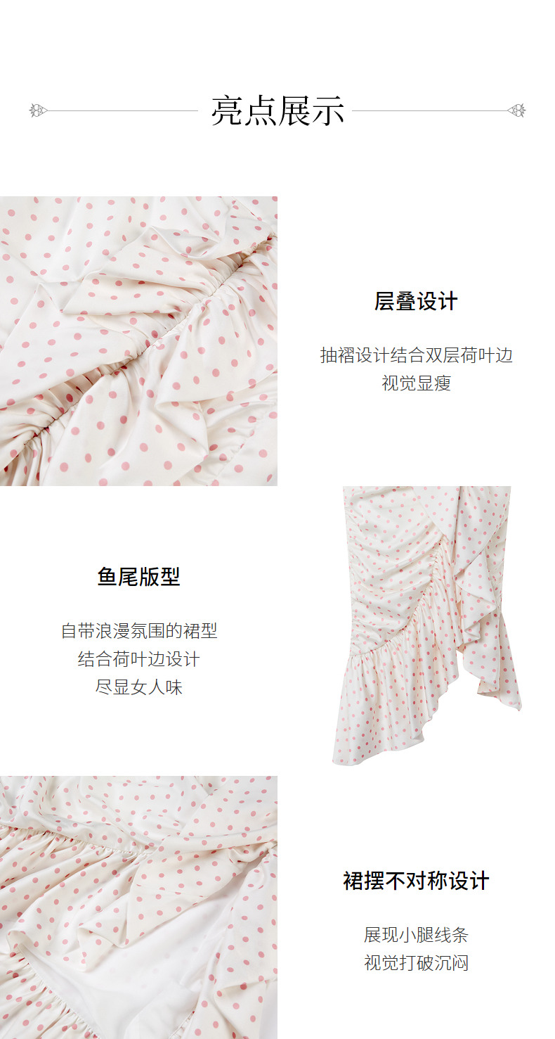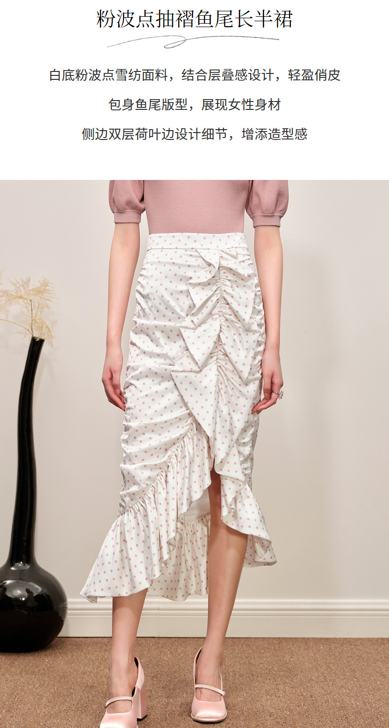 MAXRIENY复古浪漫粉波点抽褶鱼尾半裙雪纺裙(货号:MC88SK564)