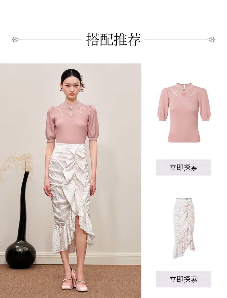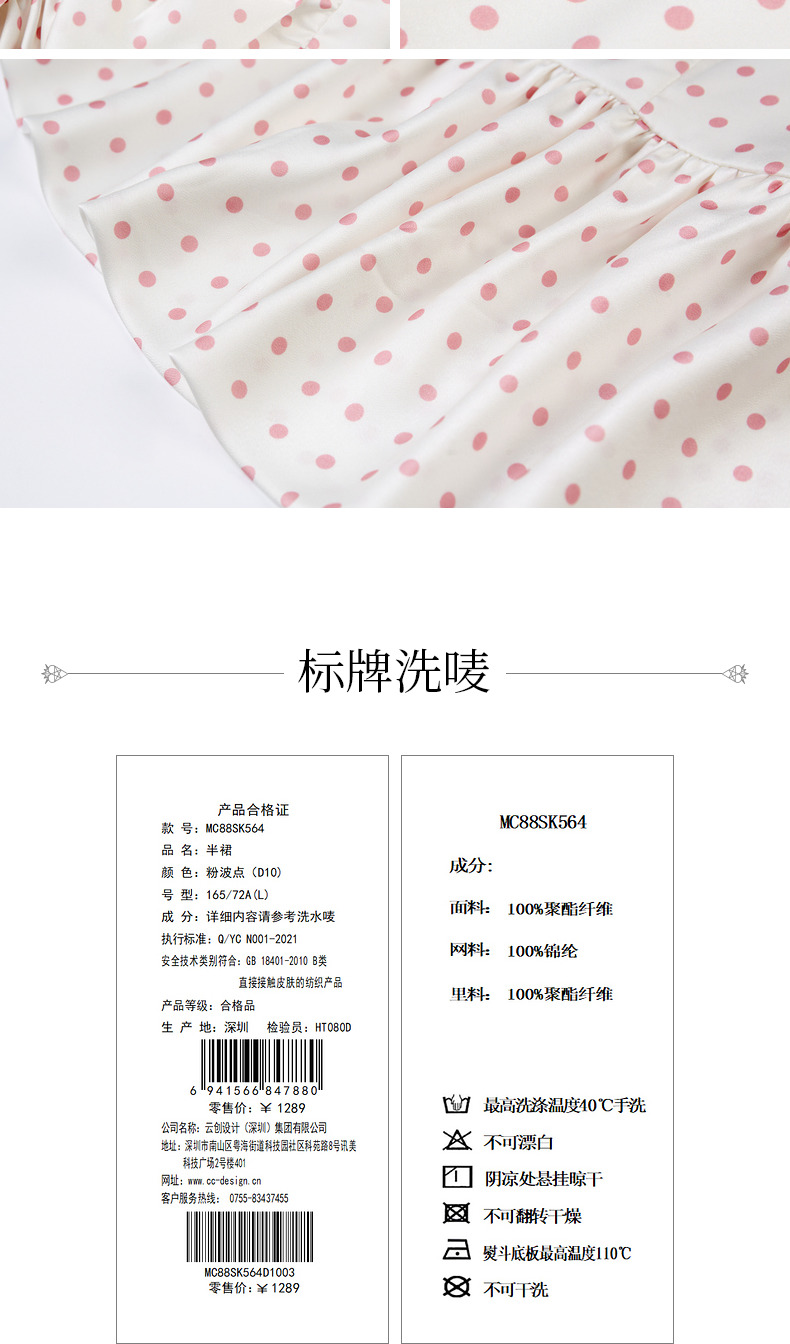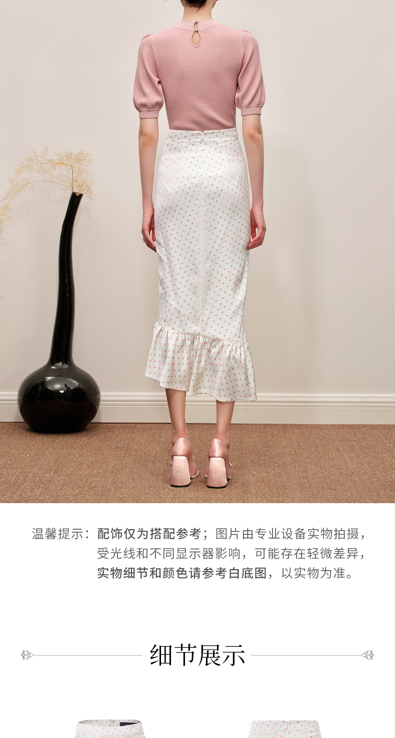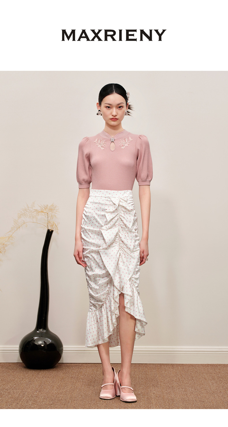 MAXRIENY复古浪漫粉波点抽褶鱼尾半裙雪纺裙(货号:MC88SK564)
