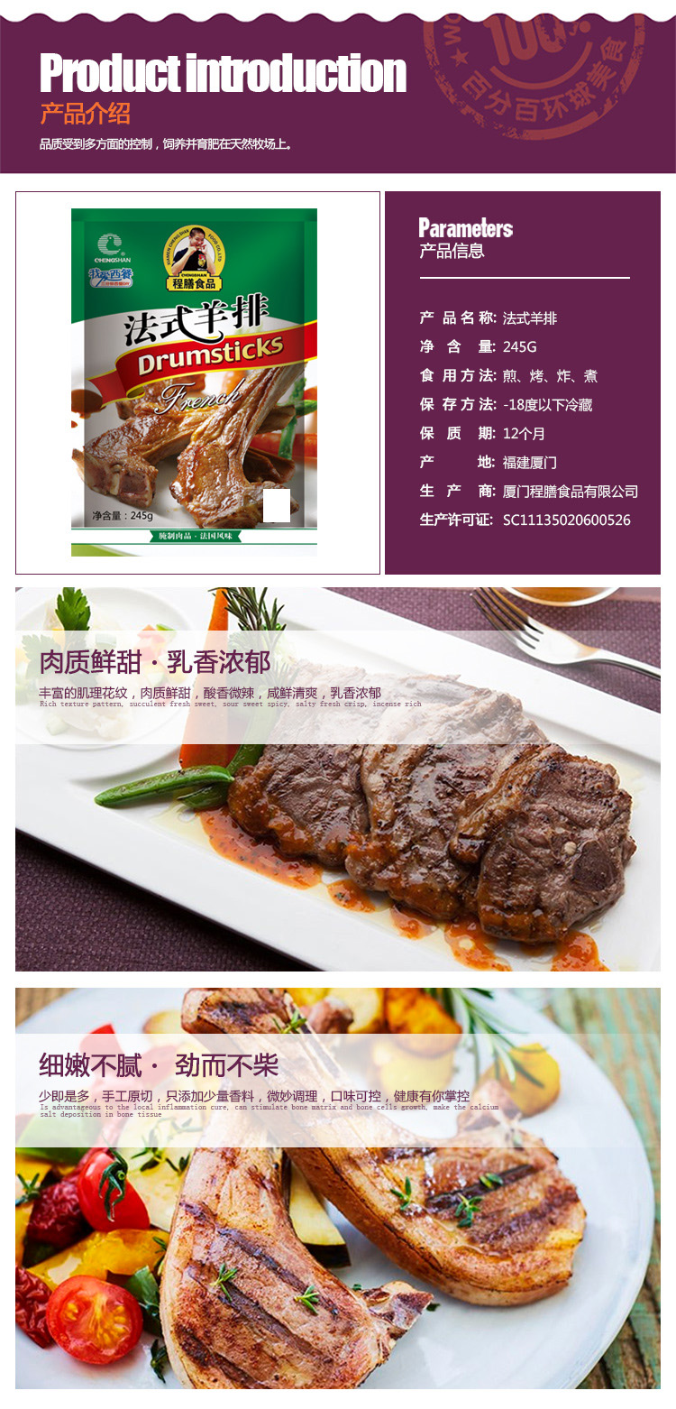 程泰法式羊排/1包(3-4片,共245g)生产日期:25年10月补单专用