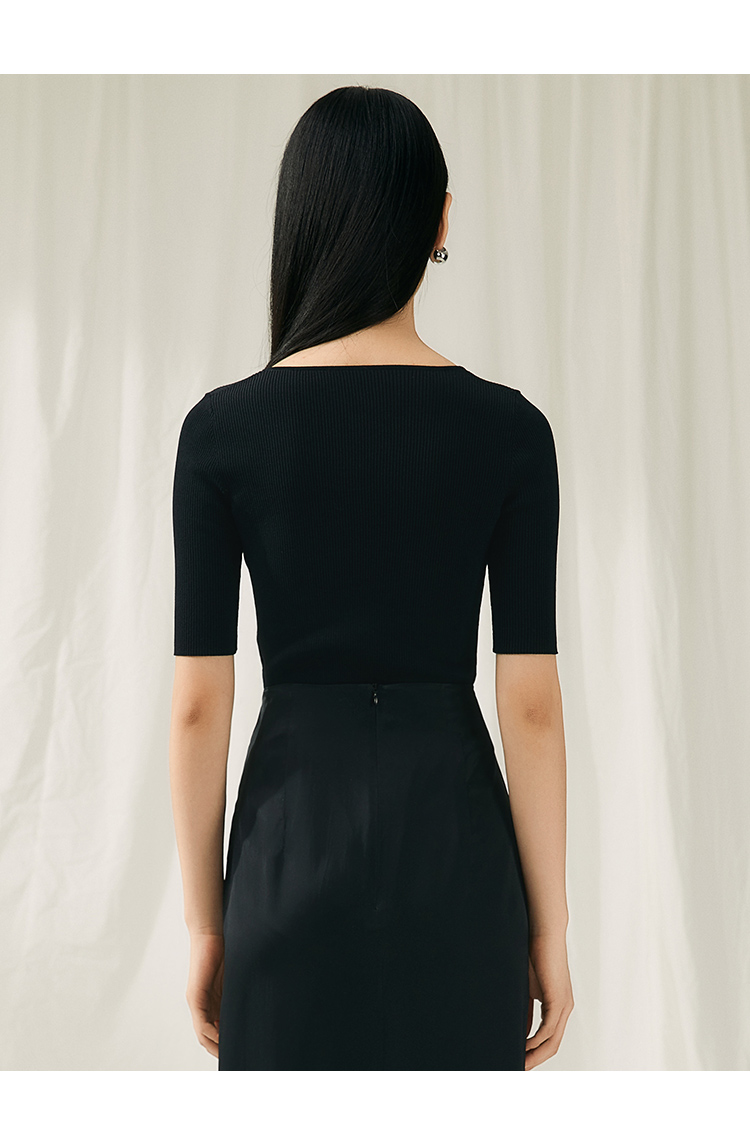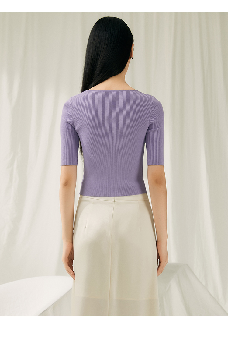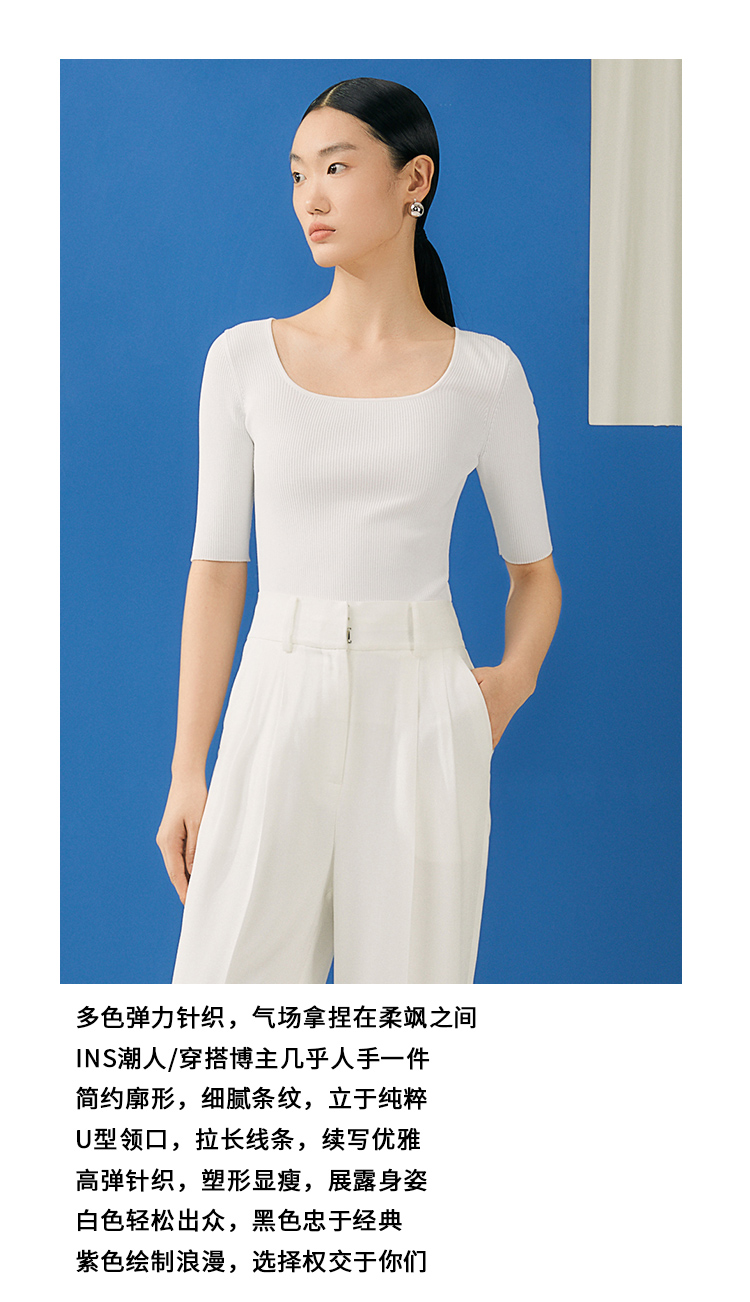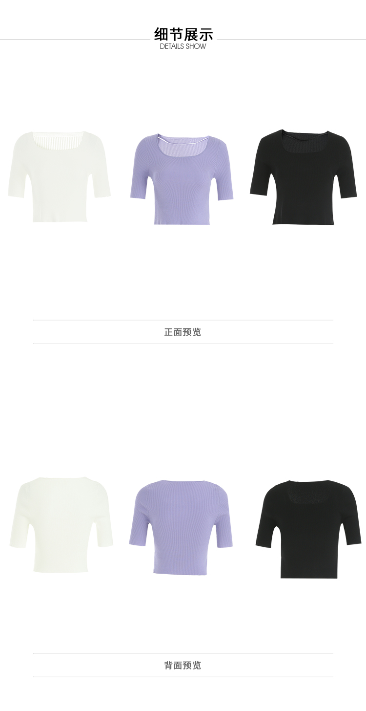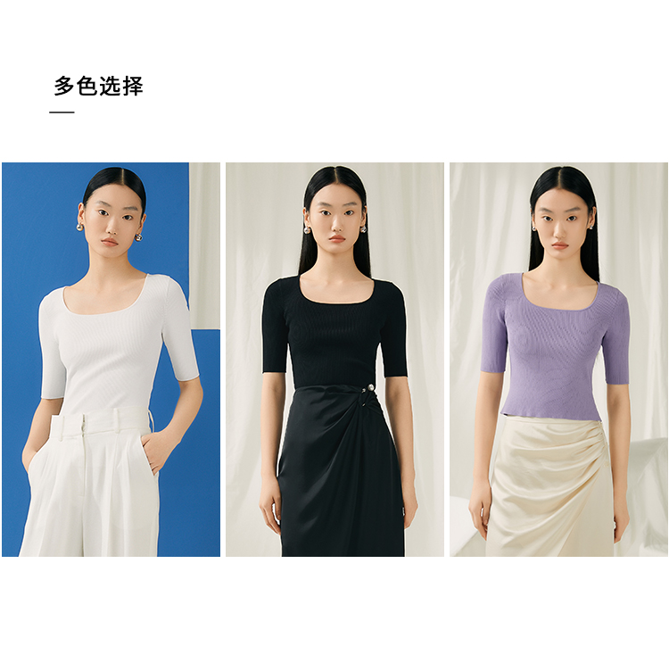 【转款下架】VIMAGE纬漫纪夏季新款u领修身显瘦短款上衣女针织衫V1901515