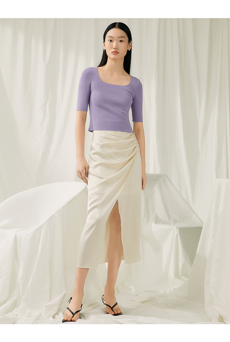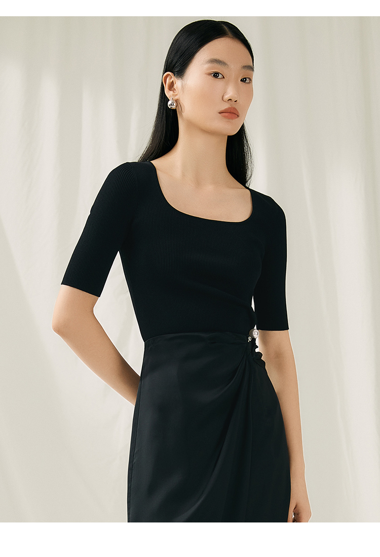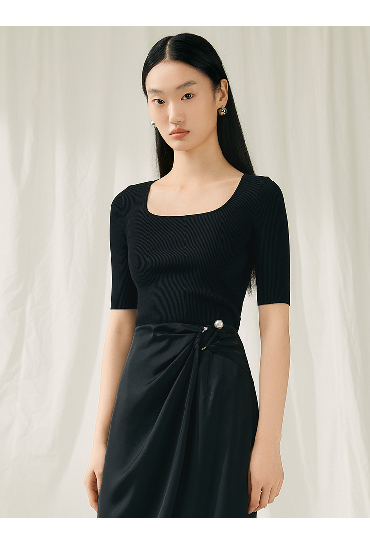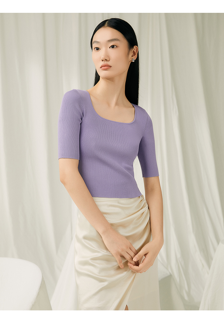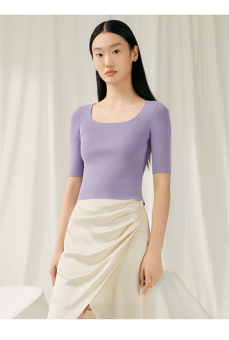 【转款下架】VIMAGE纬漫纪夏季新款u领修身显瘦短款上衣女针织衫V1901515