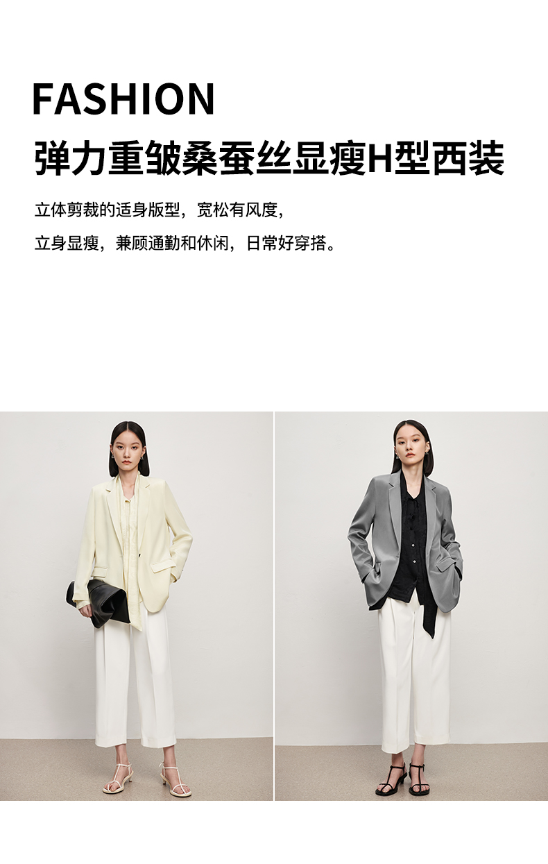 IN AND ON【6A级30MM弹力桑蚕丝】真丝西装外套女休闲高级感上衣