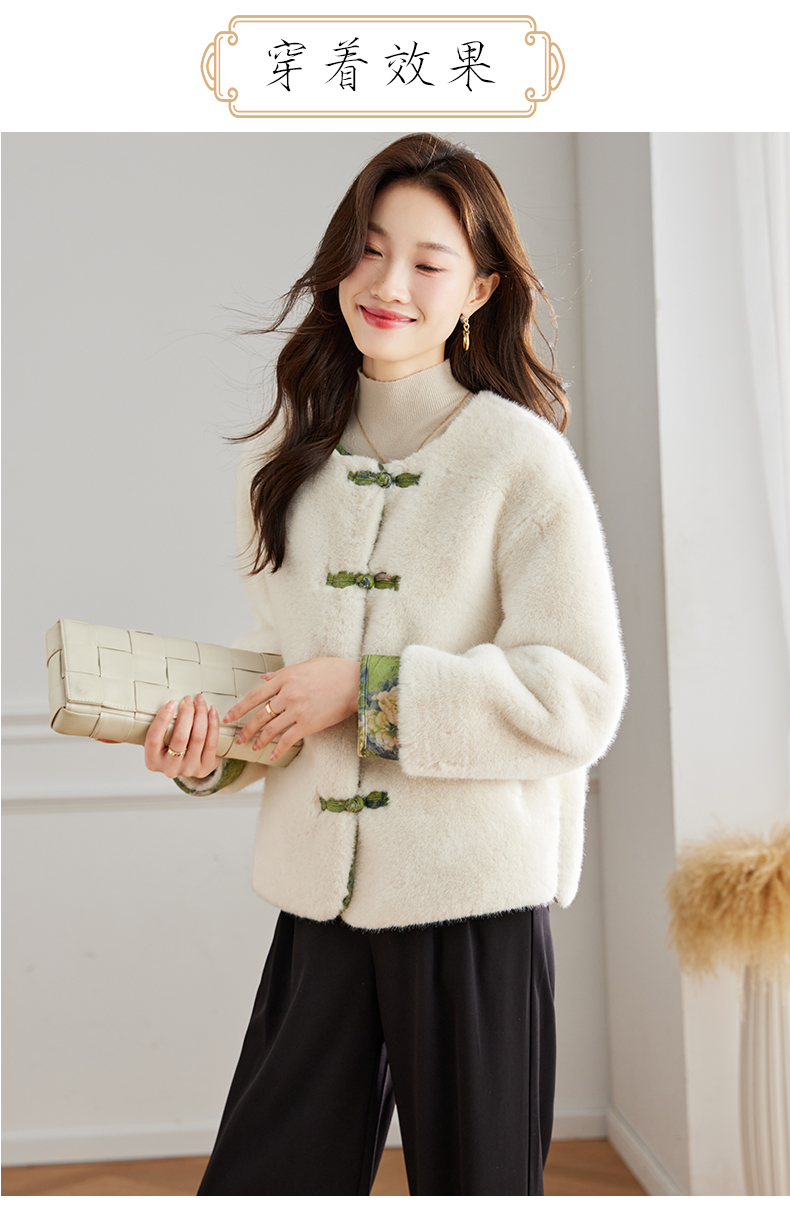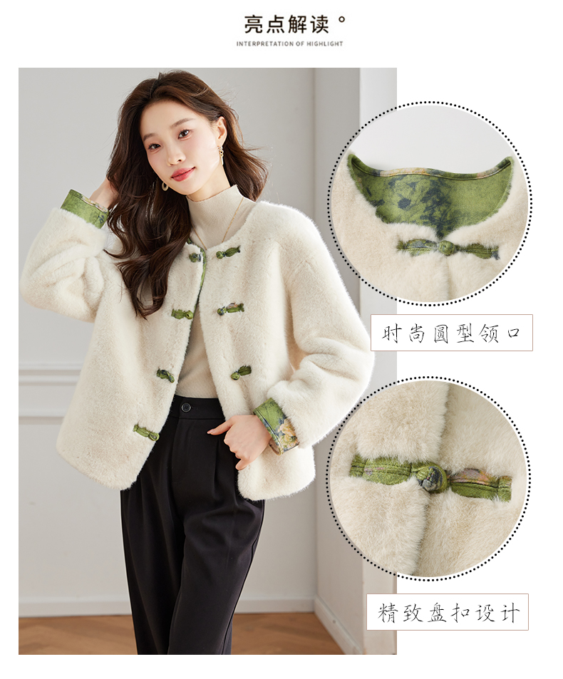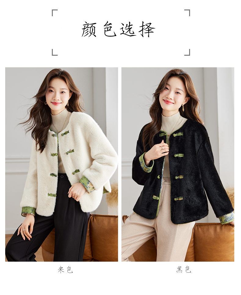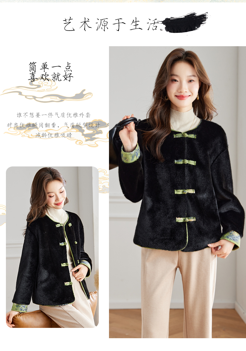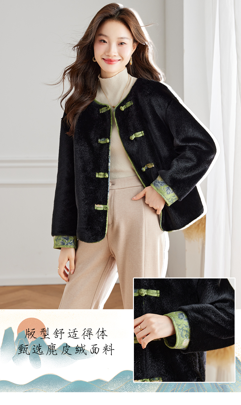 复古百搭,仿水貂皮毛一体外套新中式风盘扣仿水貂外套HR-WJ5218