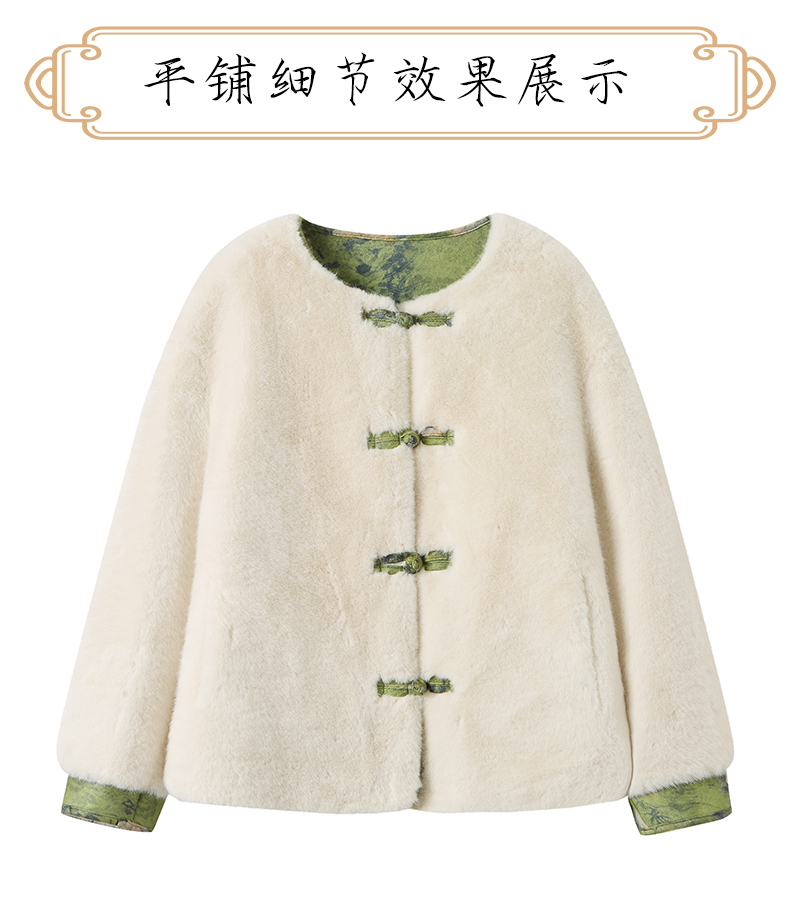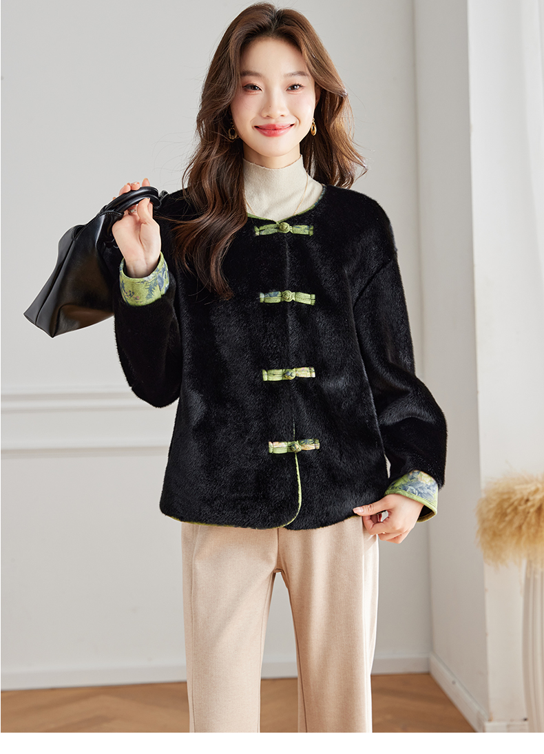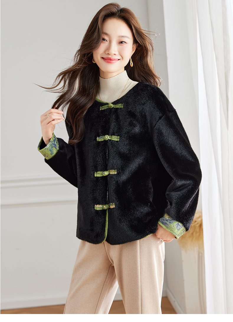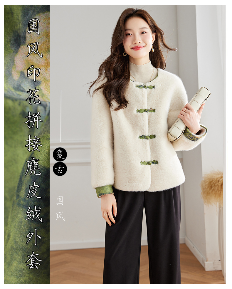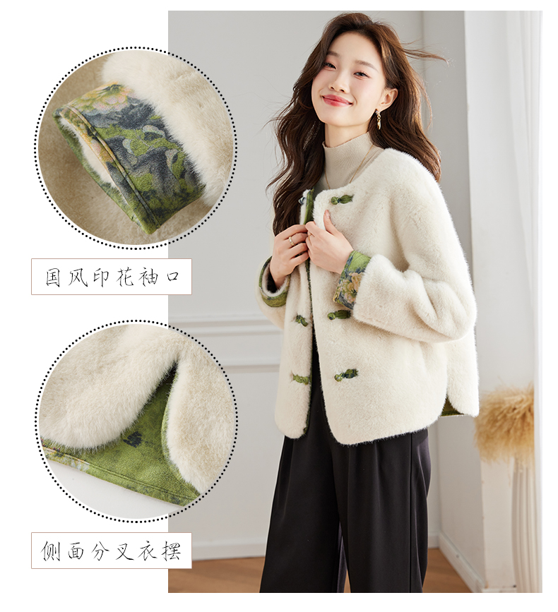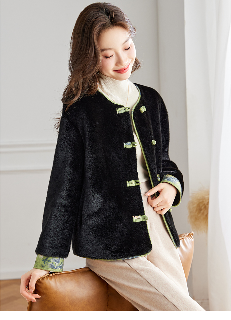复古百搭,仿水貂皮毛一体外套新中式风盘扣仿水貂外套HR-WJ5218