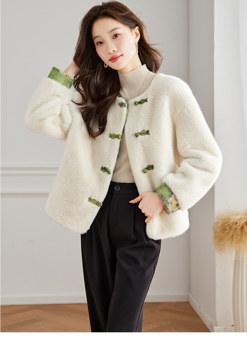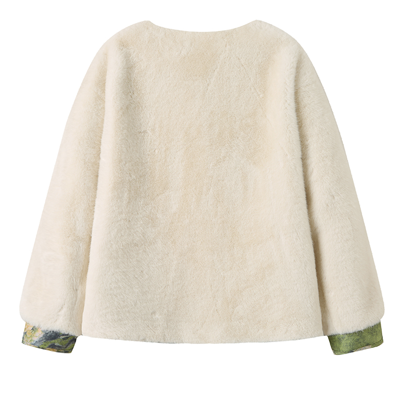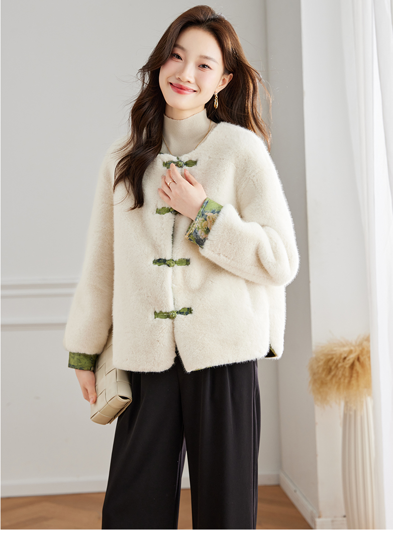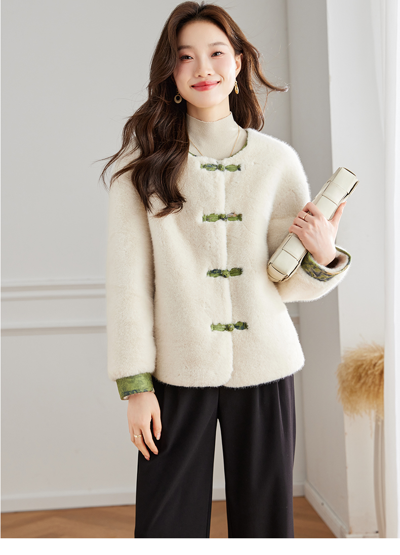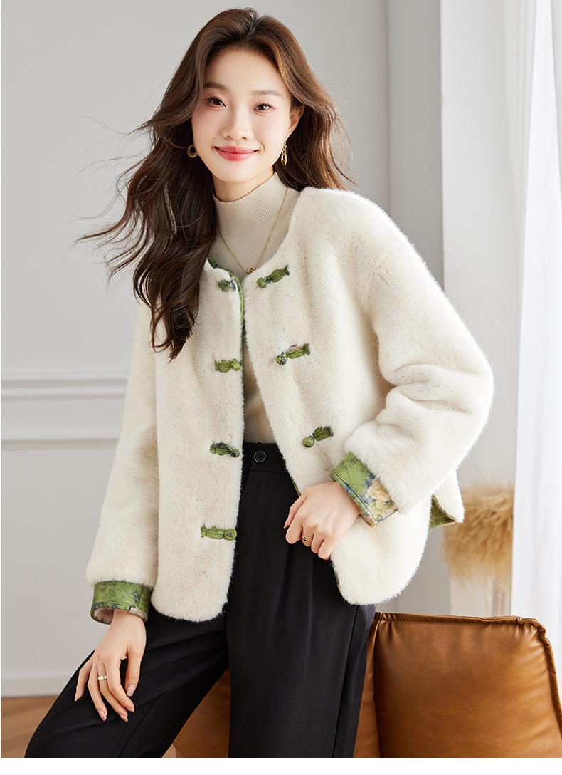 复古百搭,仿水貂皮毛一体外套新中式风盘扣仿水貂外套HR-WJ5218