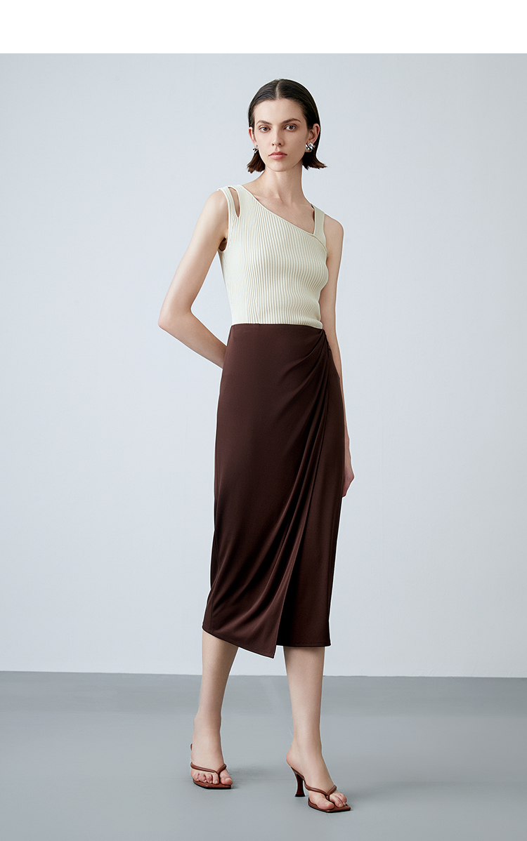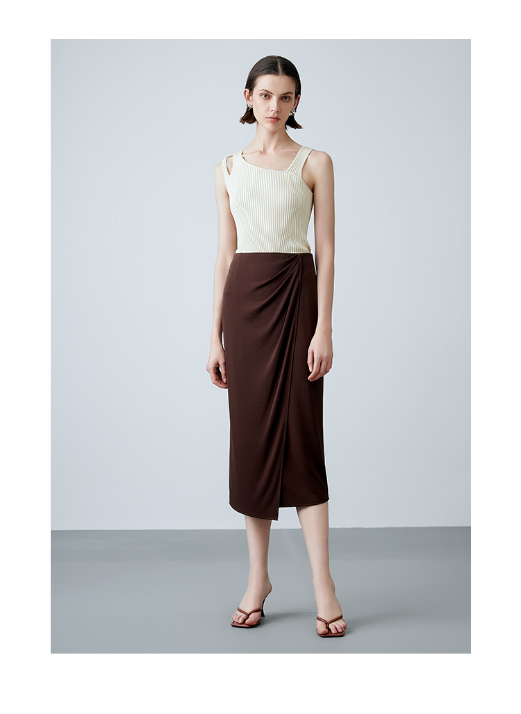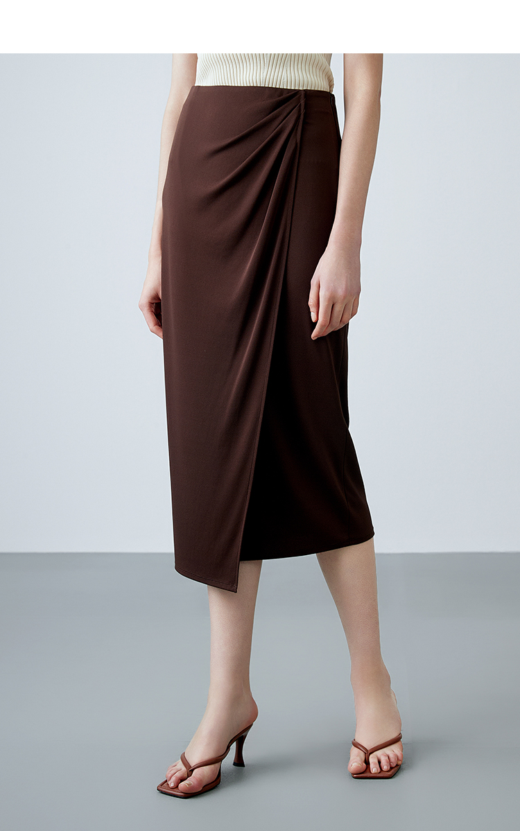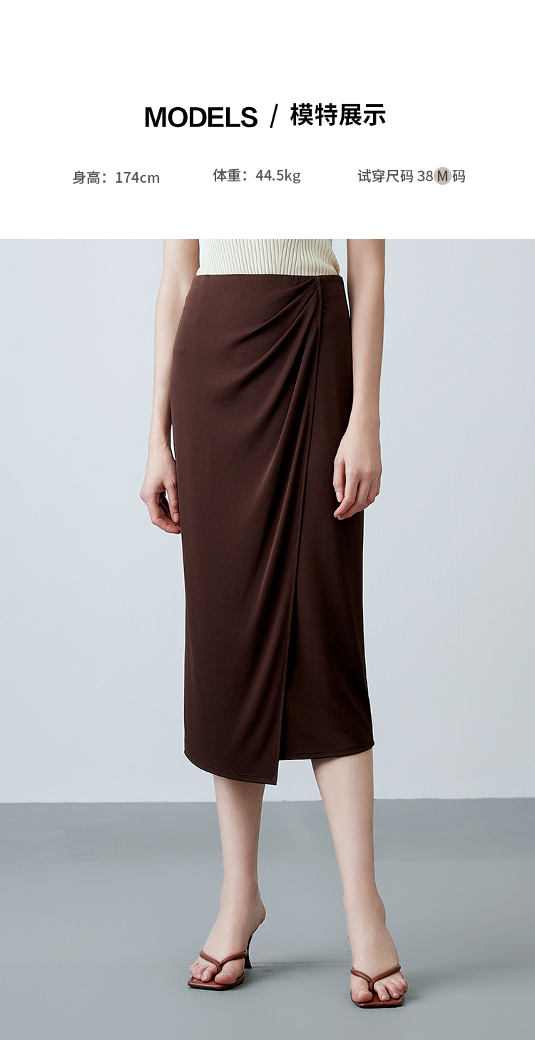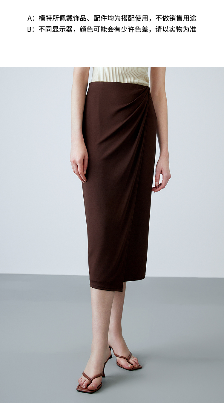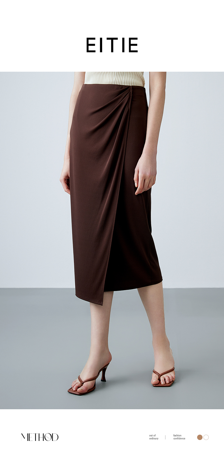 EITIE爱特爱夏季新款气质高级感提褶高腰显瘦半身裙7806513
