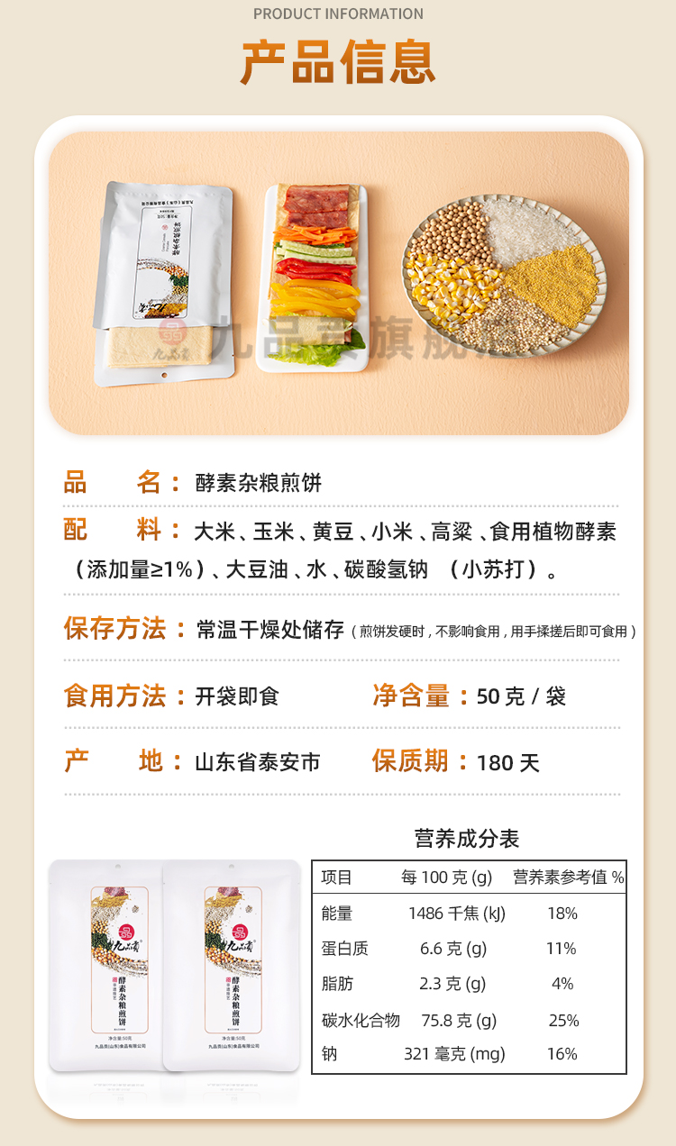 九品贡酵素杂粮煎饼早餐代餐速食山东特产零食
