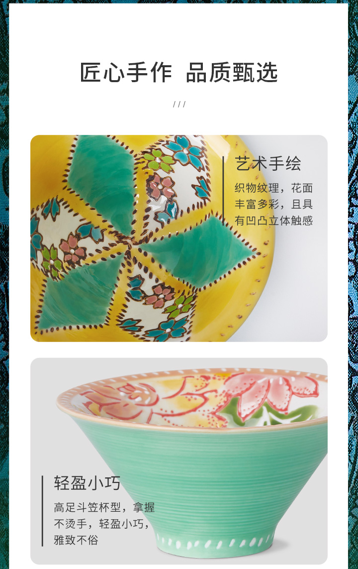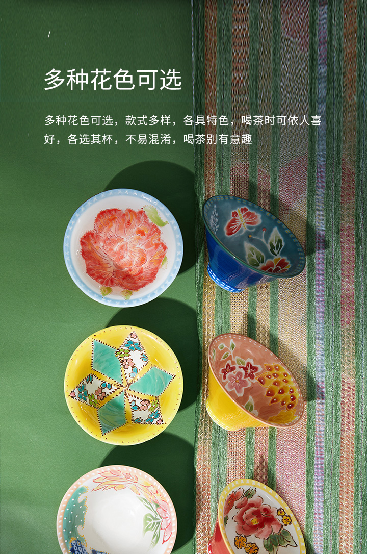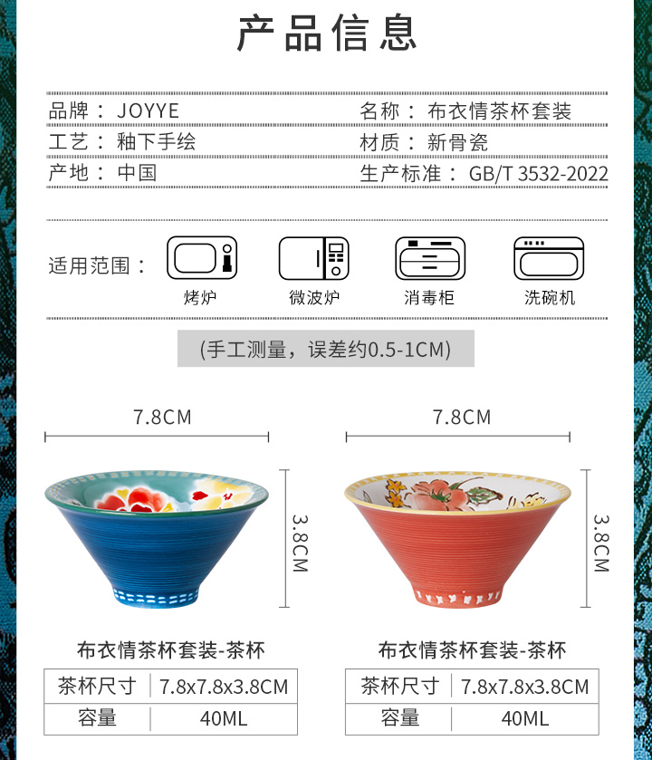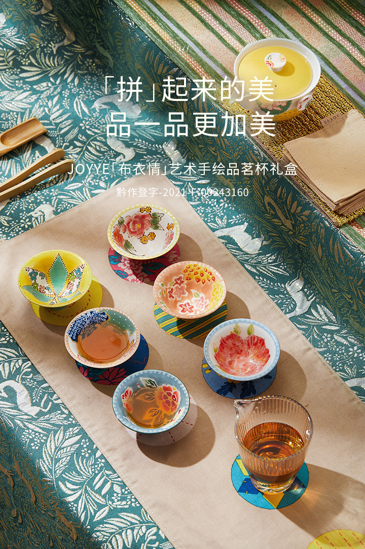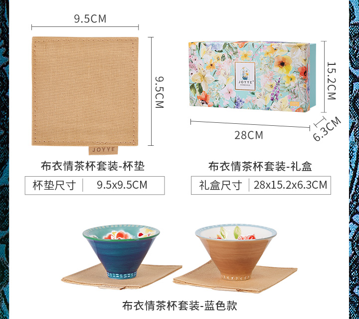 JOYYE布衣情-陶瓷功夫茶杯个人专用高档女士手绘主人杯套装配小茶杯垫布