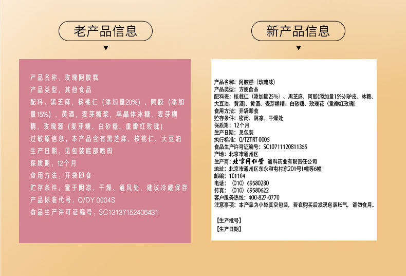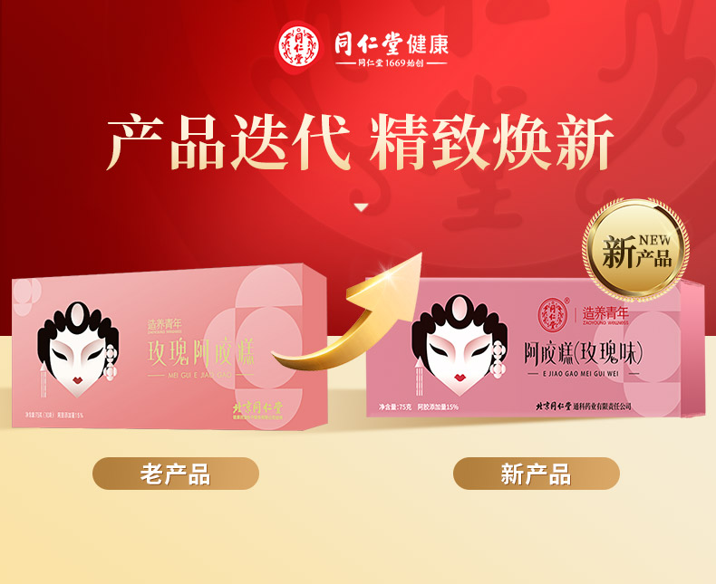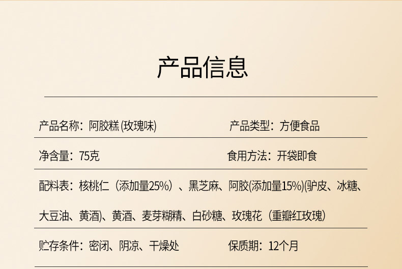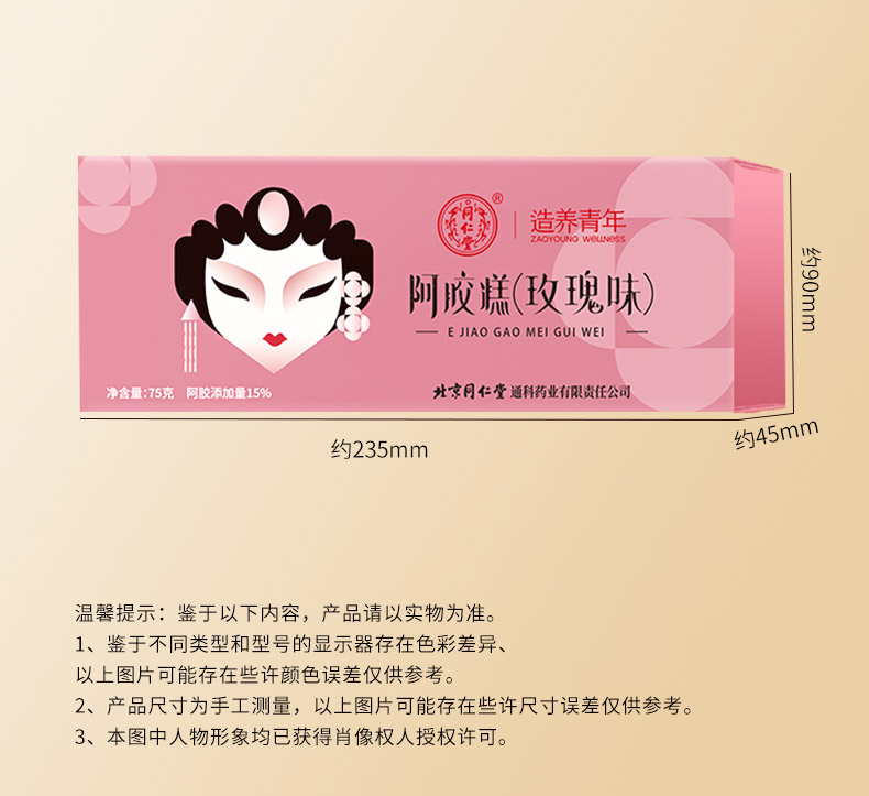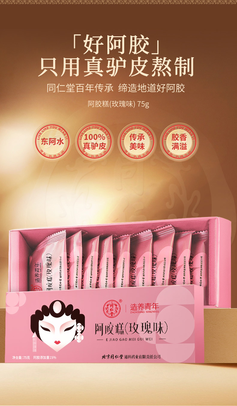 【正宗同仁堂品牌】北京同仁堂 玫瑰味阿胶糕75克 送礼盒 独立包装SY