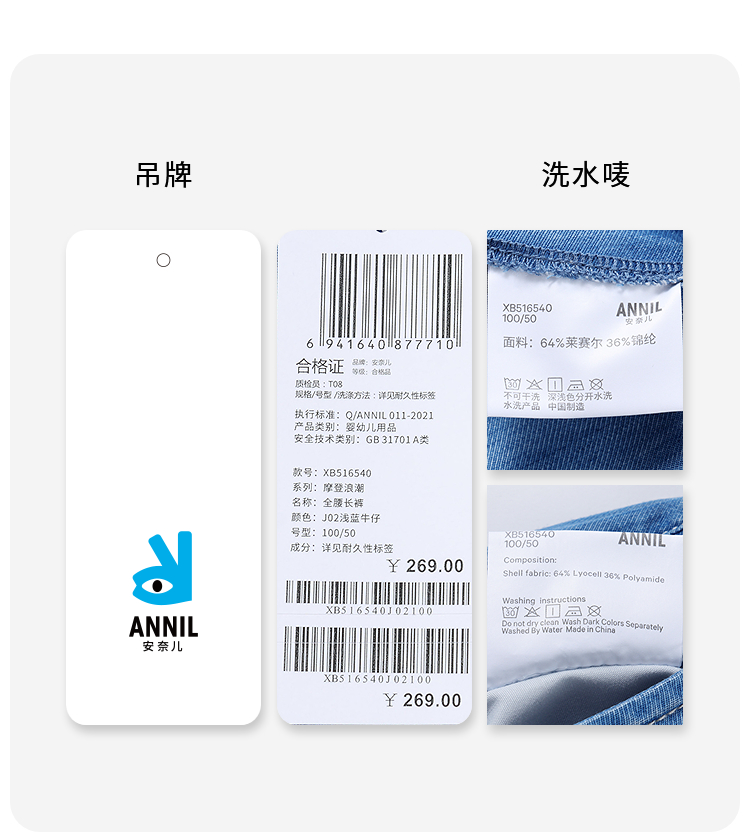 男童全腰长裤春季新款安奈儿童装实体店同款XB516540
