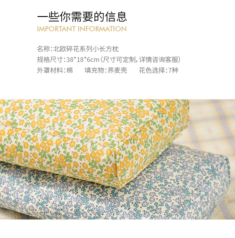 北欧碎花系列长方枕旅行便携小成人枕纯荞麦壳
