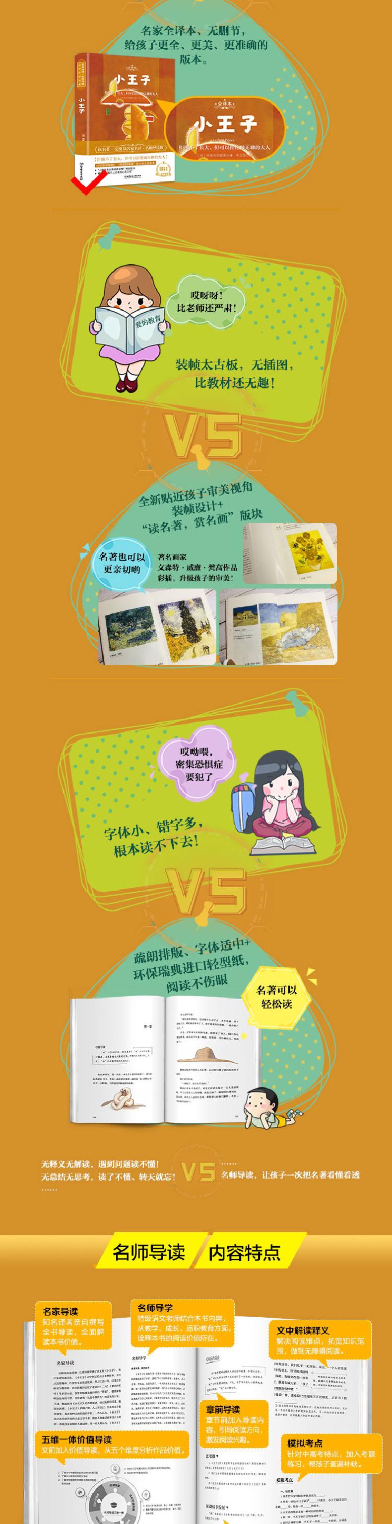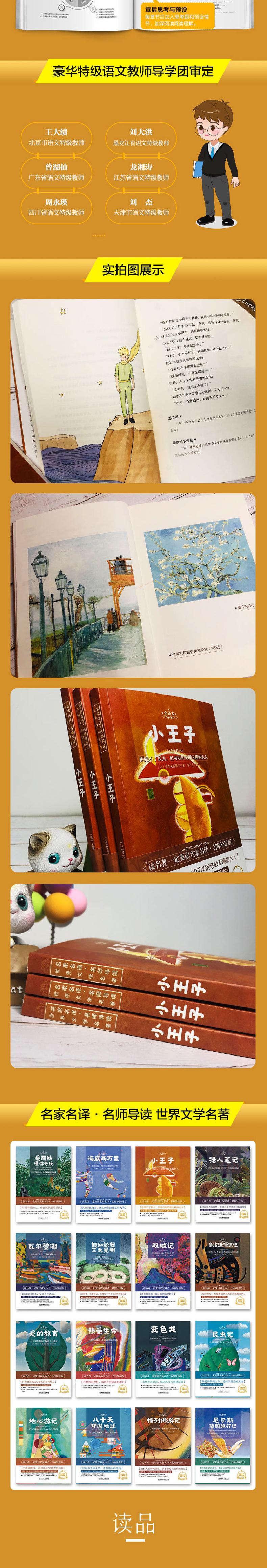4.名师导学、导读内容帮助读者更加深入地读懂名著:邀请一线语文教学者组成的专家团队,根据教学要求及实际学习需求,归纳阅读要点、难点、知识点,以及作者的写作价值所在。内容板块如“章前导读”+“章后总结”+“提升思考”+“精彩解读”+“阅读感受”+“考点设计”等板块设计,让孩子真正做到精读,从而更好地把握作品的精髓。