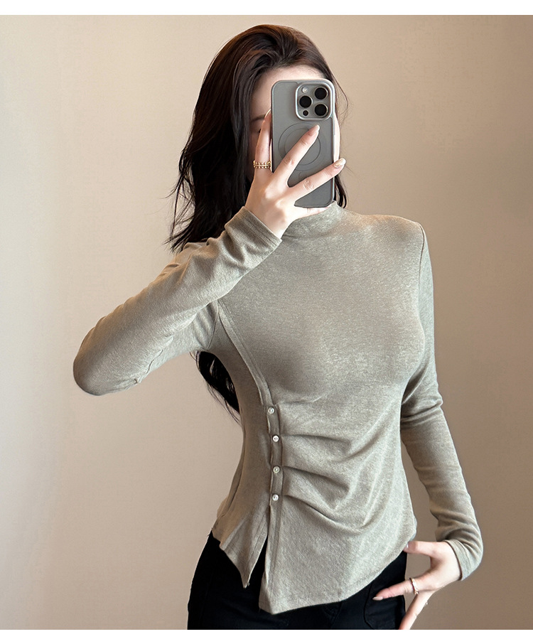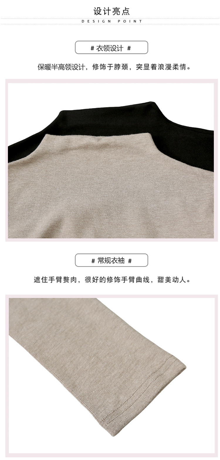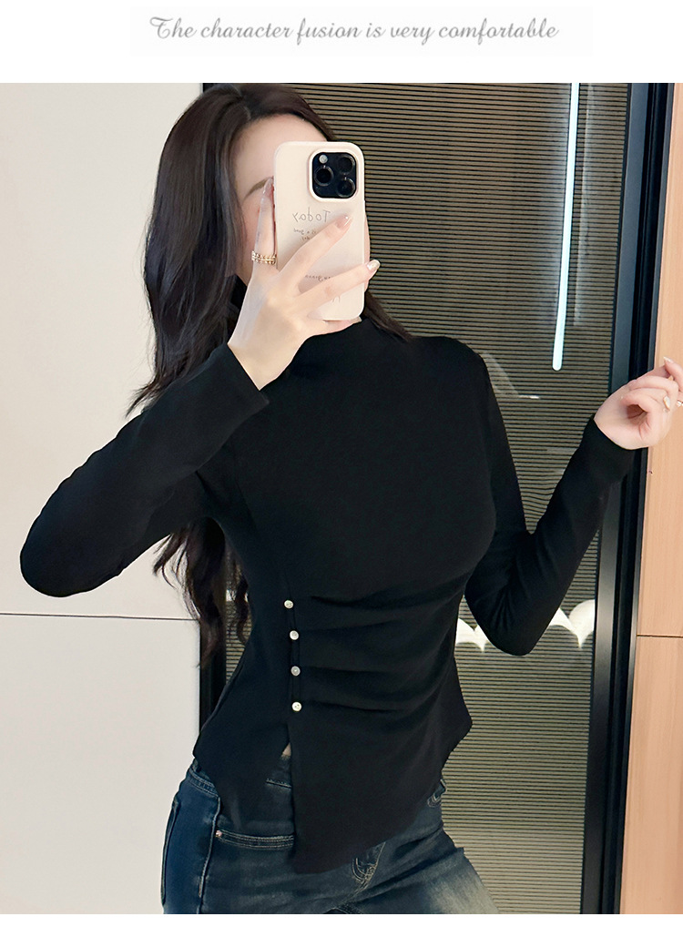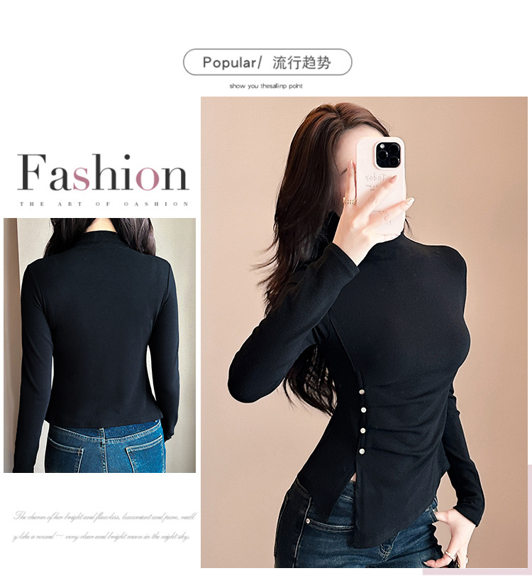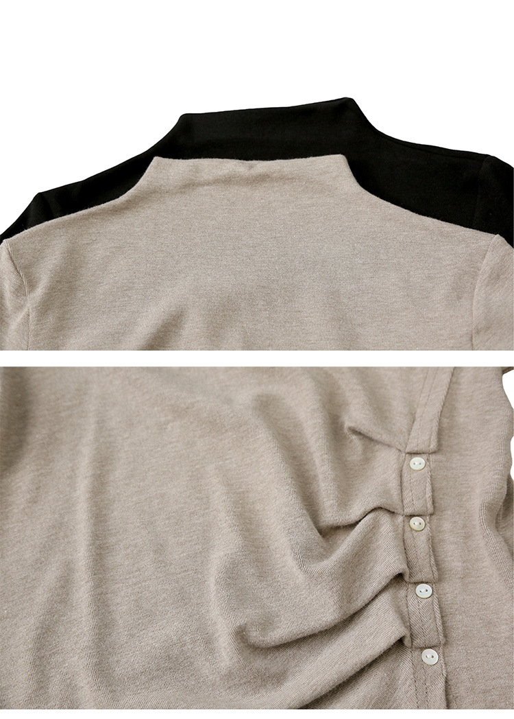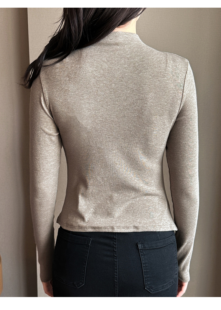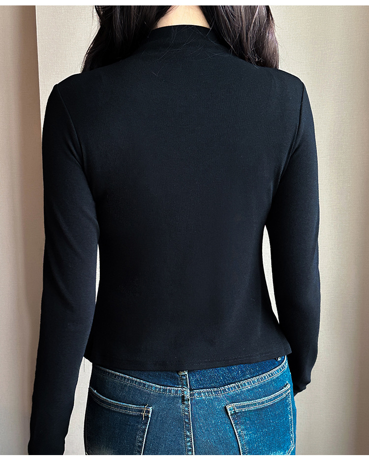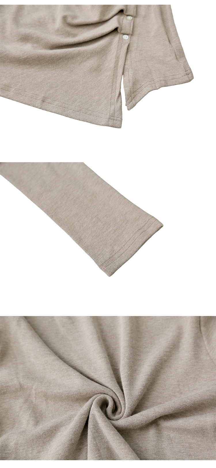 KQL 311H9182磨毛加厚半高领不规则纯色上衣开叉T恤纯色