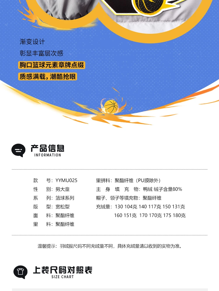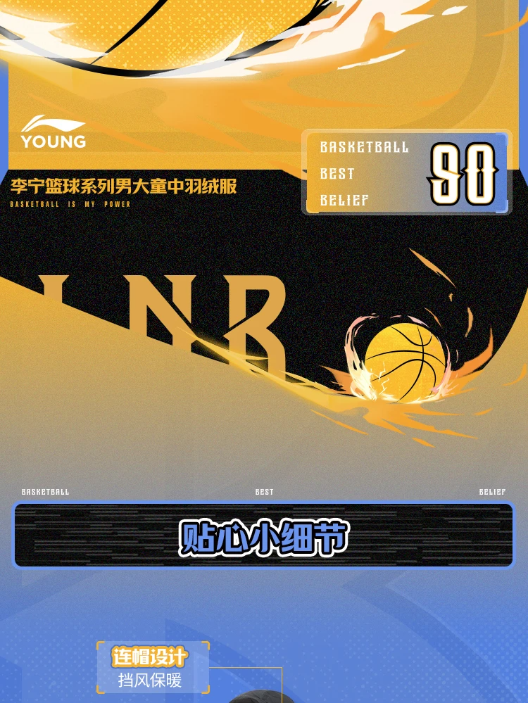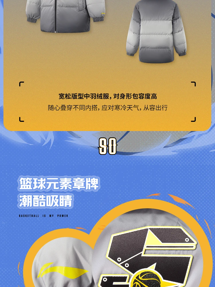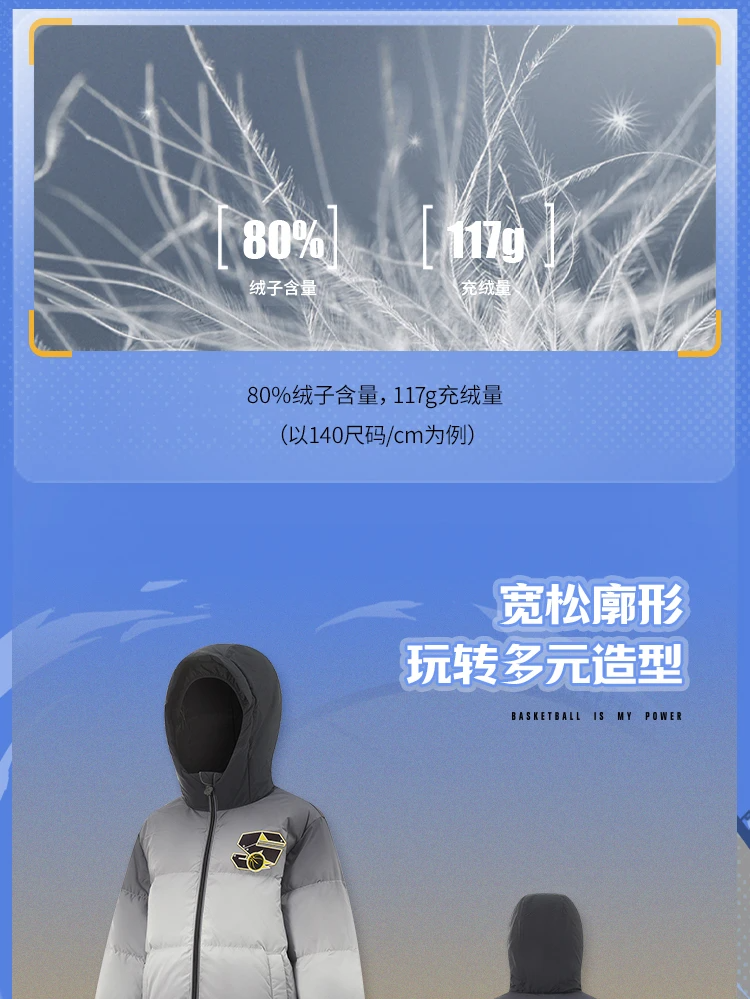 【140断码】李宁男大童篮球生活系列宽松80%鸭绒中羽绒服YYMU025【库存有限,如无货将做退款,介意慎拍!】