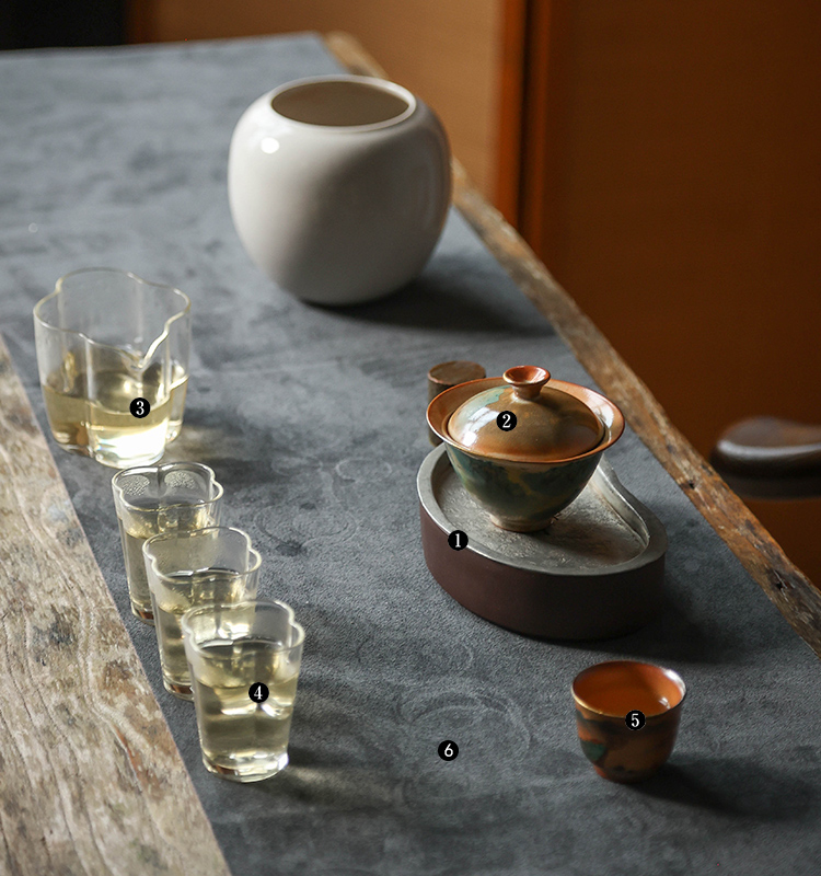茶香记 紫砂紫泥干泡台腰形锡盖壶承古朴雅致多用茶盘茶道零配