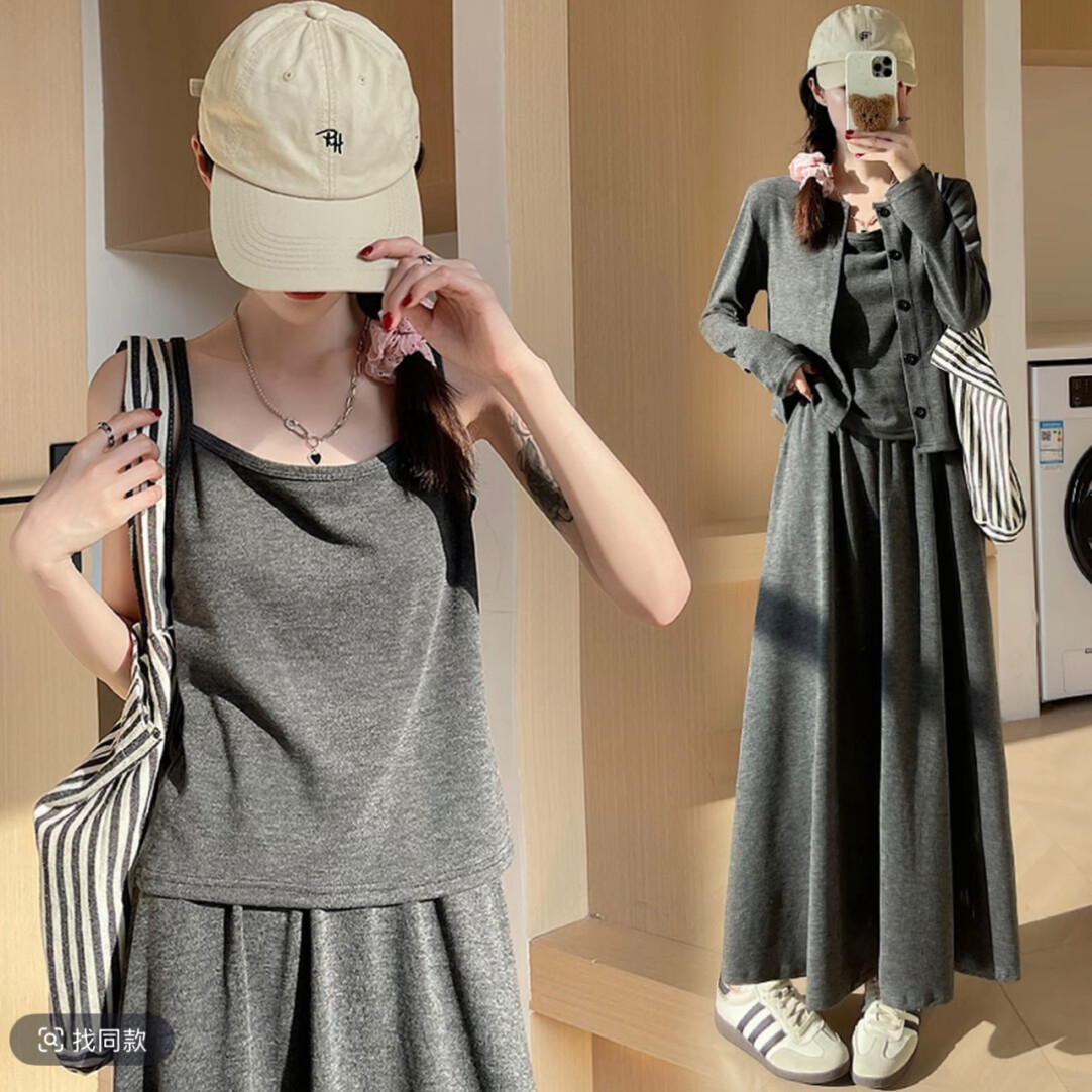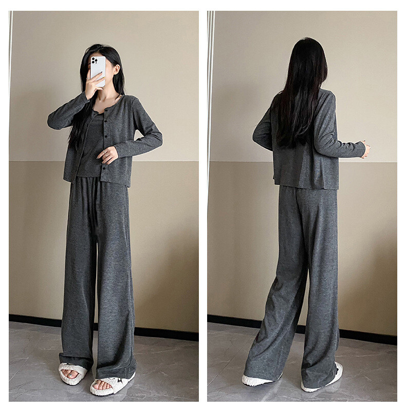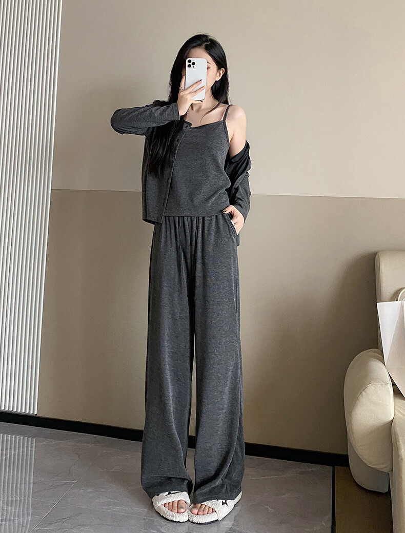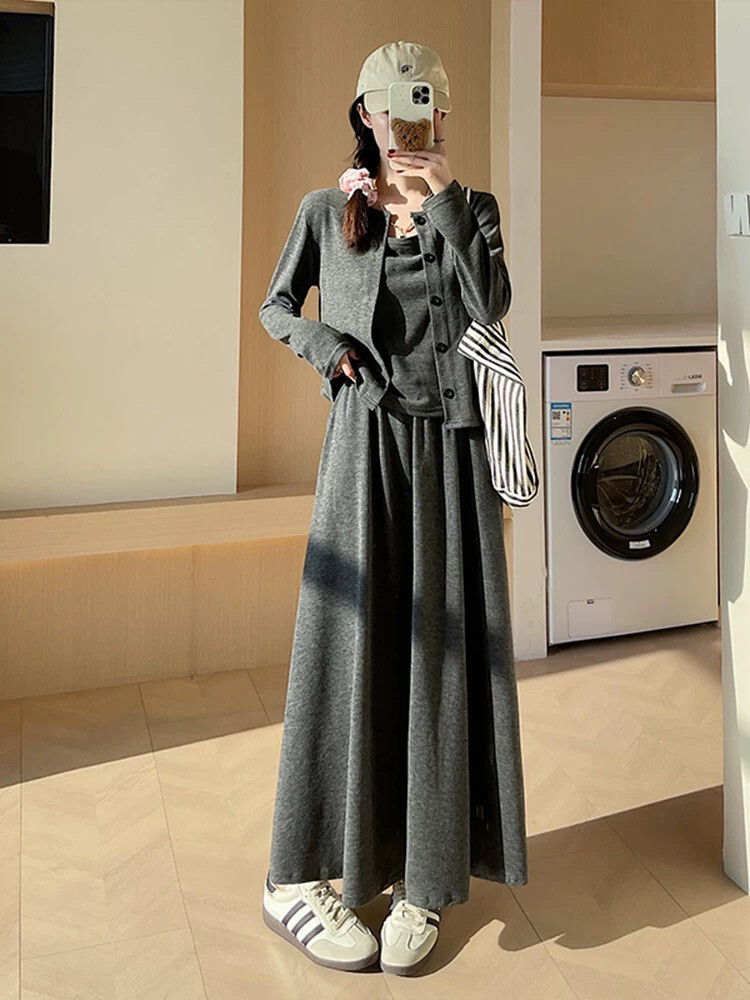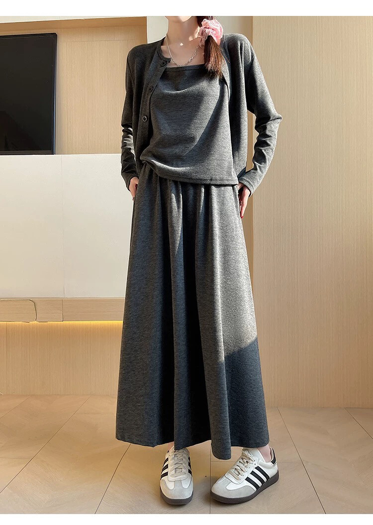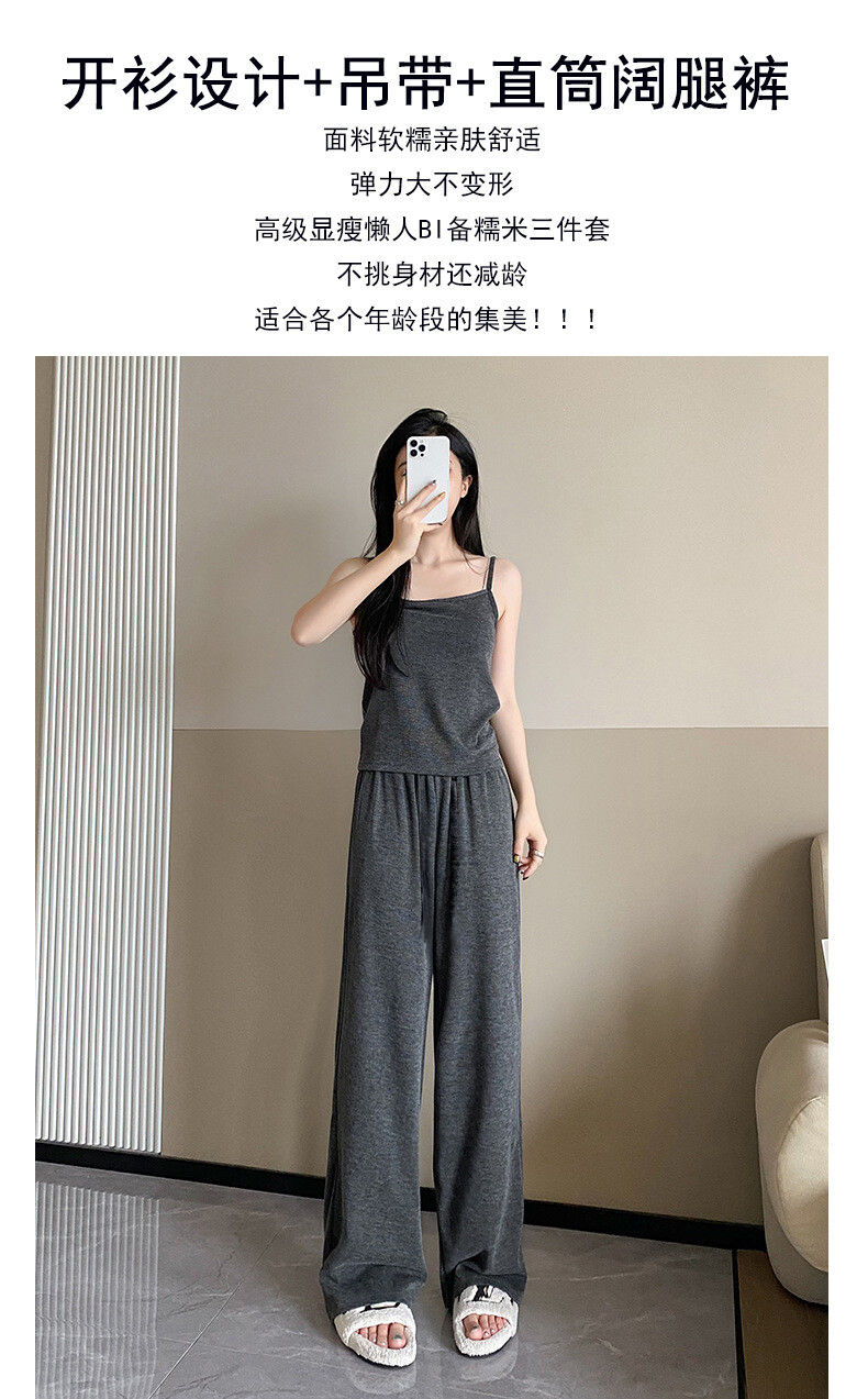 穿搭升级 加倍减龄!【梦惠妮 糯米裙/裤自选三件套】温柔开衫小吊带气质半裙/高腰阔腿裤 高级感韩系套装 懒人穿搭告别烦恼 #M663