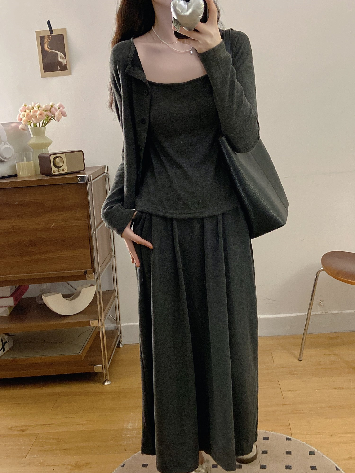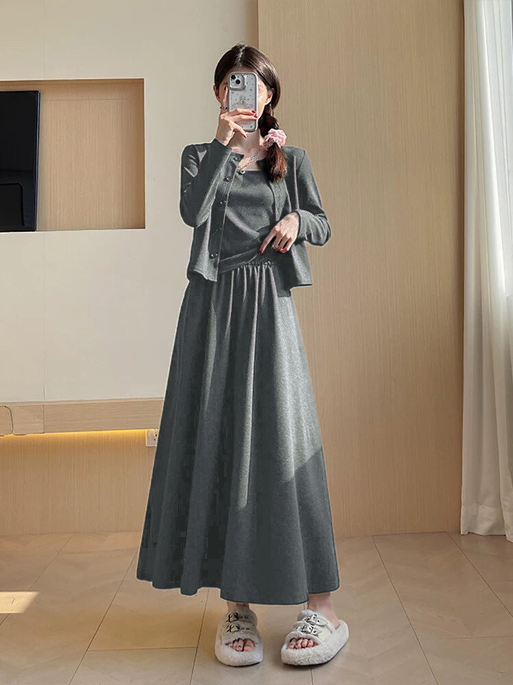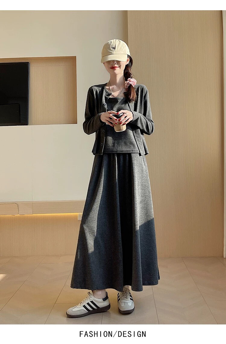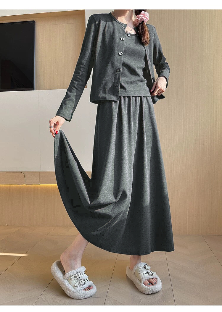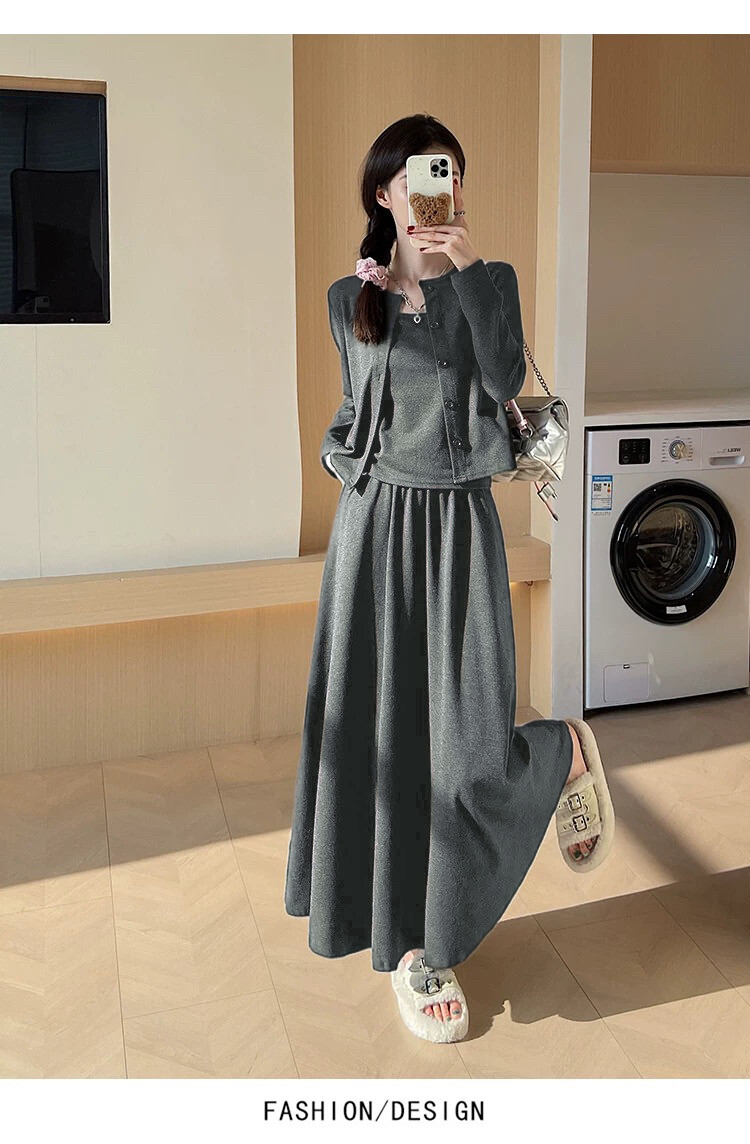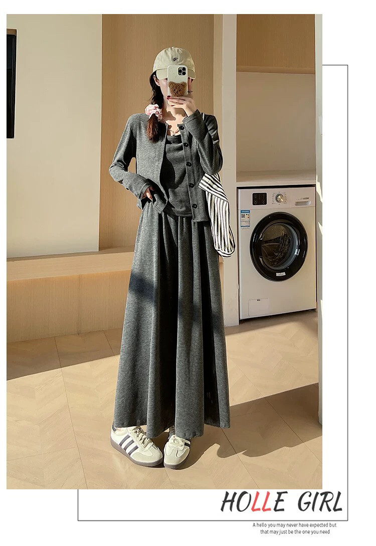 穿搭升级 加倍减龄!【梦惠妮 糯米裙/裤自选三件套】温柔开衫小吊带气质半裙/高腰阔腿裤 高级感韩系套装 懒人穿搭告别烦恼 #M663