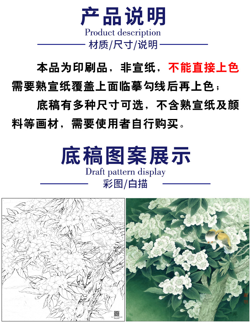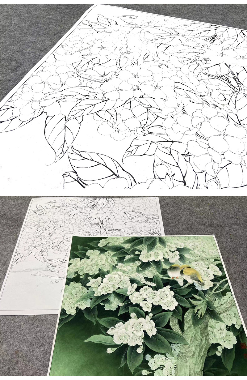 【大彩图】李晓明工笔画白描底稿《五月梨花赛春雪》梨花临摹勾线花鸟线稿K110